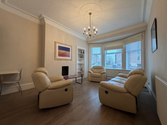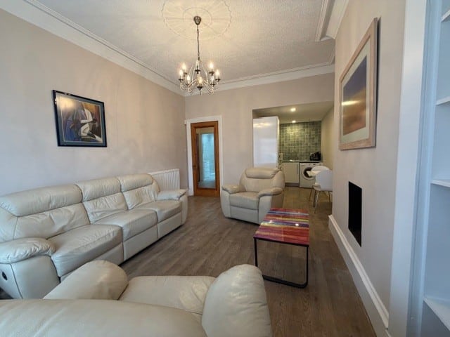 Available NOW! This is a recently refurbished, well presented part furnished two bedroom ground floor flat within a substantial red sandstone tenement building on a prime address on the outskirts of the City Centre.