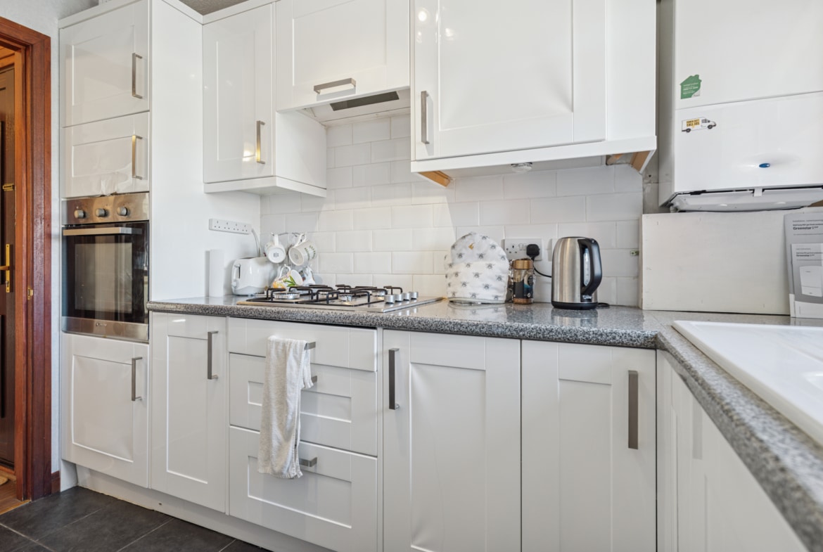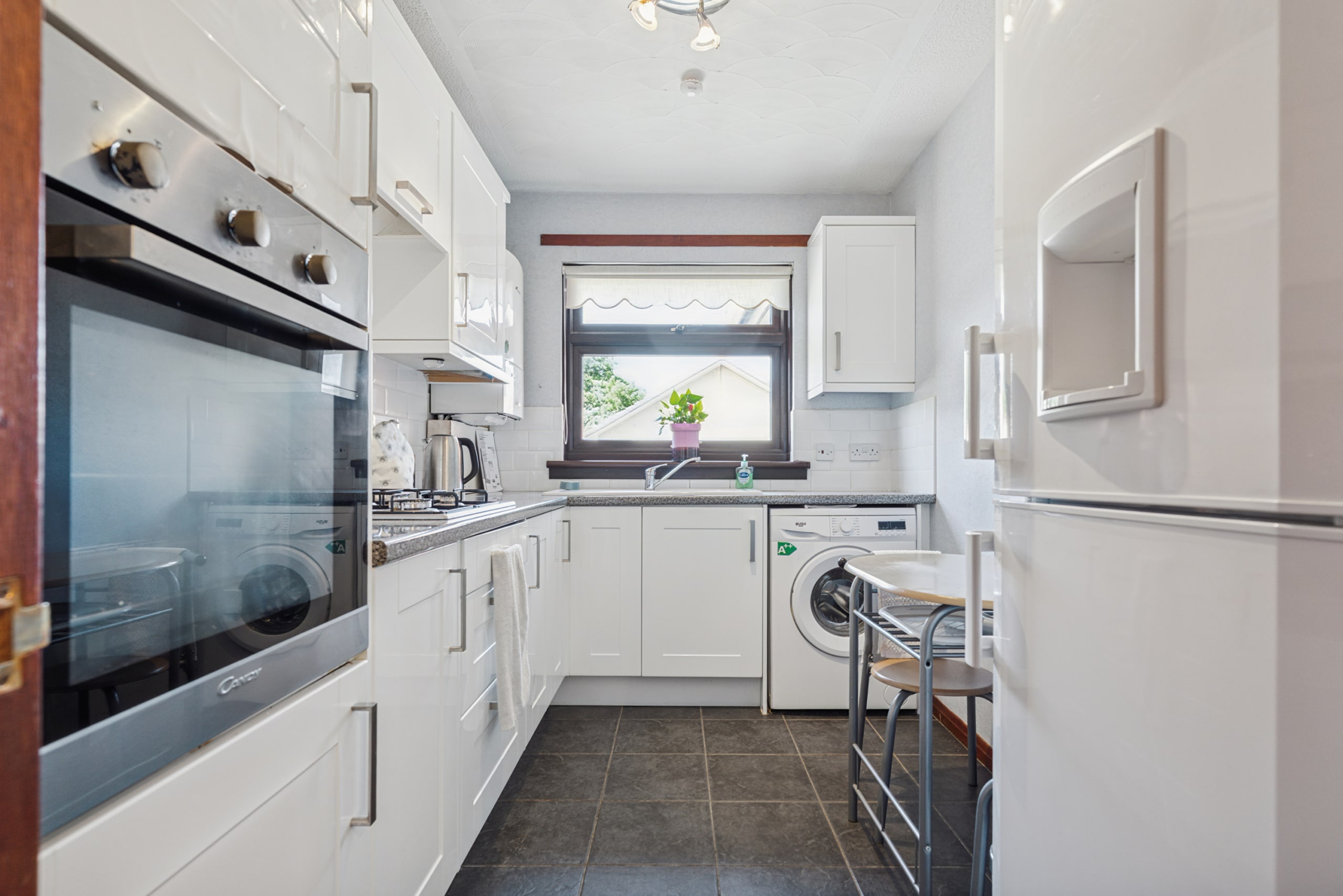 Set behind a neat front garden and driveway the main door is tucked to the side of the property, it opens into a welcoming hallway which provides access to all accommodation. On your left is the kitchen fitted with a range of white base and wall mounted units, a sweep of work tops framed by stylish white metro tiled splashback, integrated electric oven, gas hob, freestanding fridge/freezer, and washing machine.
