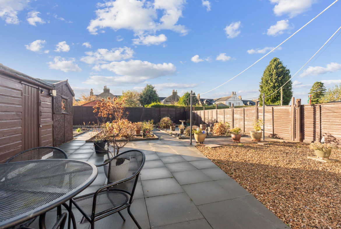 In addition to the neat front garden and driveway for several cars the rear enclosed garden enjoys a favourably South facing aspect, it has been landscaped with low maintenance in mind with paved patio areas, raised plant beds, complemented by chips. There is a timber garage and garden shed.
