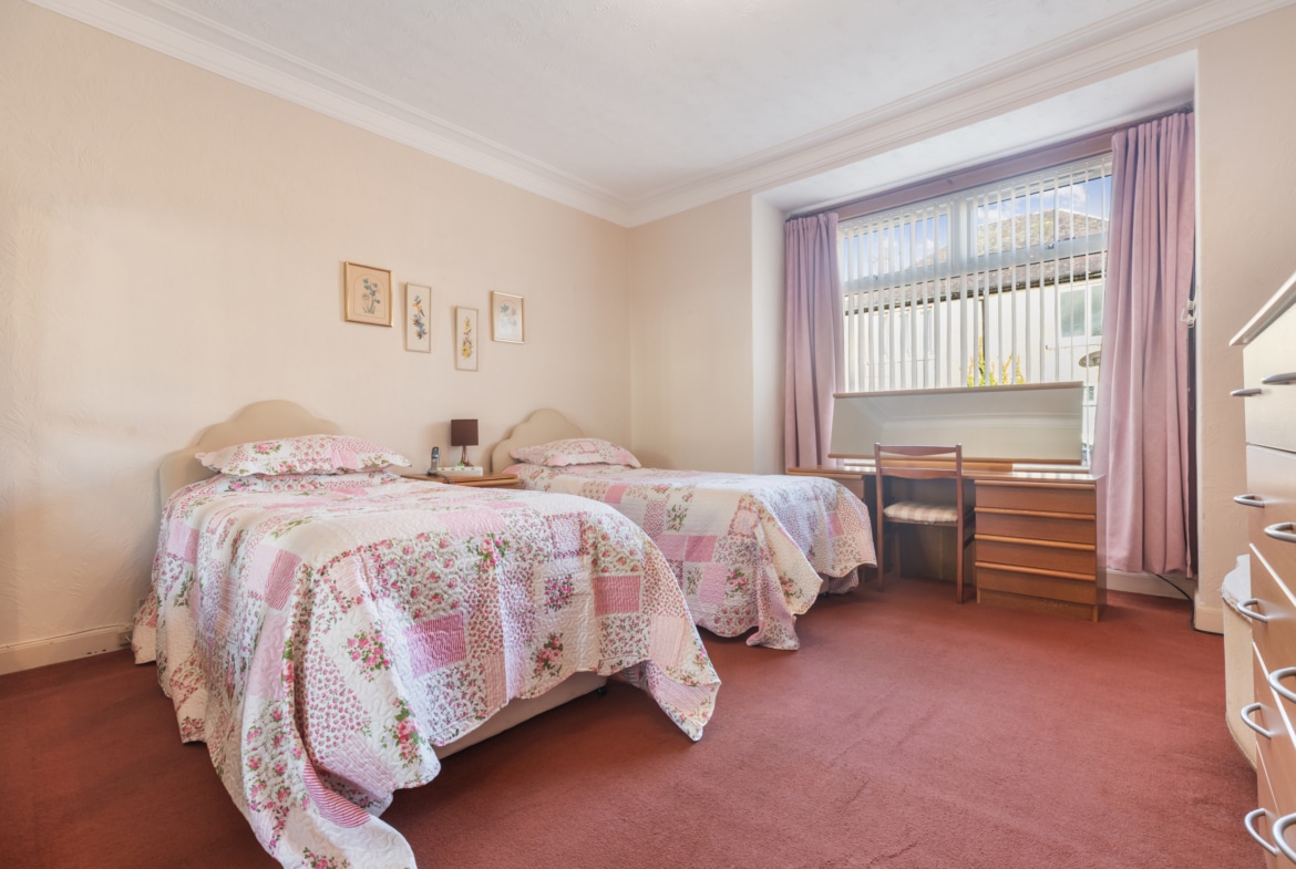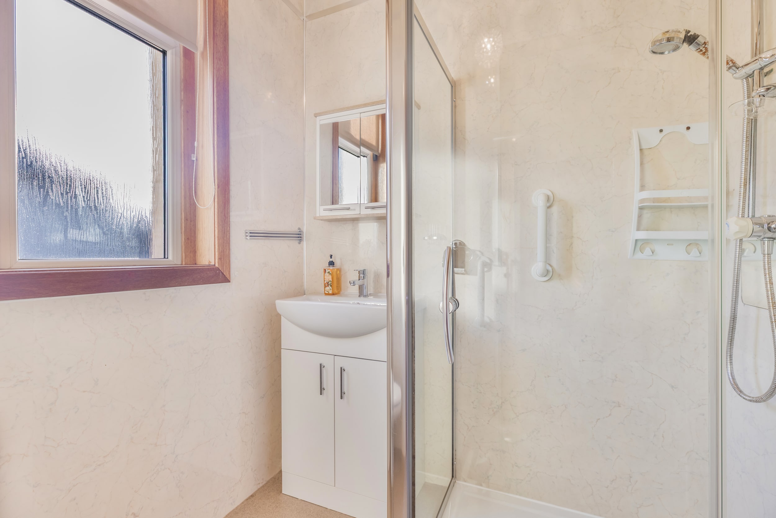Set behind a neat front garden and private driveway the main entrance is tucked to the side of the property, it opens into a welcoming hallway which provides access to all accommodation. On your left is the shower room featuring a shower cubicle with thermostatic shower, toilet, and sink set within a vanity unit. Positioned to the front of the property are two generously proportioned double bedrooms, the principal bedroom is a sizeable room with space for a double bed, bedside and freestanding wardrobes. Bedroom two is another double bedroom, this room benefits from wardrobes. The generously proportioned living room provides options for various furniture configurations which can be arranged around the fireplace.