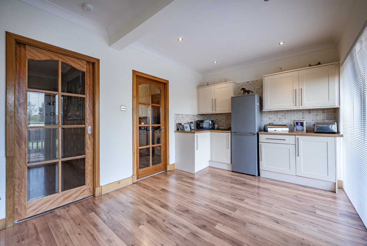 The accommodation comprises of an entrance vestibule leading through to the hallway. The lounge is an appealing room at the front of the house with a bay window and feature fireplace adding to the rooms appeal. Alternatively this room could be utilised as a further bedroom given the additional living space available. Double doors at the back of the lounge continue through to a generously proportioned dining room. The bright and airy dining kitchen is at the back of the house and has French doors out to the gardens. The kitchen is fitted with a good range of modern base and wall mounted units and is flooded with natural light by way of a set of double patio doors and a single door all leading into the gardens.