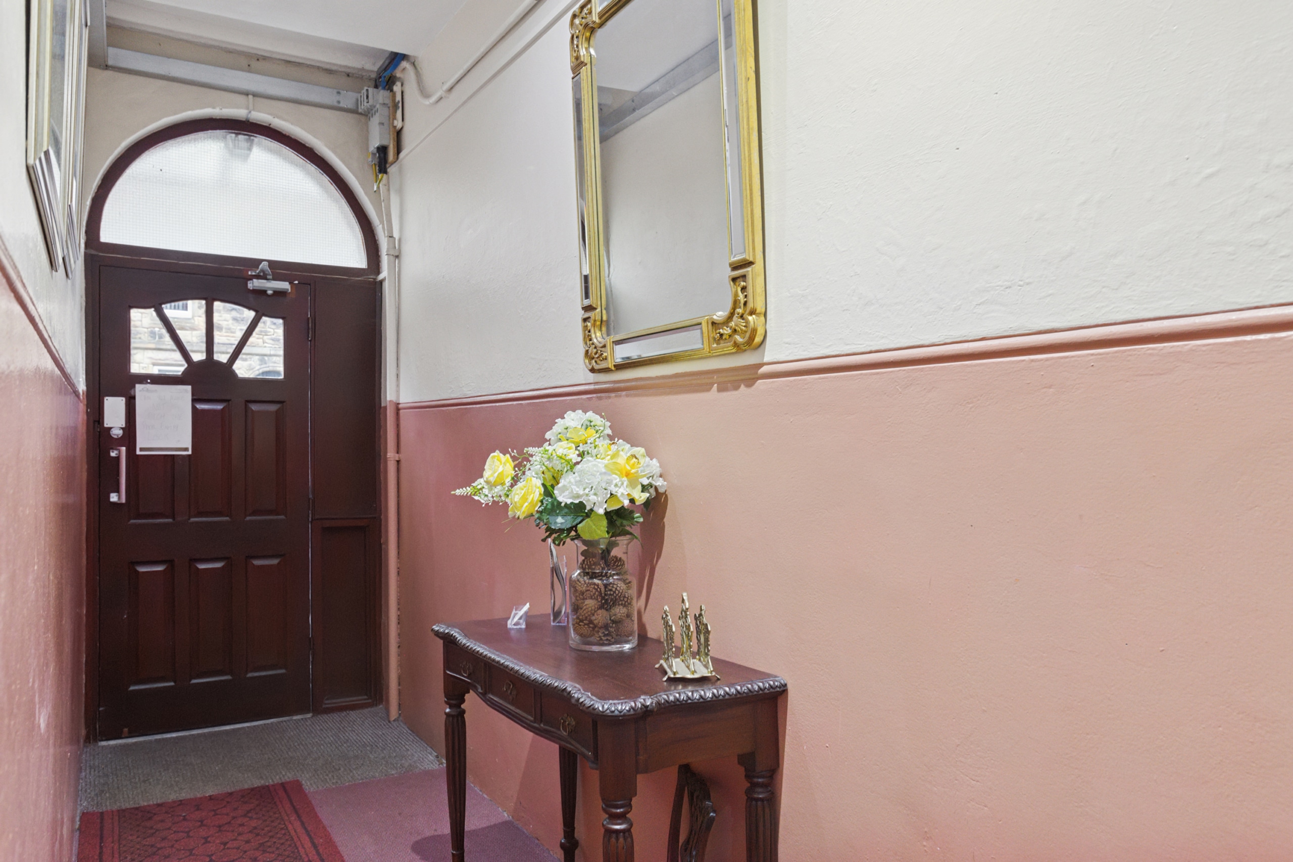 Entrance to the building is through a main front door with secure entry system, opening into the communal stairwell, each flat has their own front door and is a self-contained apartment.