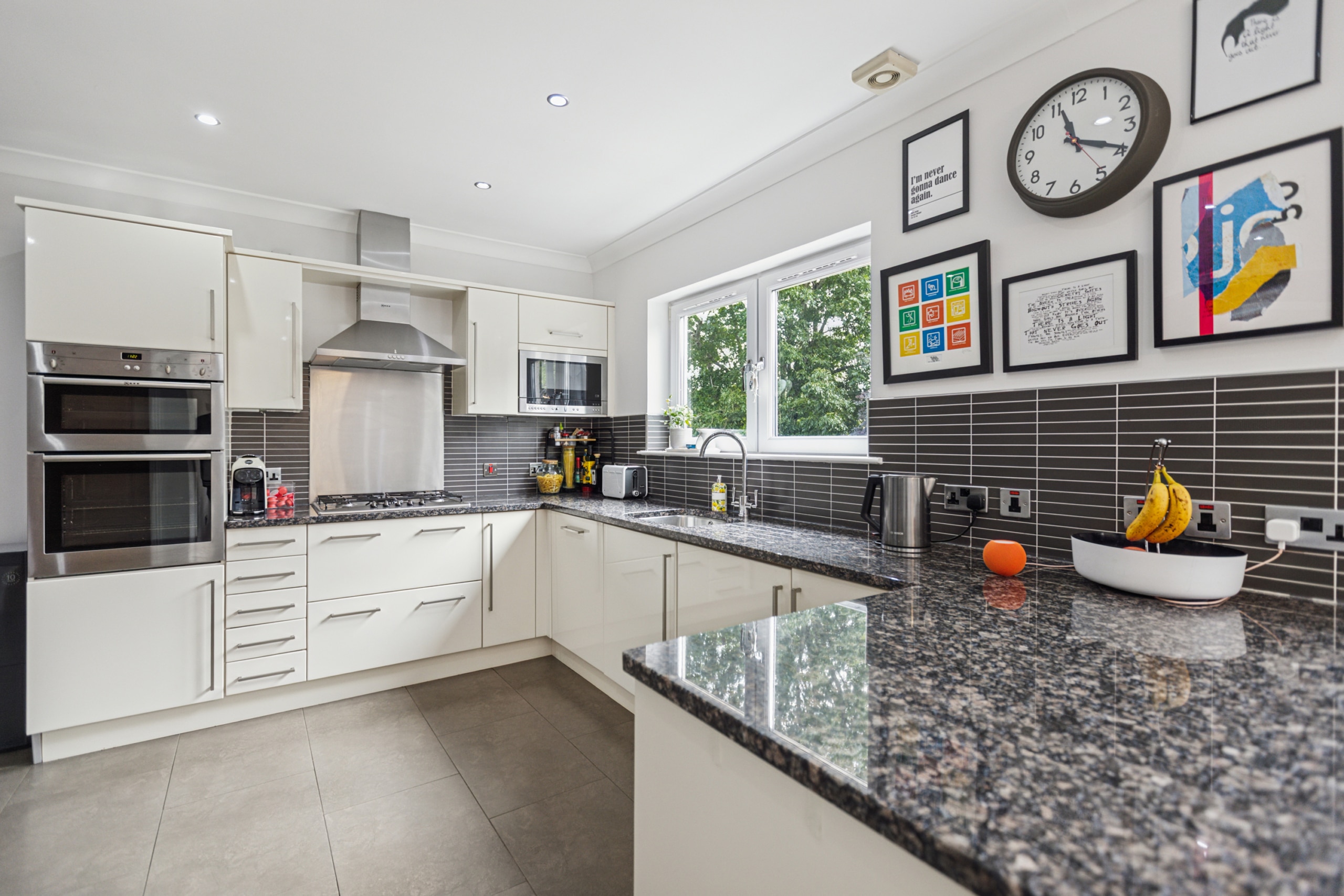 Upstairs, a bright galleried landing with two storage cupboards and attic access leads to four exceptionally spacious double bedrooms, all with fitted wardrobes. The principal bedroom benefits from a luxurious en-suite shower room, while the family bathroom is equally well-appointed, featuring a three-piece suite and a separate shower enclosure.