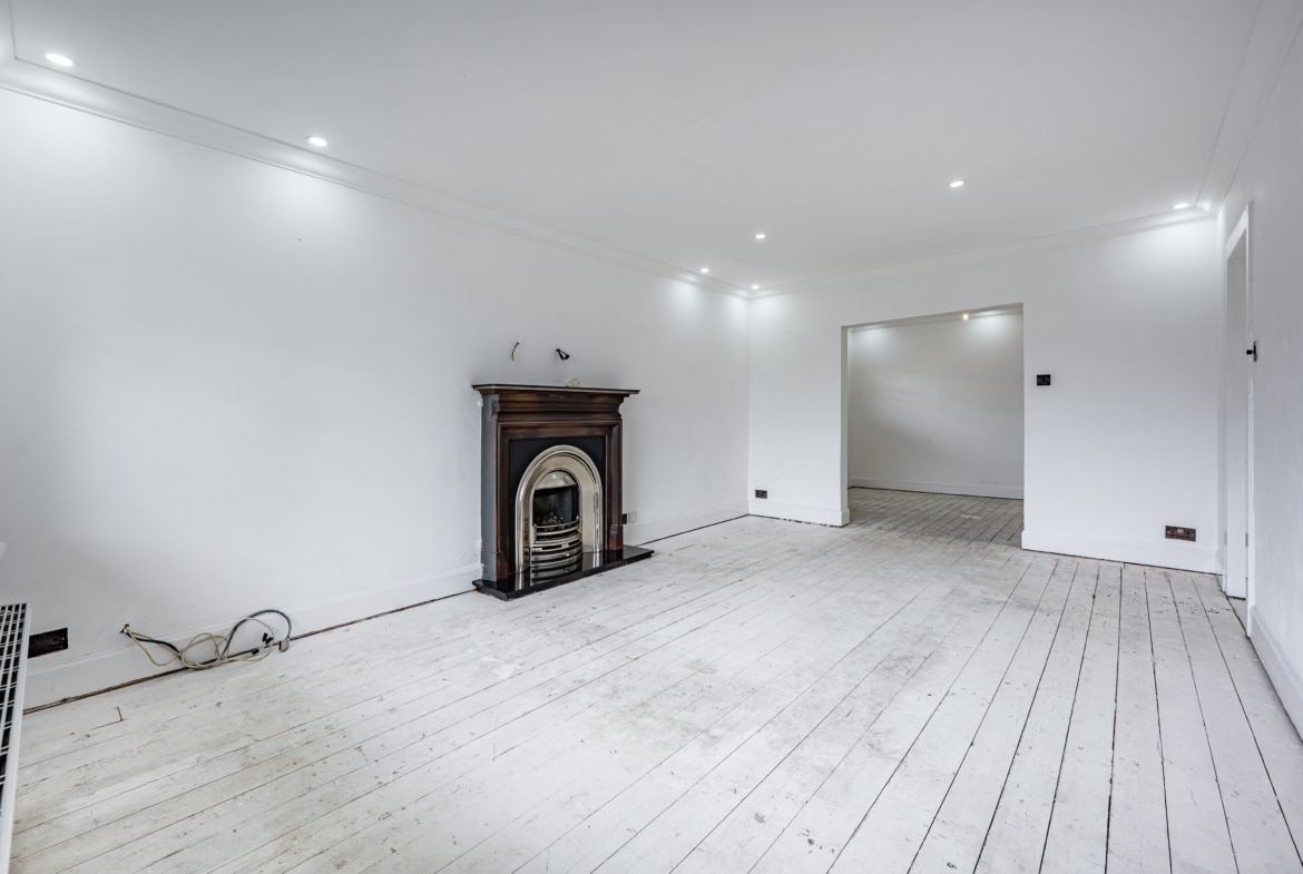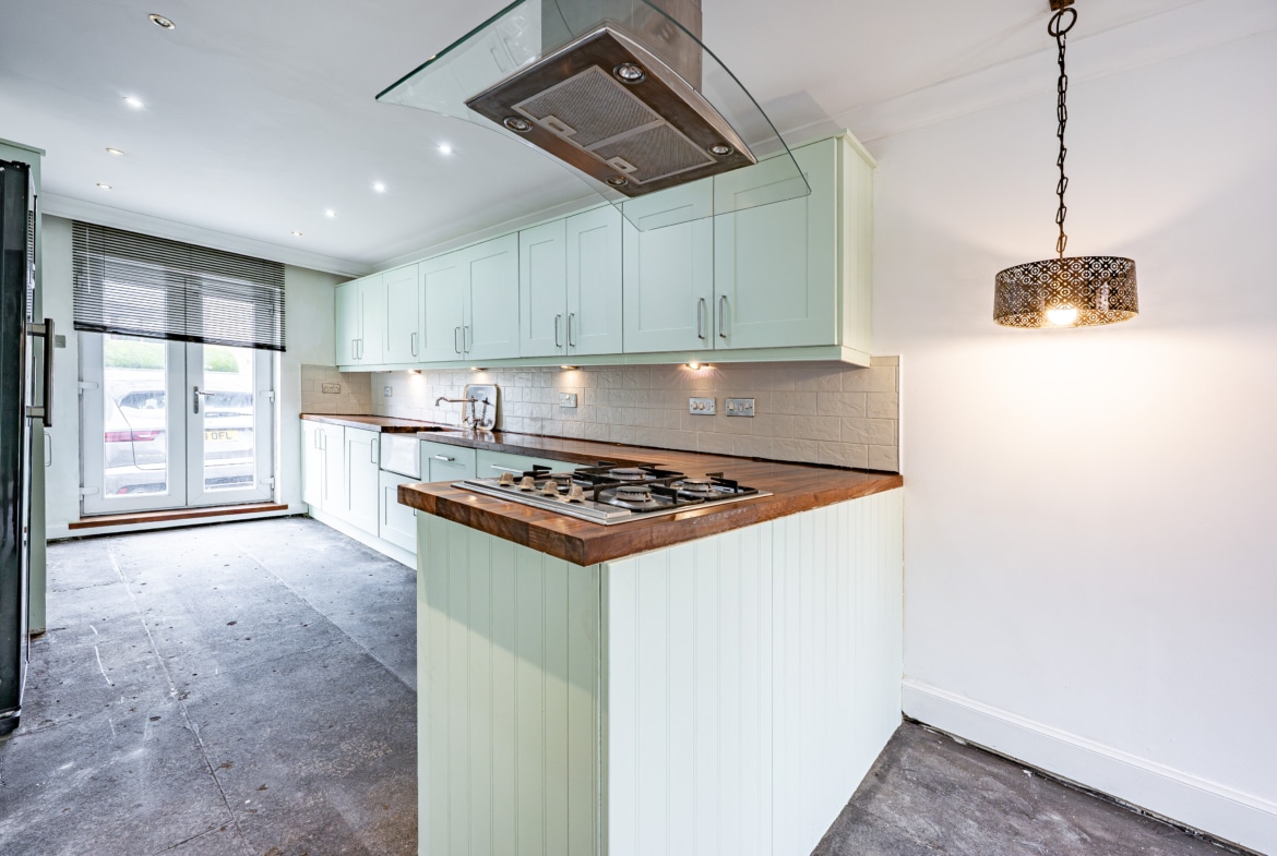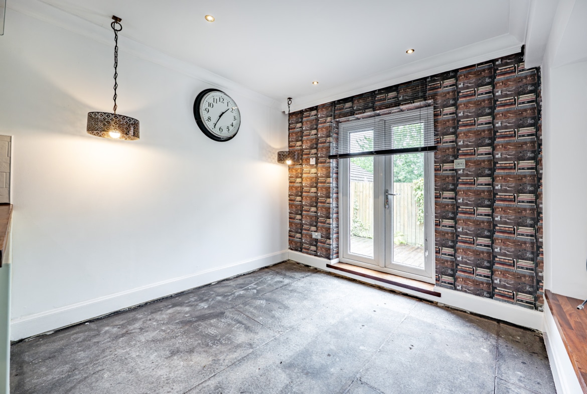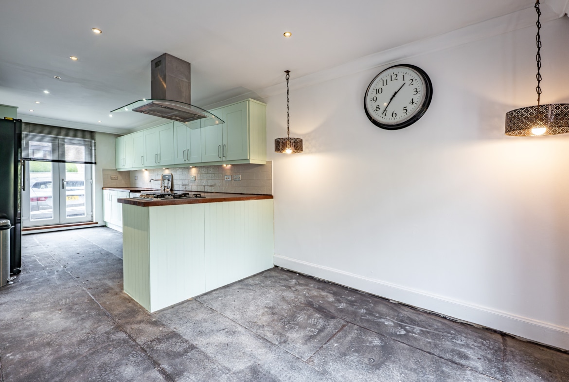 The accommodation comprises of a broad entrance hallway with stairs off to the upper landing and good provision for storage. The public space is one large open plan area, with a spacious lounge at the front f the house and a dining area beyond with plenty of space for social events. An extension at the back of the house has created an impressive dining kitchen with French doors off both sides of the room. The ground floor also provides a double bedroom and the family bathroom. The first floor offers two large double bedrooms both of which have in-built wardrobes. The principal bedroom has French doors which lead out to a roof terrace.