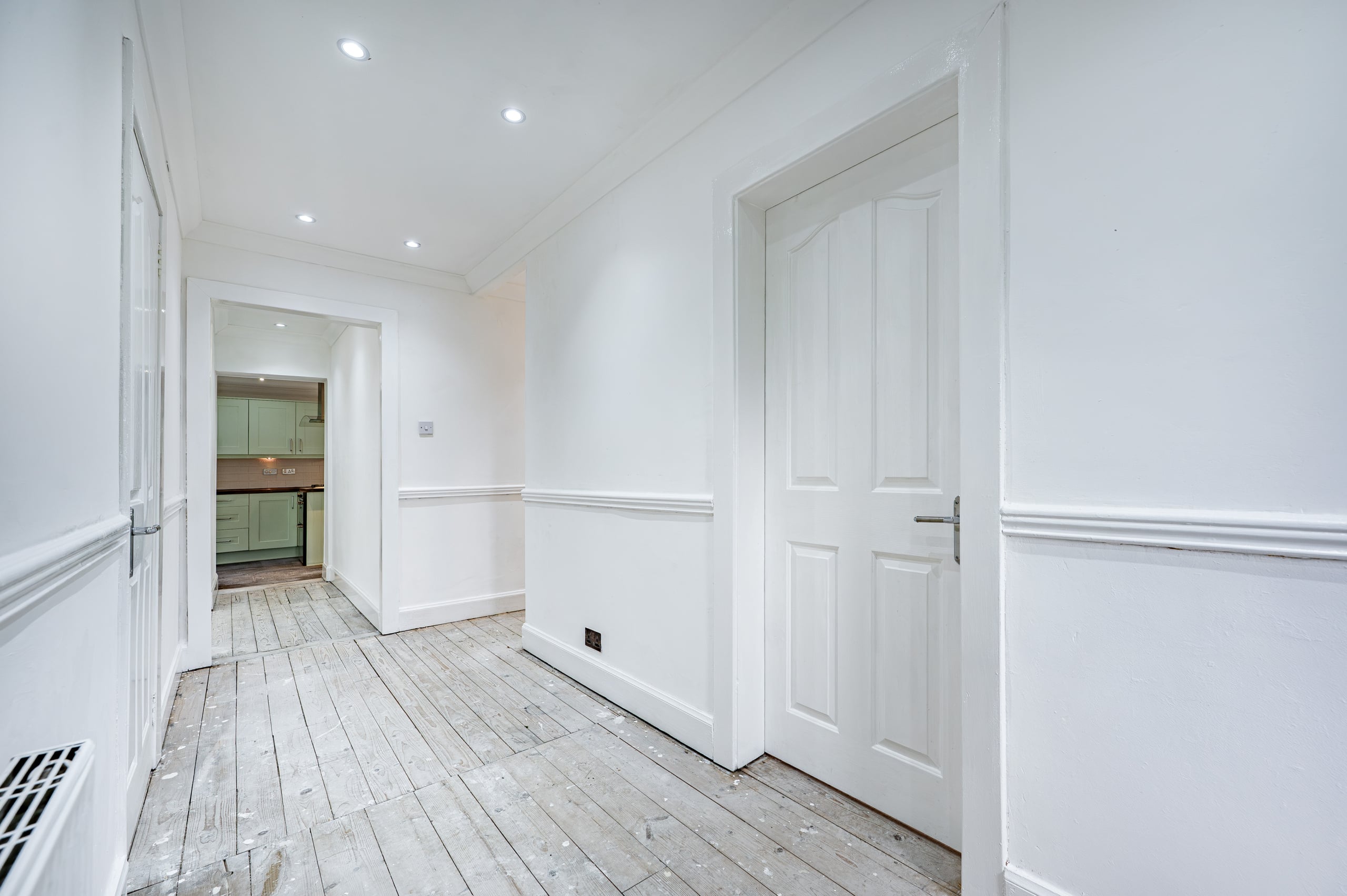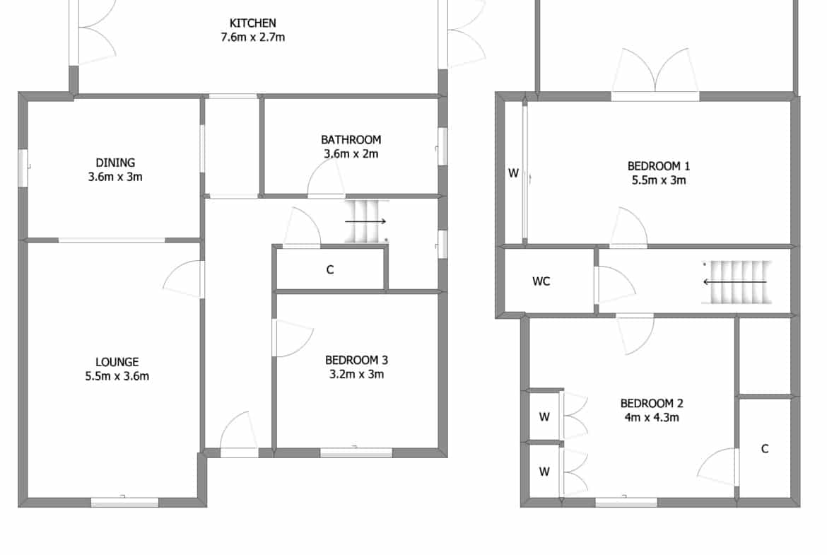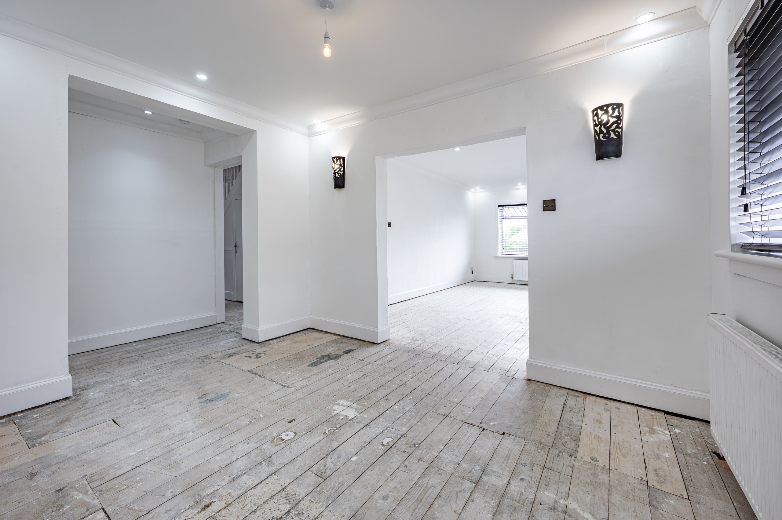The accommodation comprises of a broad entrance hallway with stairs off to the upper landing and good provision for storage. The public space is one large open plan area, with a spacious lounge at the front f the house and a dining area beyond with plenty of space for social events. An extension at the back of the house has created an impressive dining kitchen with French doors off both sides of the room. The ground floor also provides a double bedroom and the family bathroom. The first floor offers two large double bedrooms both of which have in-built wardrobes. The principal bedroom has French doors which lead out to a roof terrace.