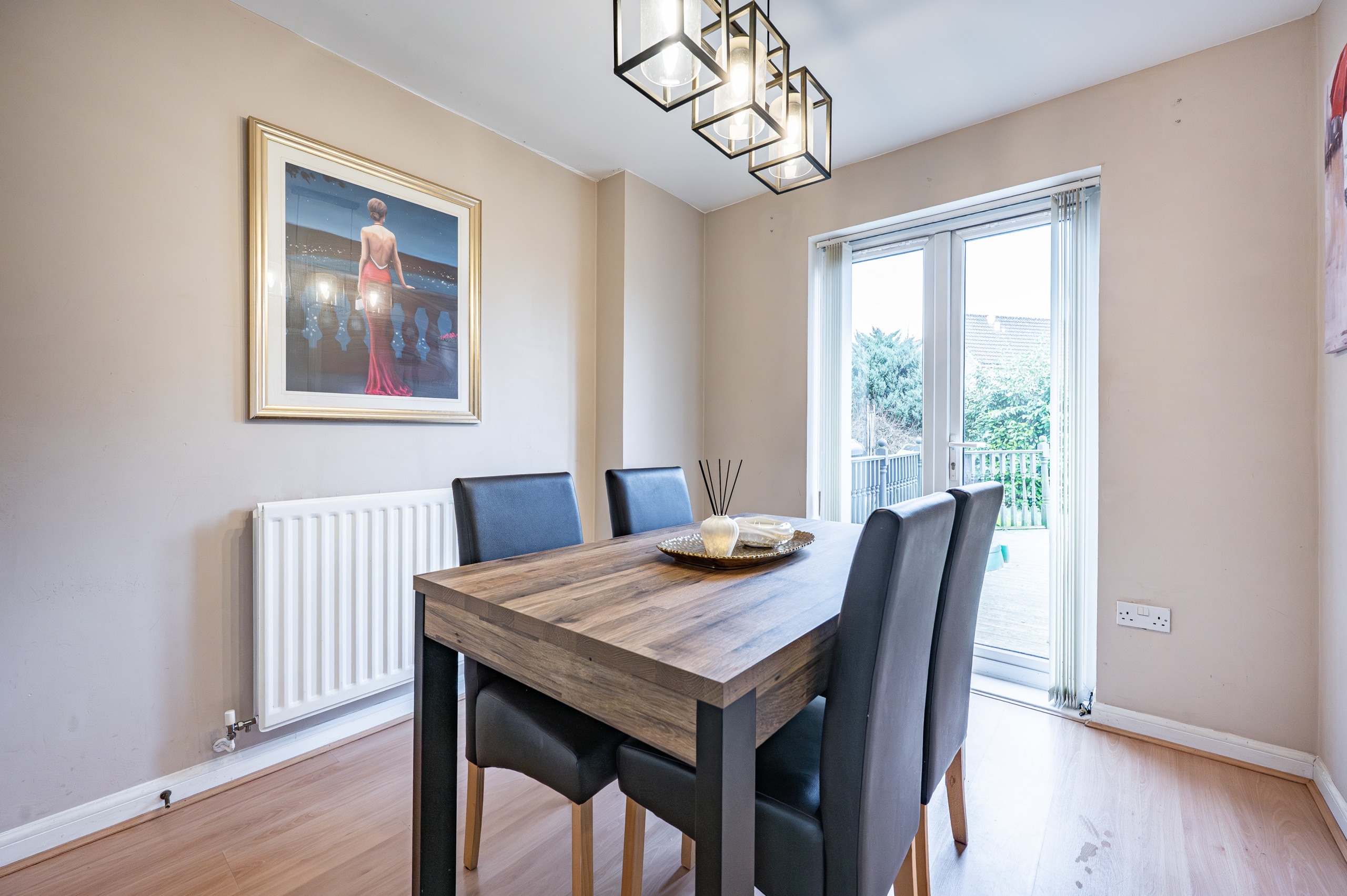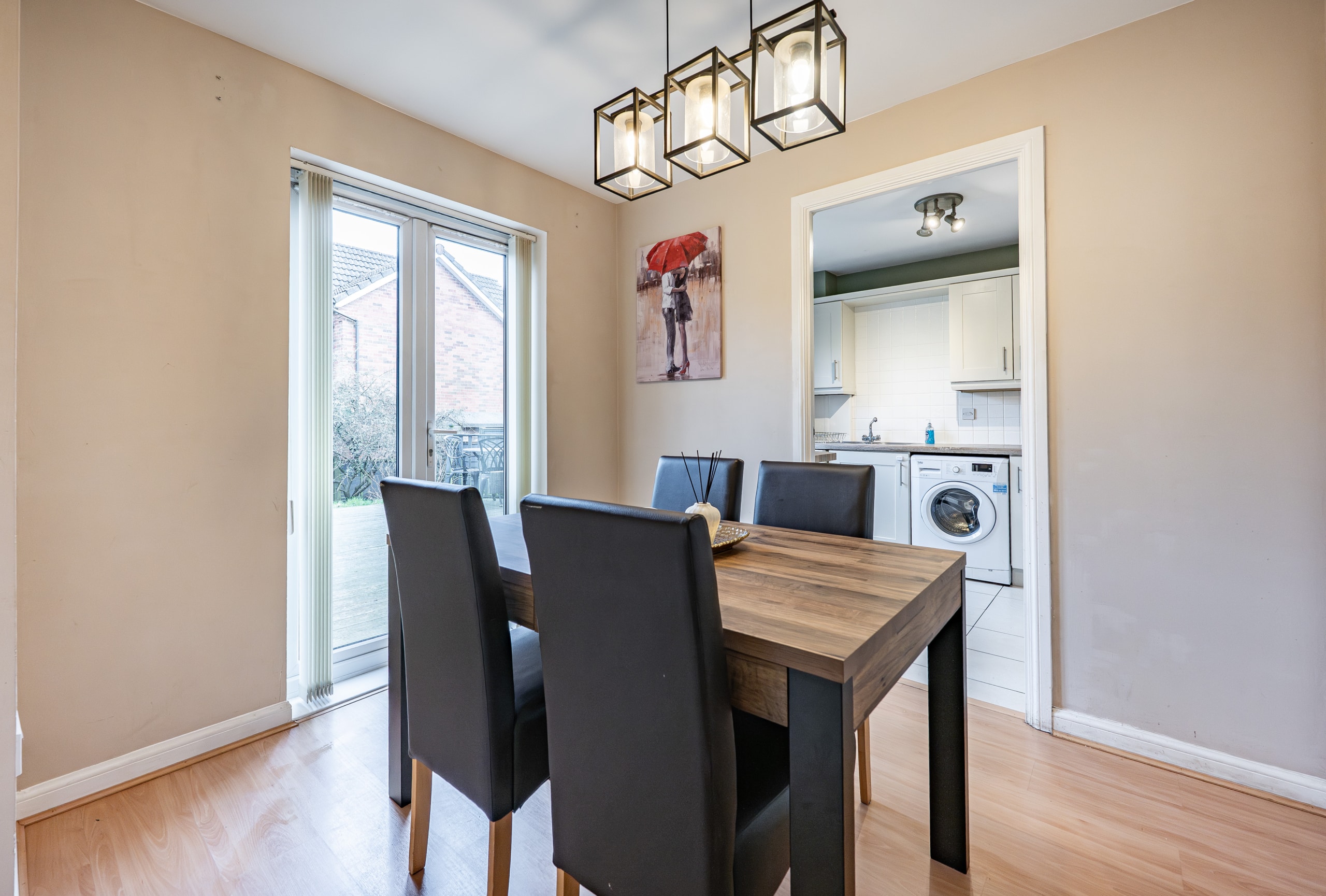 The front door opens into an entrance hallway with a cloakroom/WC off and stairs to the upper landing. The lounge is a lovely bright room at the front of the house with attractive modern décor creating an appealing space. Double doors at the back of the lounge lead through to a substantial dining room with French doors to the gardens. The kitchen is well appointed with a wide range of stylish cabinetry. Upstairs, the property has three well-proportioned bedrooms. The principal bedroom has an en-suite shower room. A family bathroom completes the accommodation on offer.