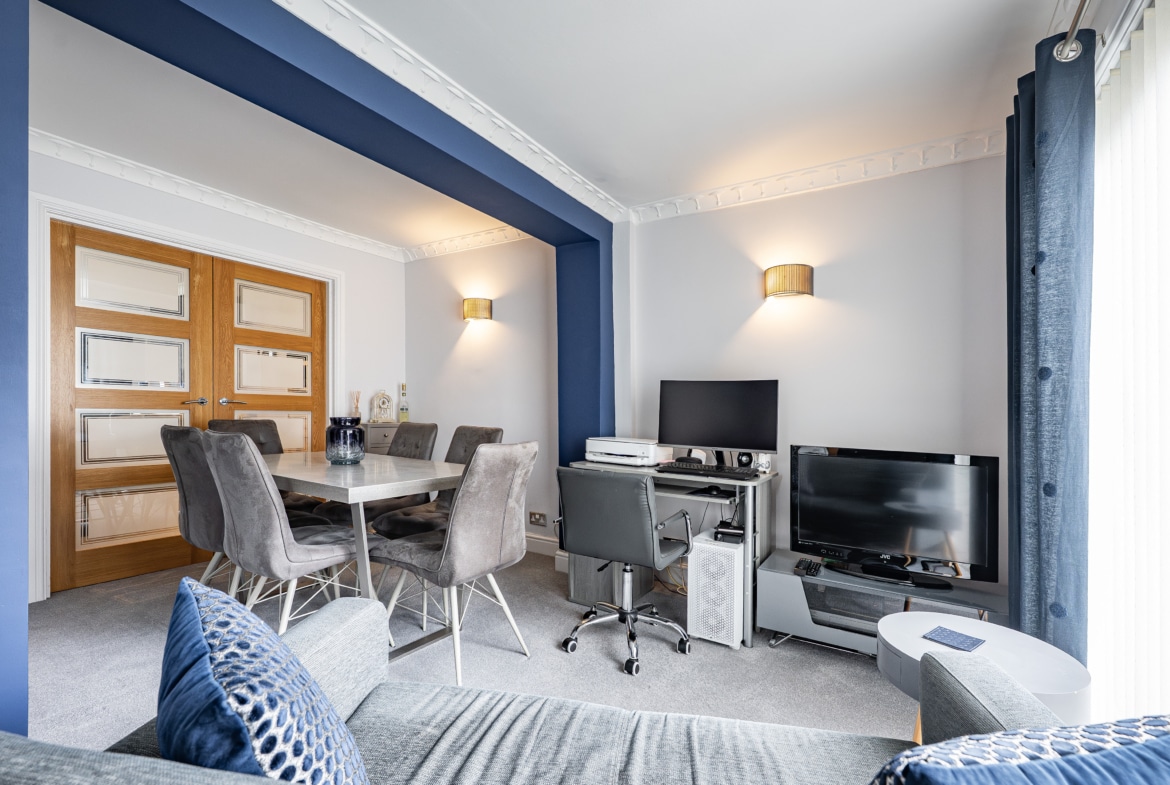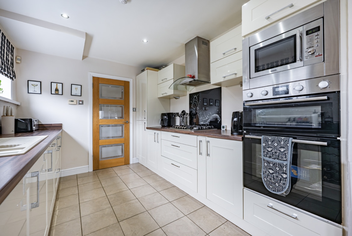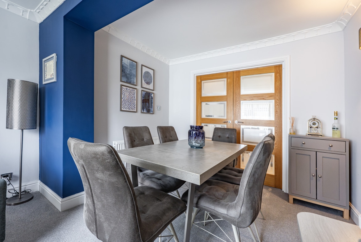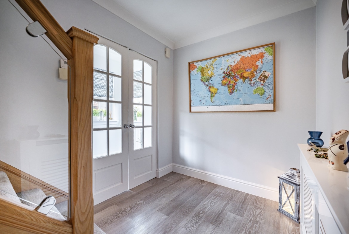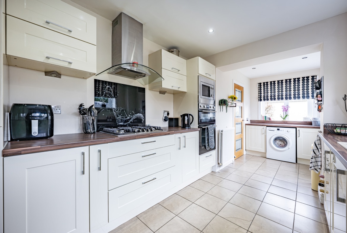 The accommodation is arranged over two floors comprising, a welcoming entrance porch leads through to the hallway with stairs to the upper landing and excellent provision for storage. The lounge is an immediately appealing room with fresh modern décor and a stylish fireplace. A second public space is accessed from double doors at the back of the lounge and is presently used as a dining room and additional sitting room. The kitchen is a fantastic size thanks to the extension and is well-equipped with a range of fitted cabinetry. Upstairs, there are three well-proportioned and attractively presented bedrooms and a fully tiled family bathroom.