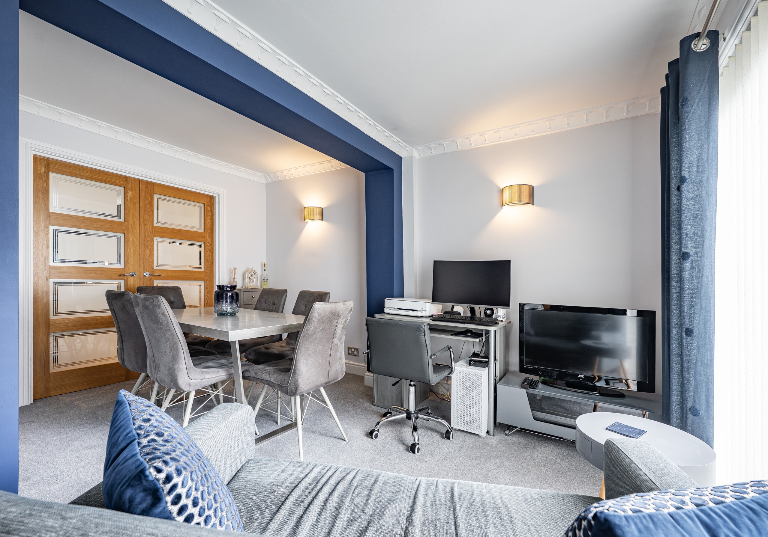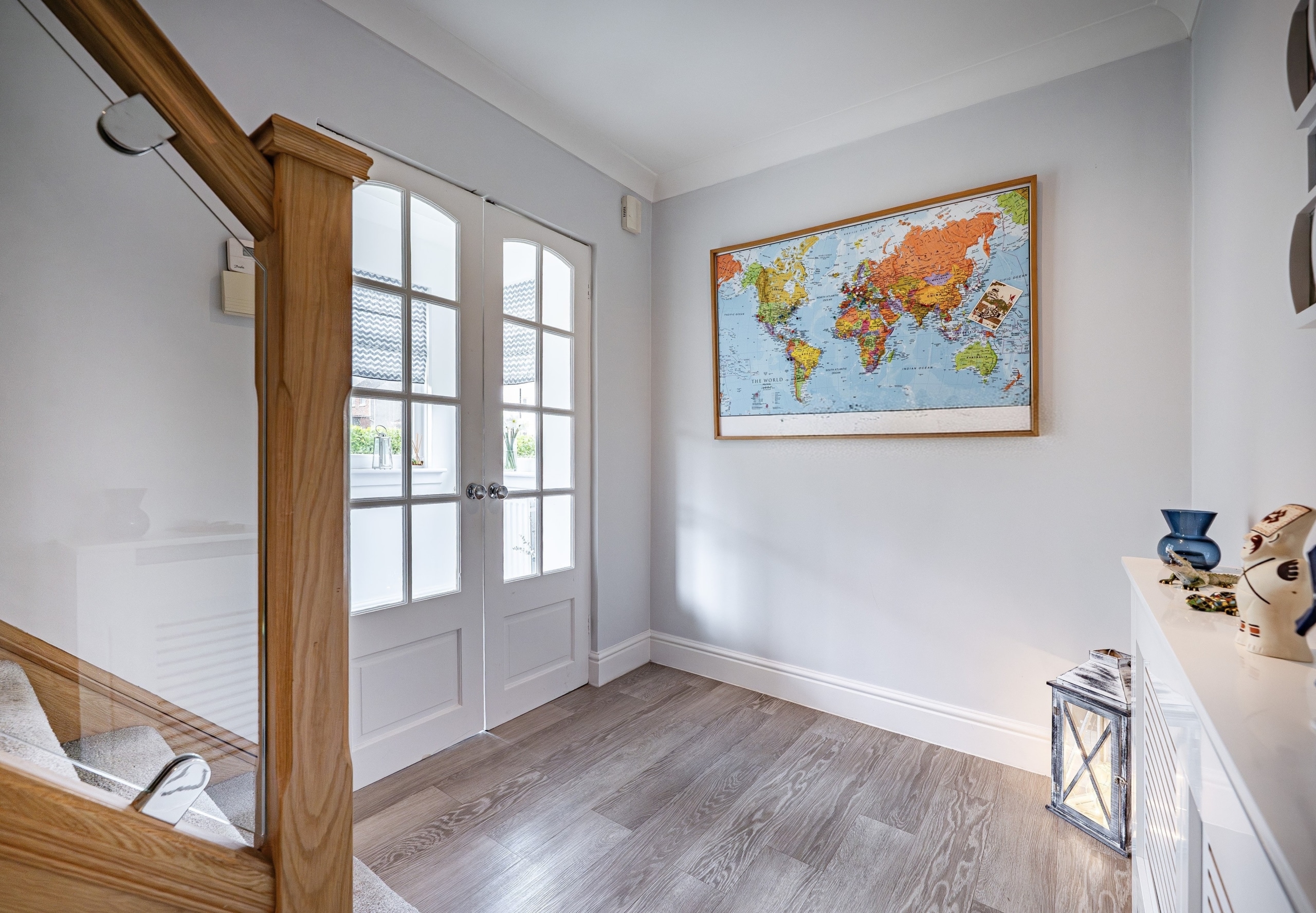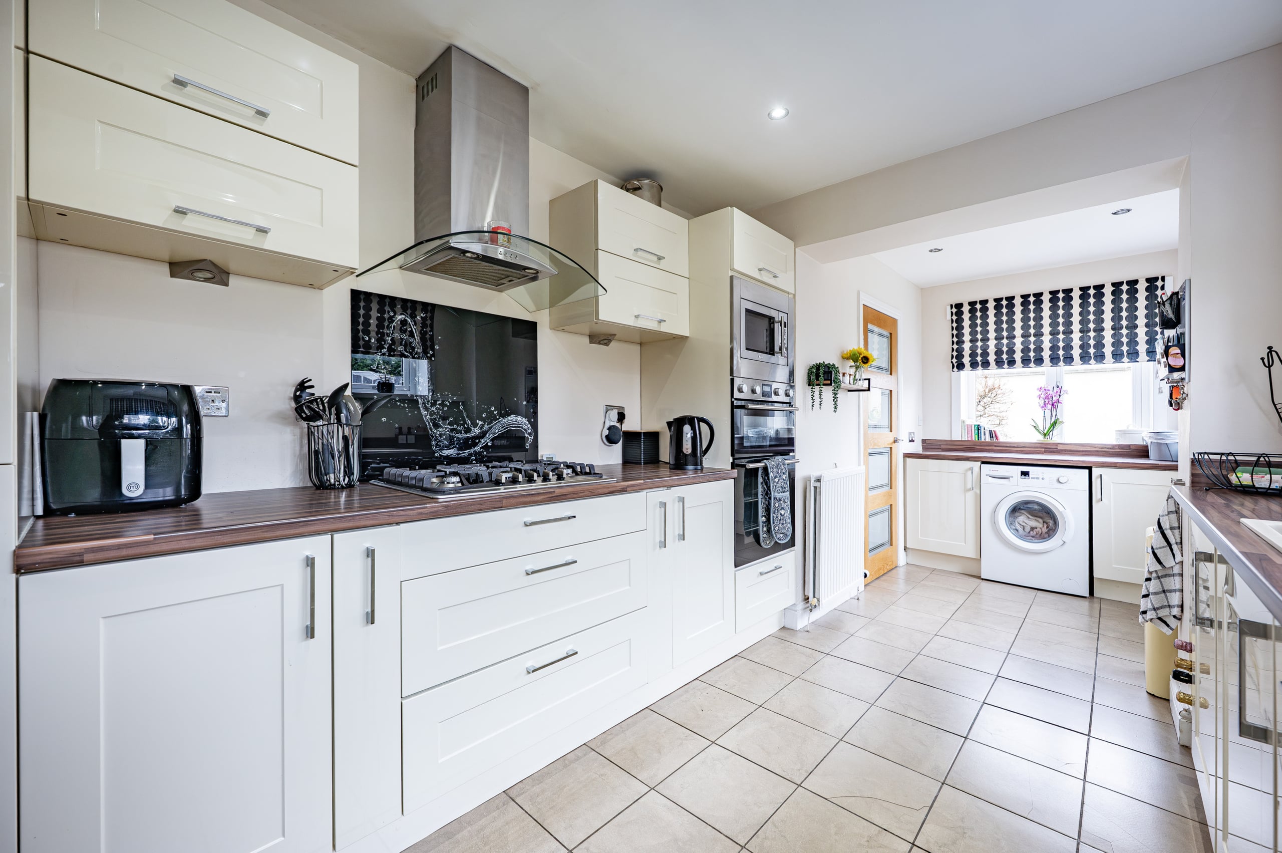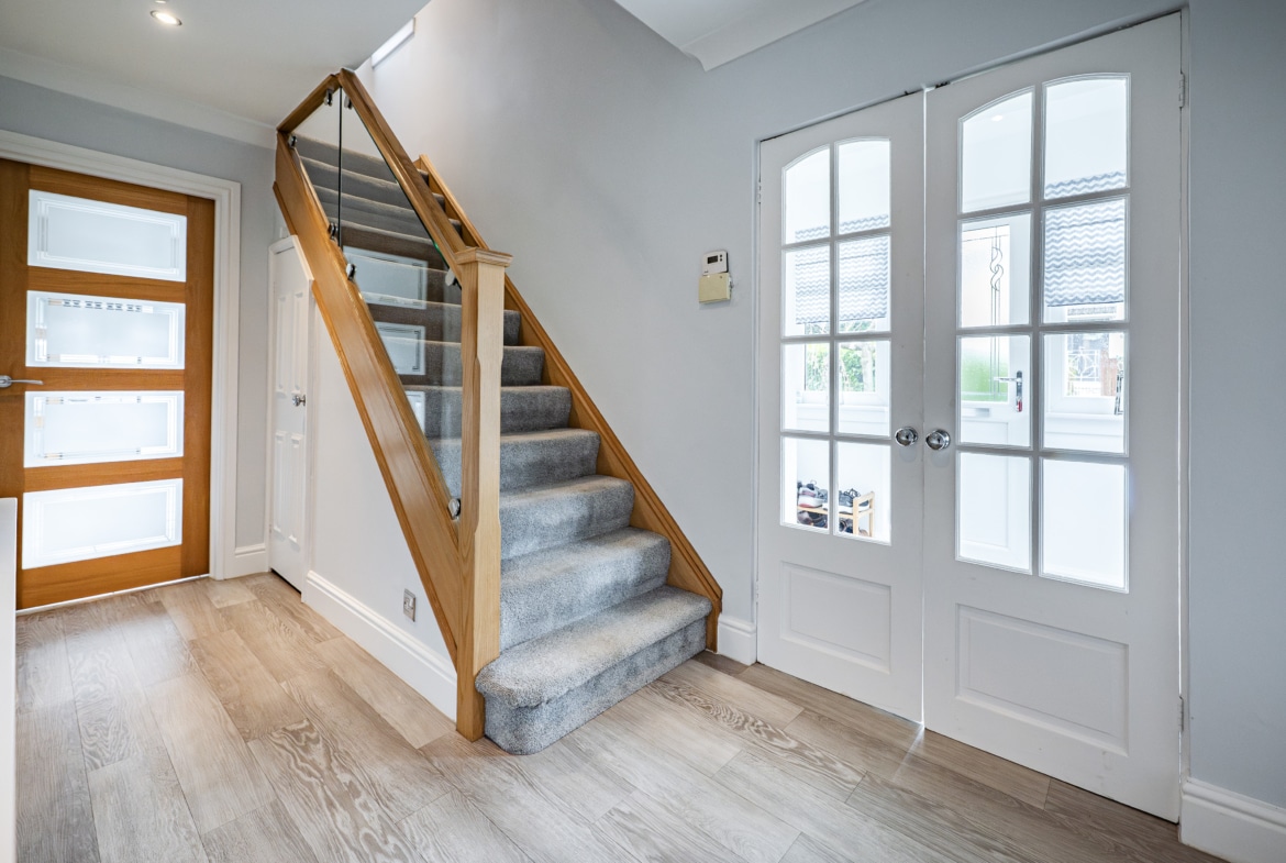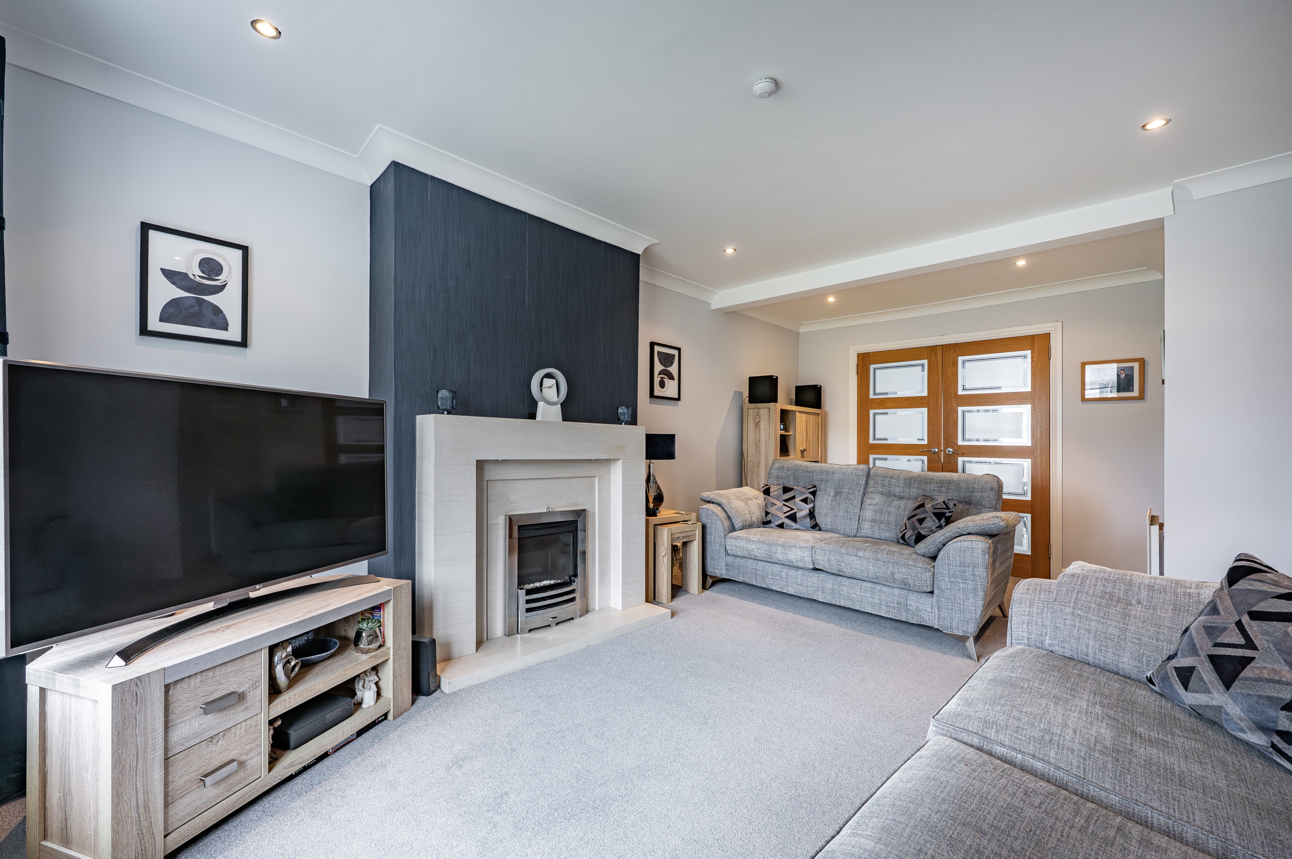The accommodation is arranged over two floors comprising, a welcoming entrance porch leads through to the hallway with stairs to the upper landing and excellent provision for storage. The lounge is an immediately appealing room with fresh modern décor and a stylish fireplace. A second public space is accessed from double doors at the back of the lounge and is presently used as a dining room and additional sitting room. The kitchen is a fantastic size thanks to the extension and is well-equipped with a range of fitted cabinetry. Upstairs, there are three well-proportioned and attractively presented bedrooms and a fully tiled family bathroom.