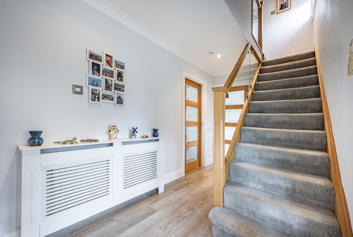 There are gardens to the front and side of the house setting it back from the road and a driveway with access to a garage. The rear gardens are a fabulous space ideally suited to family life, with a lawn and plenty of seating in the form of a patio.