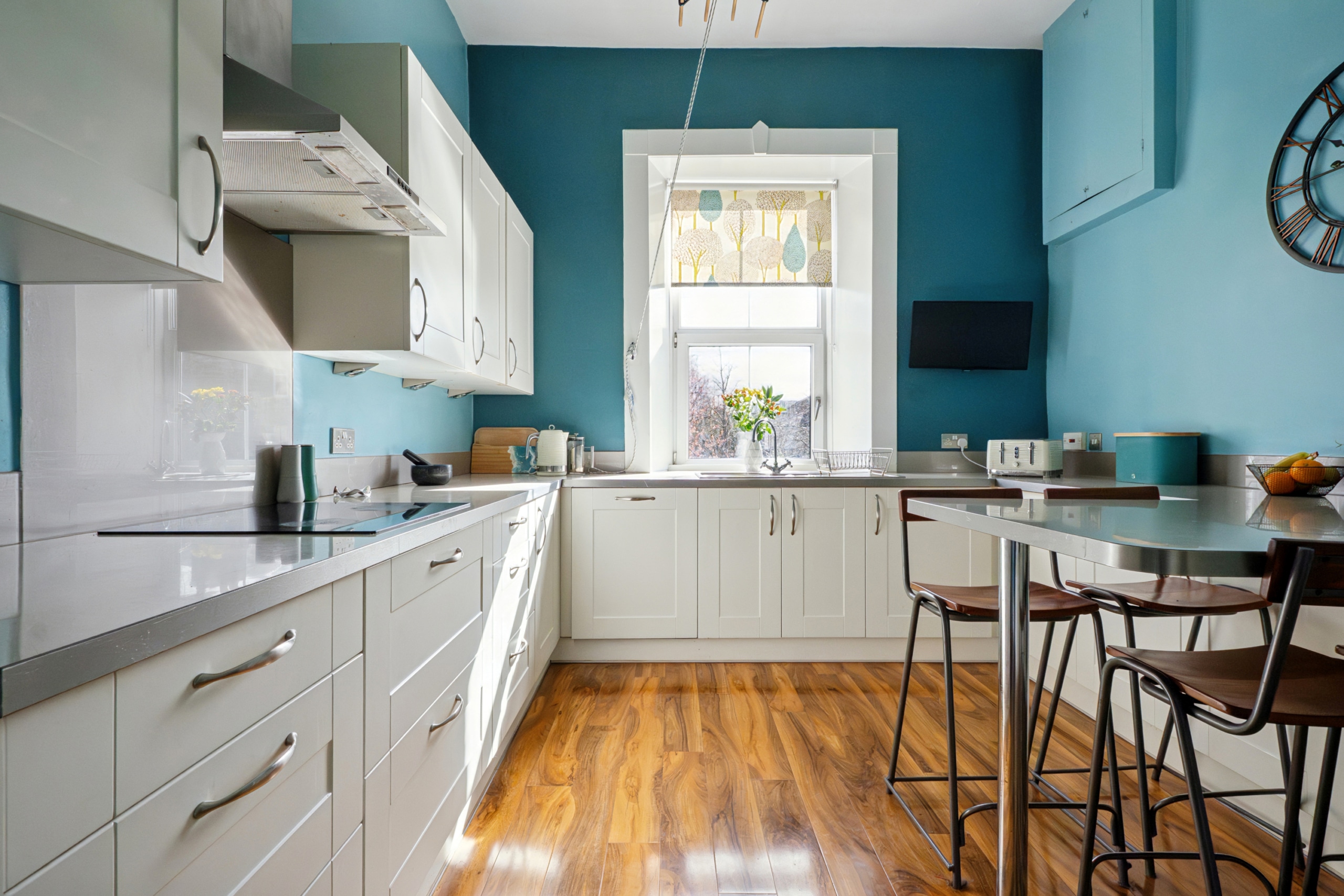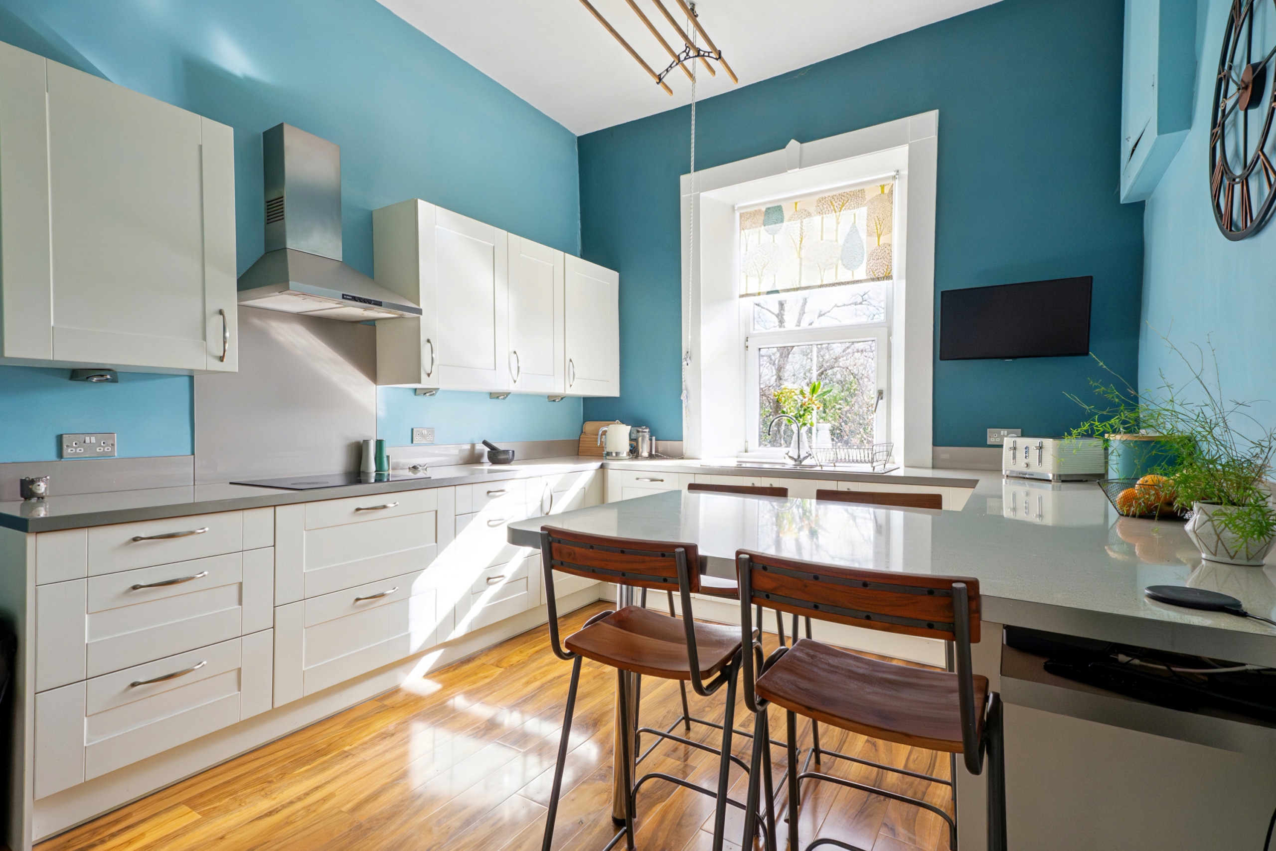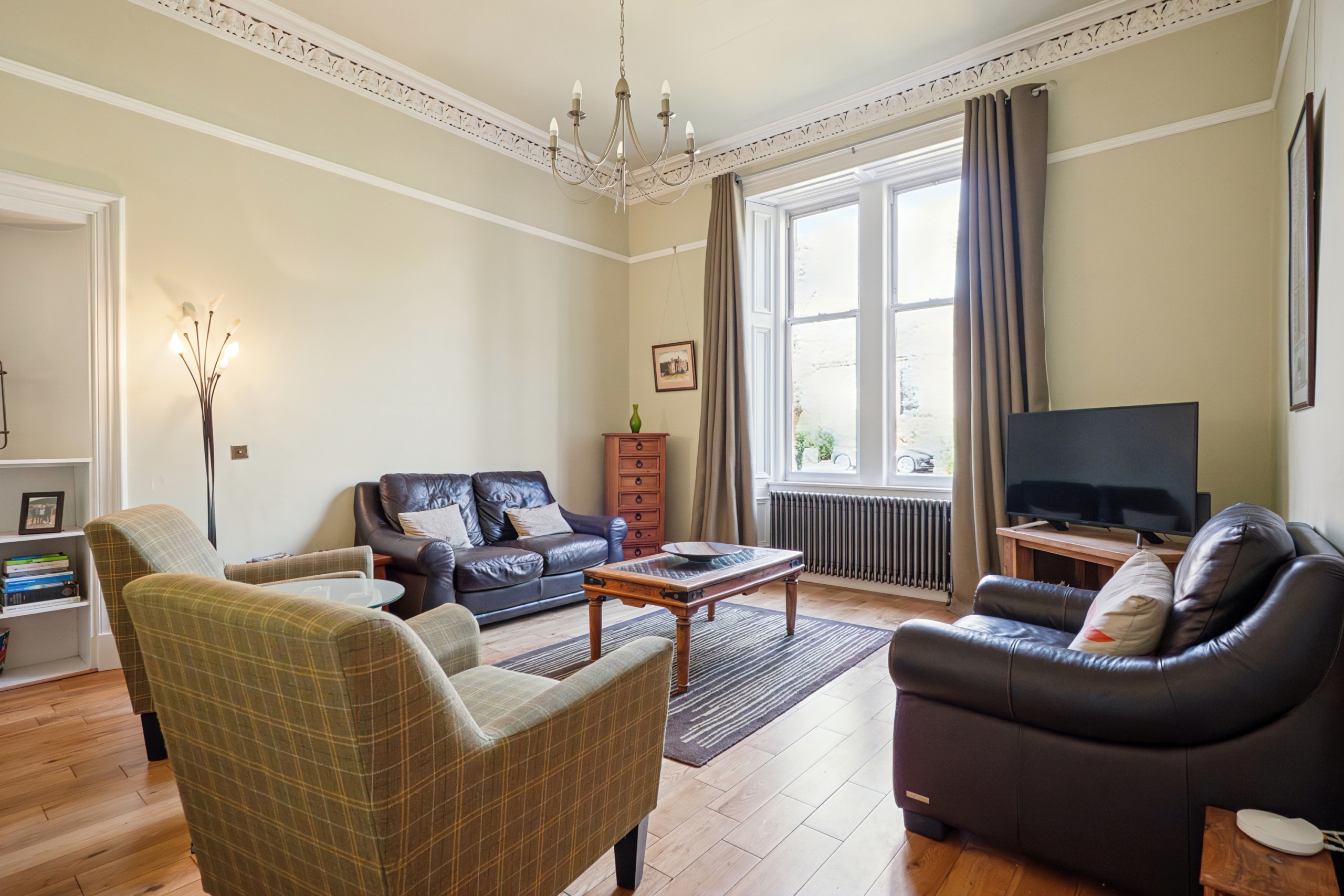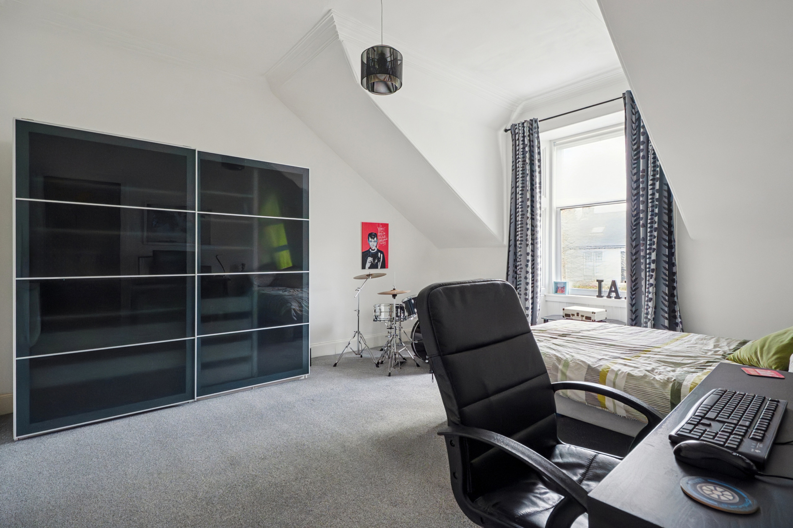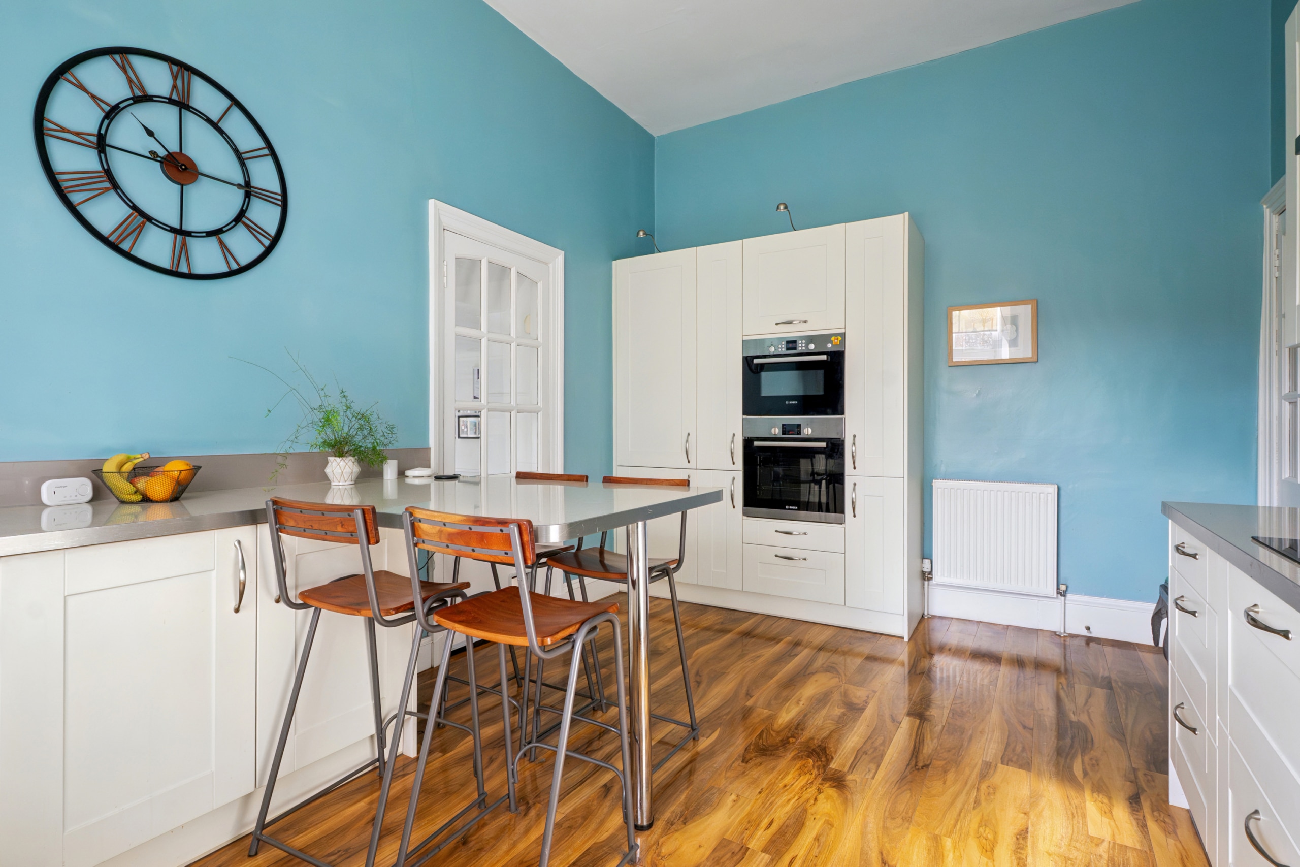 The accommodation is both extensive and versatile, comprising eight principal apartments arranged over two levels. A wealth of original features has been thoughtfully preserved, including impressive ceiling heights, ornate cornicing, detailed woodwork and architraves, original box-panelled doors, some working window shutters, stained glass detailing, and cast-iron radiators within the ground floor apartments and upper hallway. These characterful elements are complemented by high-quality modern finishes, including a well-appointed kitchen (refitted approximately nine years ago), a stylish shower room, and a recently renewed family bathroom. Further practical benefits include a system of gas-fired central heating via an efficient Worcester boiler (installed in 2015), double glazing, many of which have been replaced in recent years, premium flooring throughout – including oak flooring to the hall and sitting room – and a security alarm system for added peace of mind.