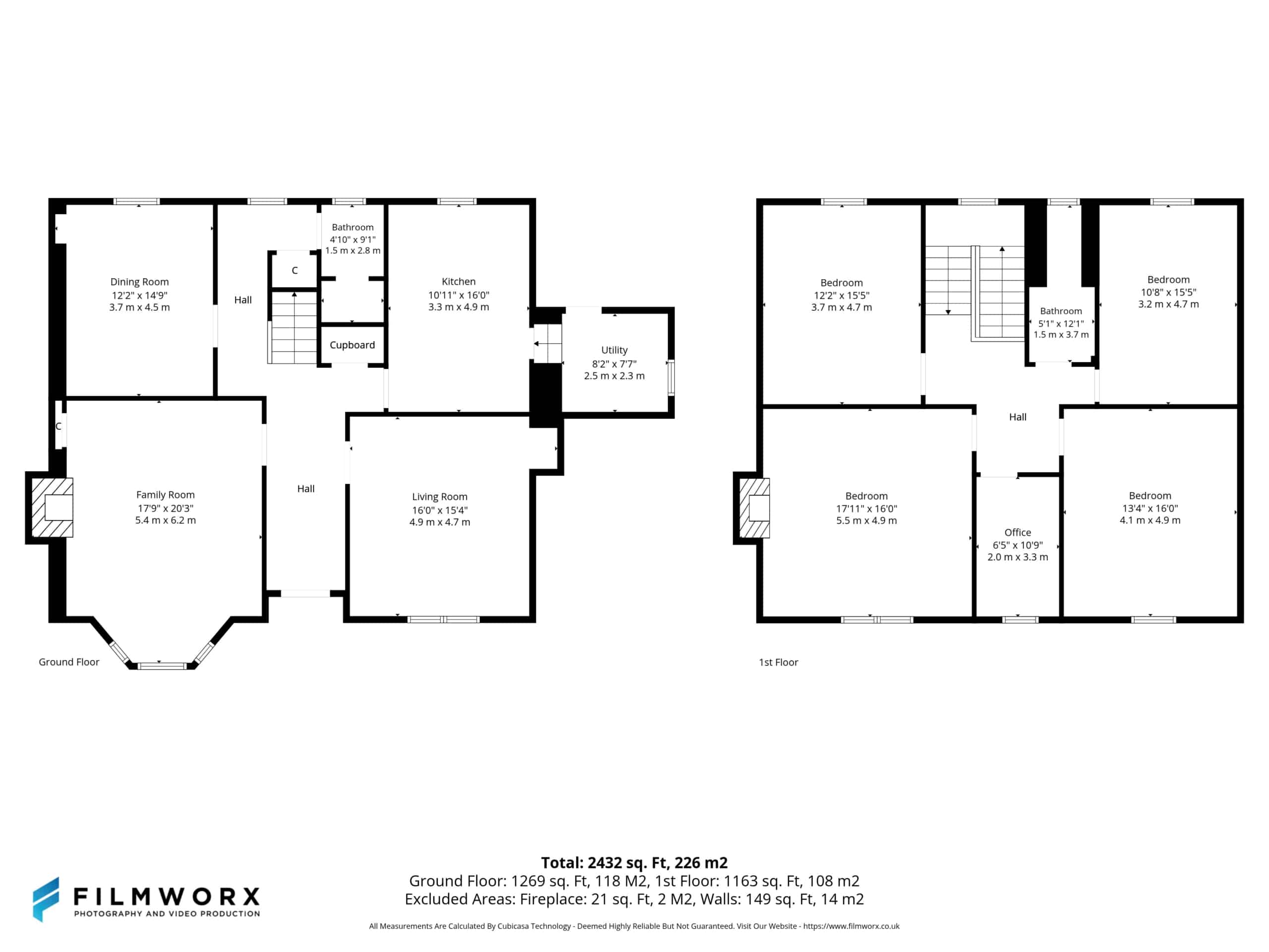 Upstairs, a spacious hallway gives access to four well-proportioned double bedrooms and a separate study. The principal bedroom is enhanced by a feature fireplace, and there is a beautifully appointed family bathroom.