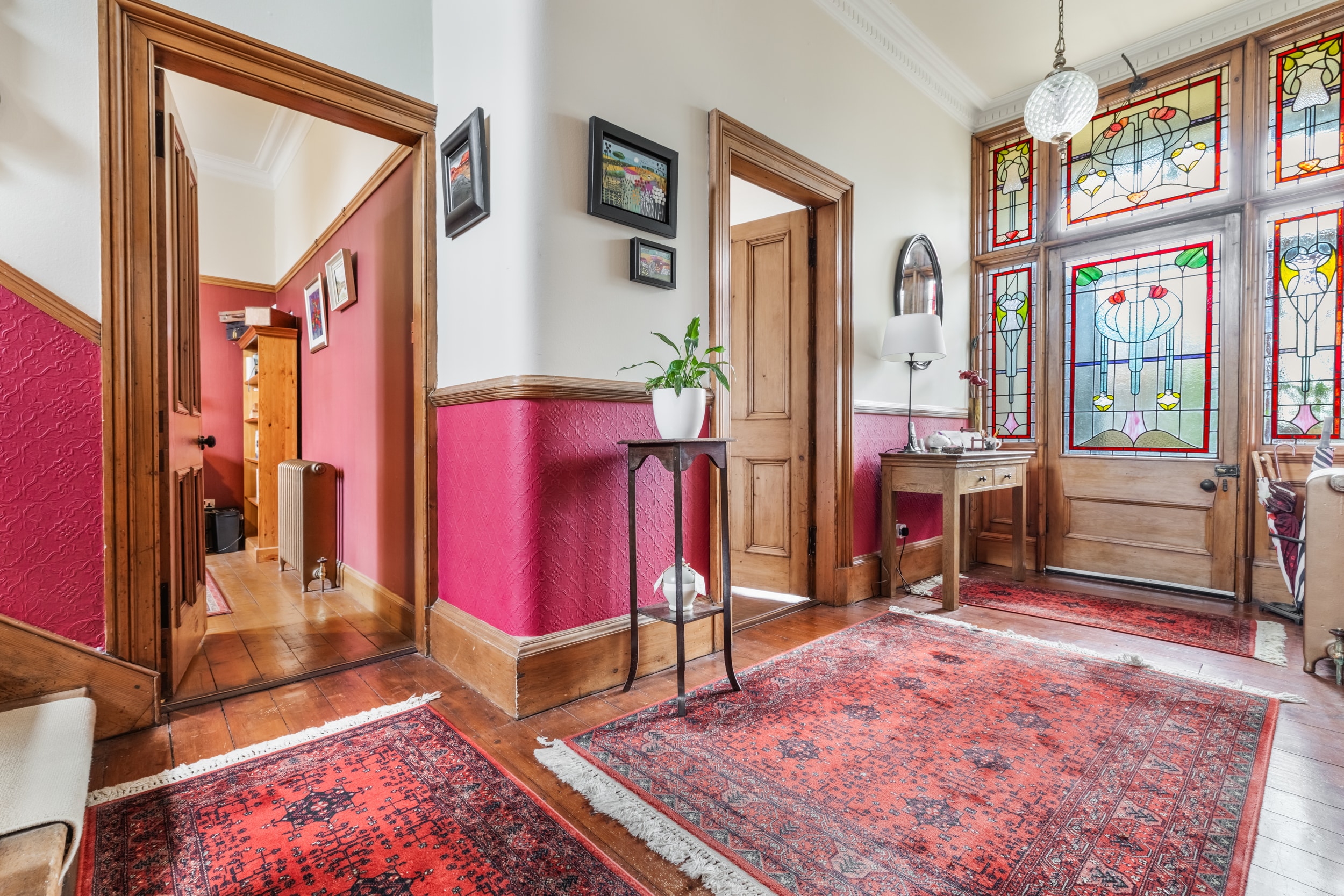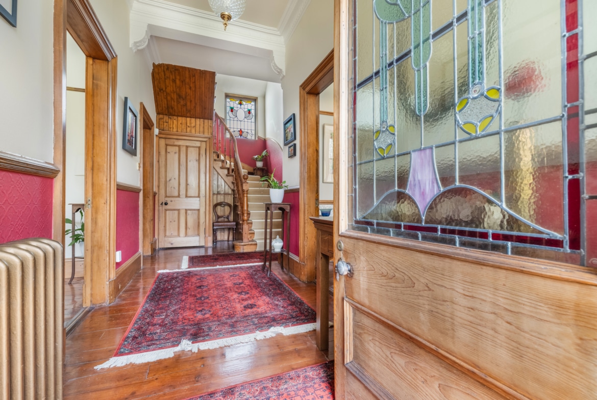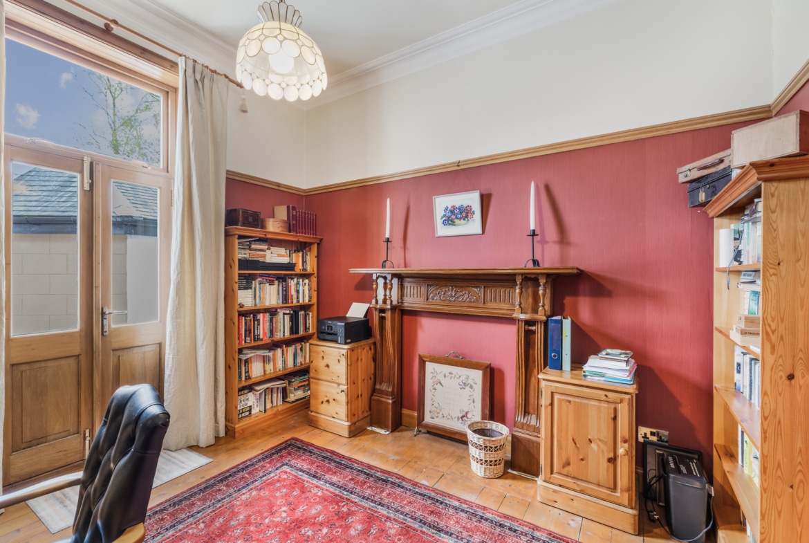 An entrance vestibule leads through to the reception hallway, via a most impressive stained-glass entrance. Either side of the entrance hall there are exactly the sort of stylish public rooms one would associate with a home of this period. Both rooms have focal point fireplaces, large windows and decorative plasterwork while enjoying truly enviable proportions. At the moment one room is set out as a lounge while the other is a dining room. An additional room at the back of the house is presently utilised as a home office, but could serve as an additional bedroom if required. There is a fantastic kitchen with an extensive range of fitted cabinetry, with a central island and space for a breakfast table. A useful utility room off the kitchen provides additional storage and space for white goods. There is a cloakroom/WC to complete the ground floor. There is a large family bathroom at the half landing on the stairs. The first floor provides four generous double bedrooms and a beautifully appointed shower room.