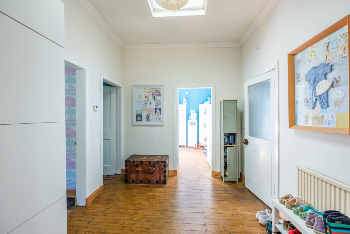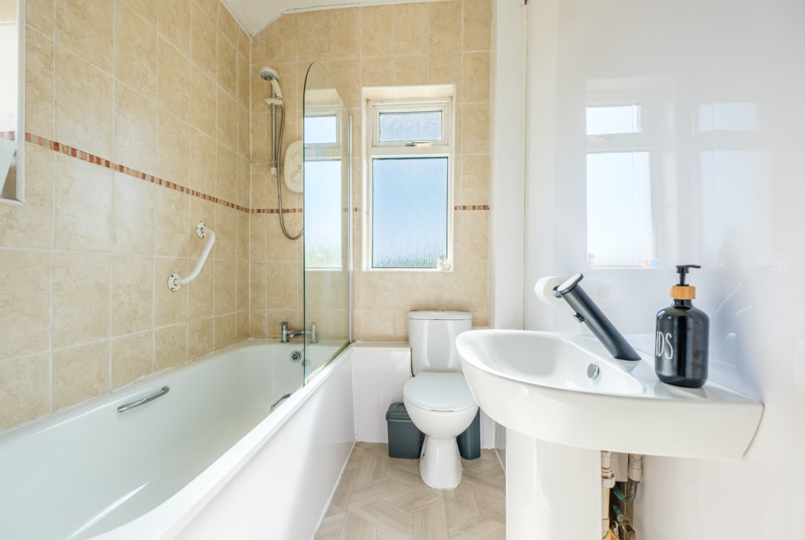 Bedroom one is rear facing with exposed timber flooring and gives access to ensuite. Ensuite comprising low flush wc, wash hand basin and shower cubicle with decorative wet wall paneling and vinyl flooring. Bedroom two with large fitted storage cupboard and exposed timber flooring. Bedroom three is front facing again with exposed timber flooring. Front facing family bathroom comprising low flush wc, wash hand basin, bath, shower (over bath), partially tiled walls and vinyl flooring.