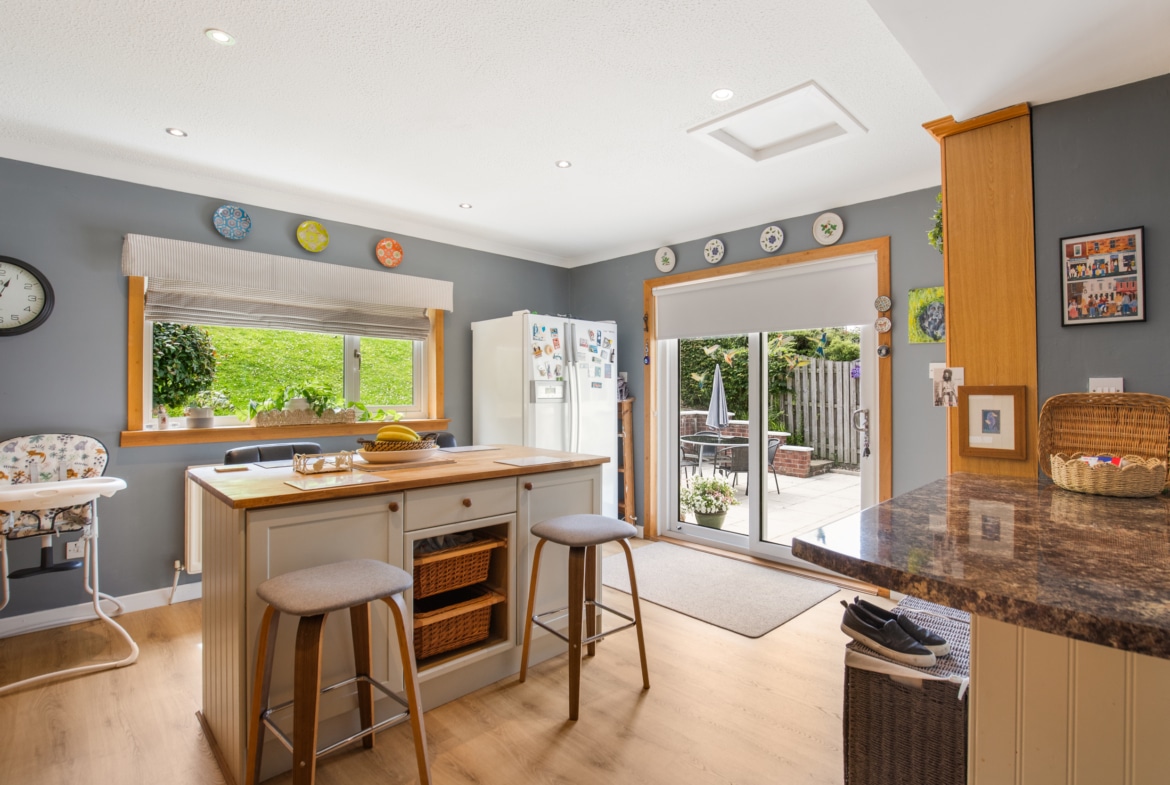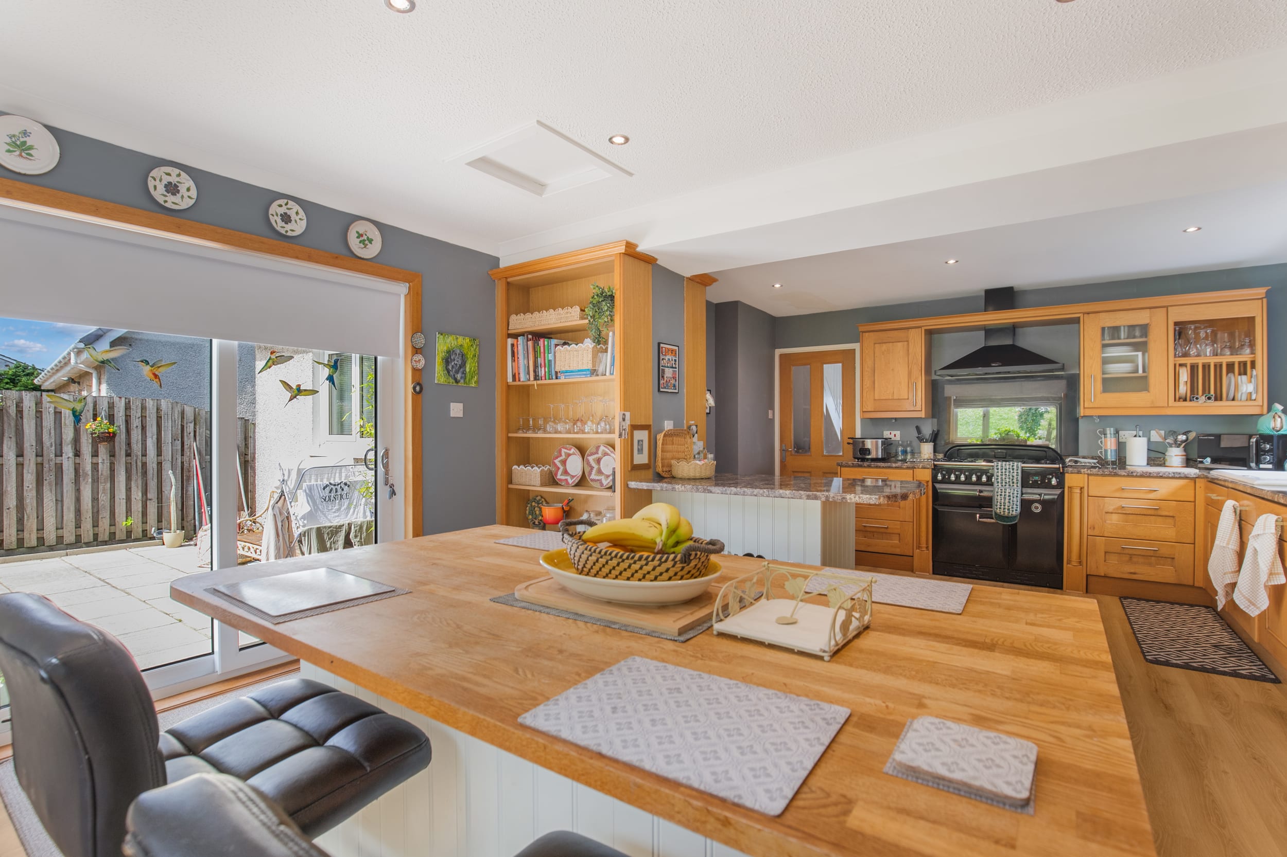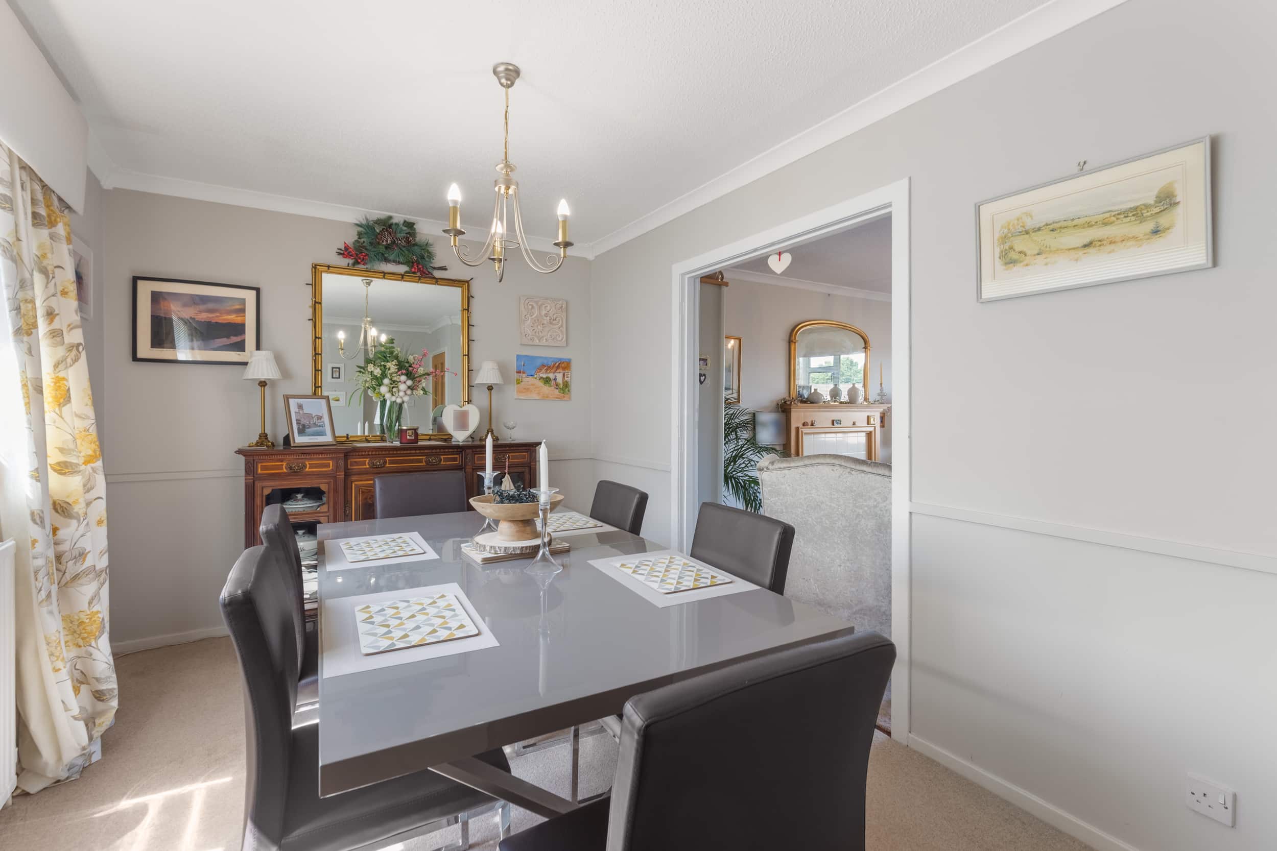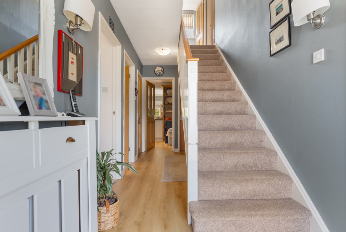 The front door of the house opens into a broad reception hallway with stairs off to the upper landing and a good sized storage cupboard. The lounge is to the front of the house and is presented in fresh modern décor which features throughout. The lounge has a large window making the most of the view and a feature fireplace. Beyond the lounge there is a large dining room, ideally suited to hosting family occasions and social gatherings. The kitchen has been extended to create a fabulous room with a wide range of fitted units and a social space with patio doors out to the gardens. Another room at the front of the house offers the option to have an additional public space, home office or even fourth bedroom. A bathroom completes the ground floor. Upstairs, the property has three nicely proportioned bedrooms and a bathroom.