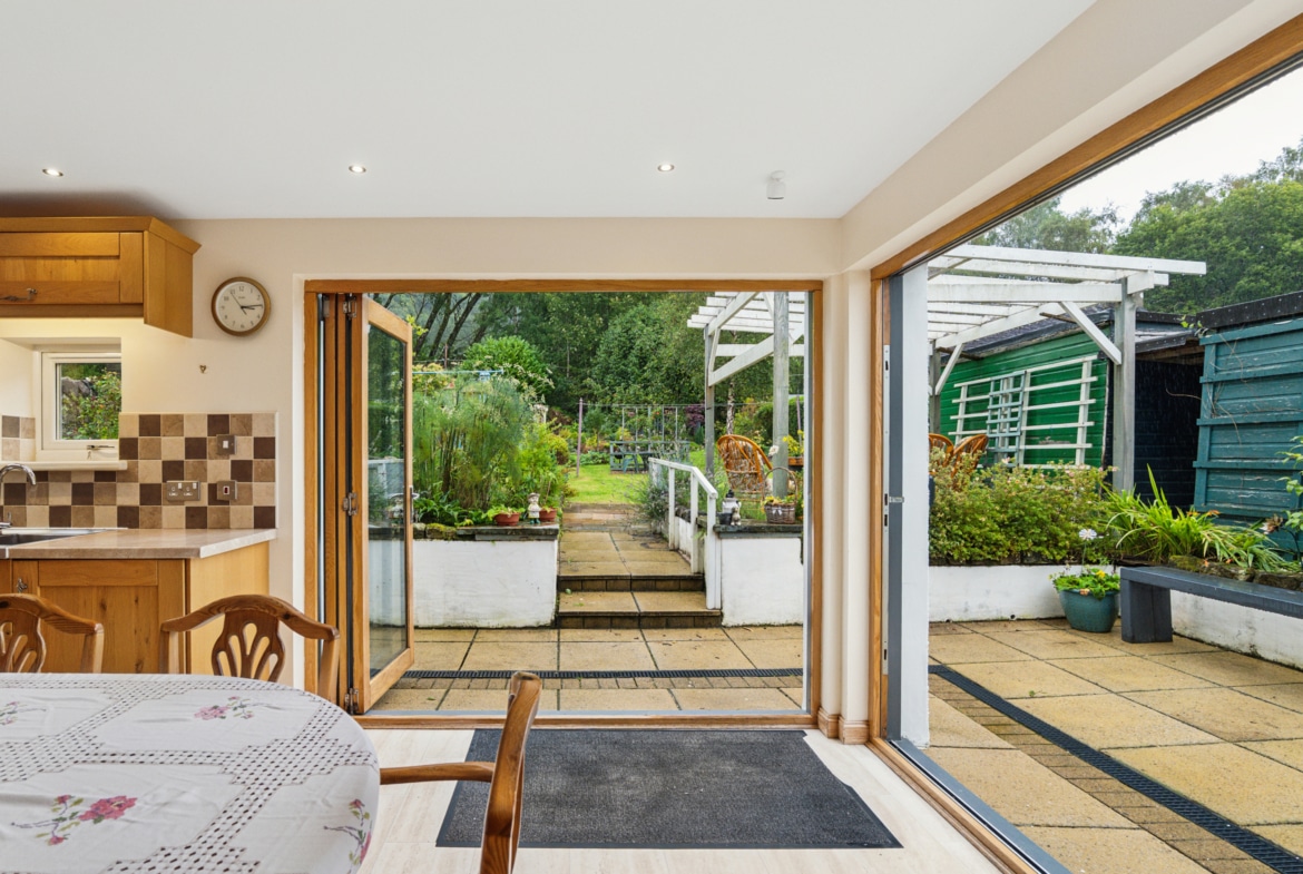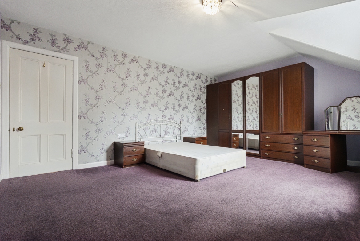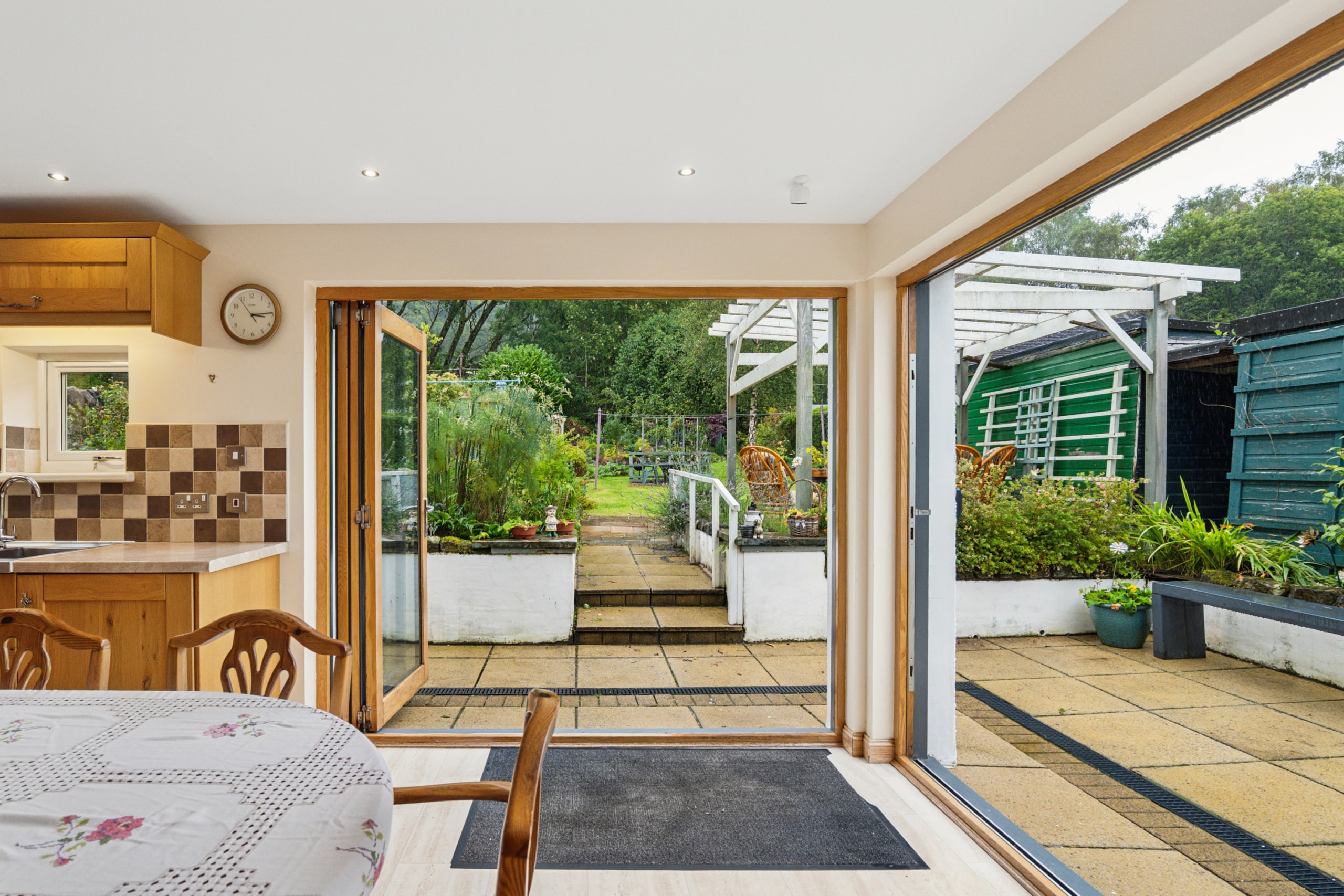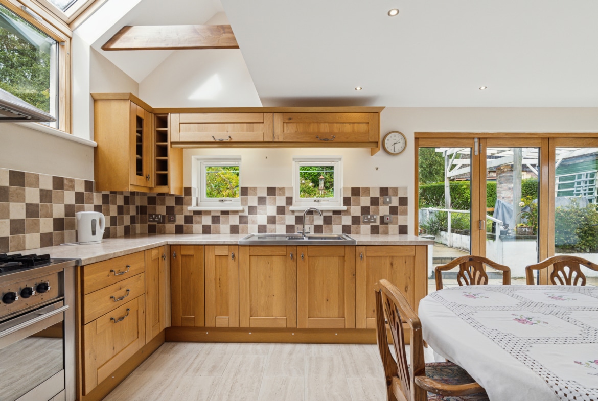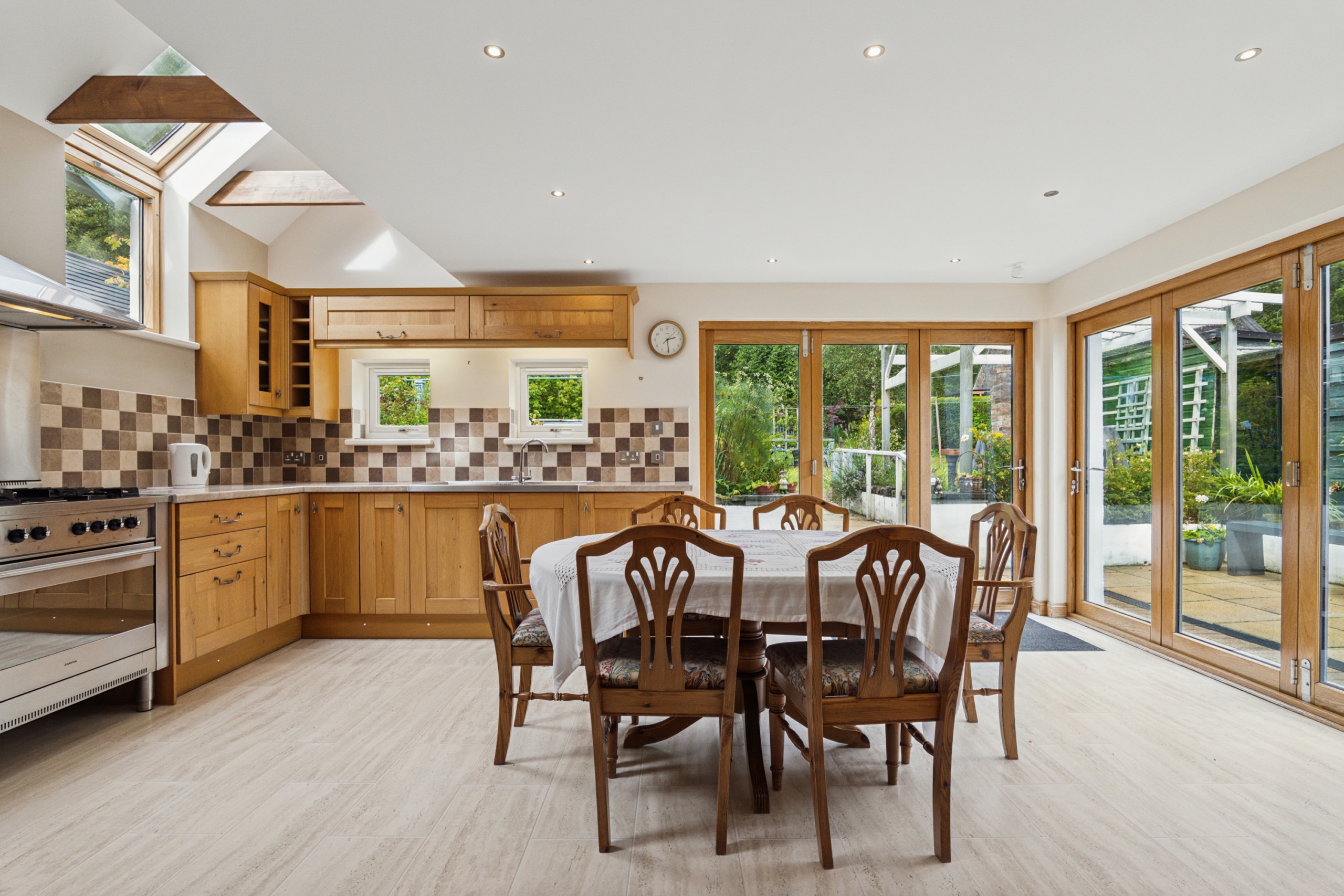 Set back from the road the house frontage retains its traditional charm with a striking entrance porch and classic façade, while to the rear, a contemporary extension opens the living space into the garden. Internally on the ground floor there are two well-proportioned living rooms positioned to the front of the property, both have a generous footprint providing excellent space for various furniture configurations, one of the rooms benefits from French doors opening directly out to the garden. From the second living room you step into the impressive extended part of the property, the open plan kitchen, dining, and family space are the true heart of the home, featuring velux windows and bi-fold doors that flood the space with natural light and create a seamless connection to the stunning garden – perfect for entertaining or relaxing with the family. The kitchen area boasts a plethora of classic style cabinets framed by a sweep of work top space, a range cooker, and space for a fridge/freezer. There is ample floor space for a large table and chairs making this an ideal room for entertaining. There is a separate utility room with a door to the garden. Completing the ground floor is a shower room with electric shower, toilet, and sink.