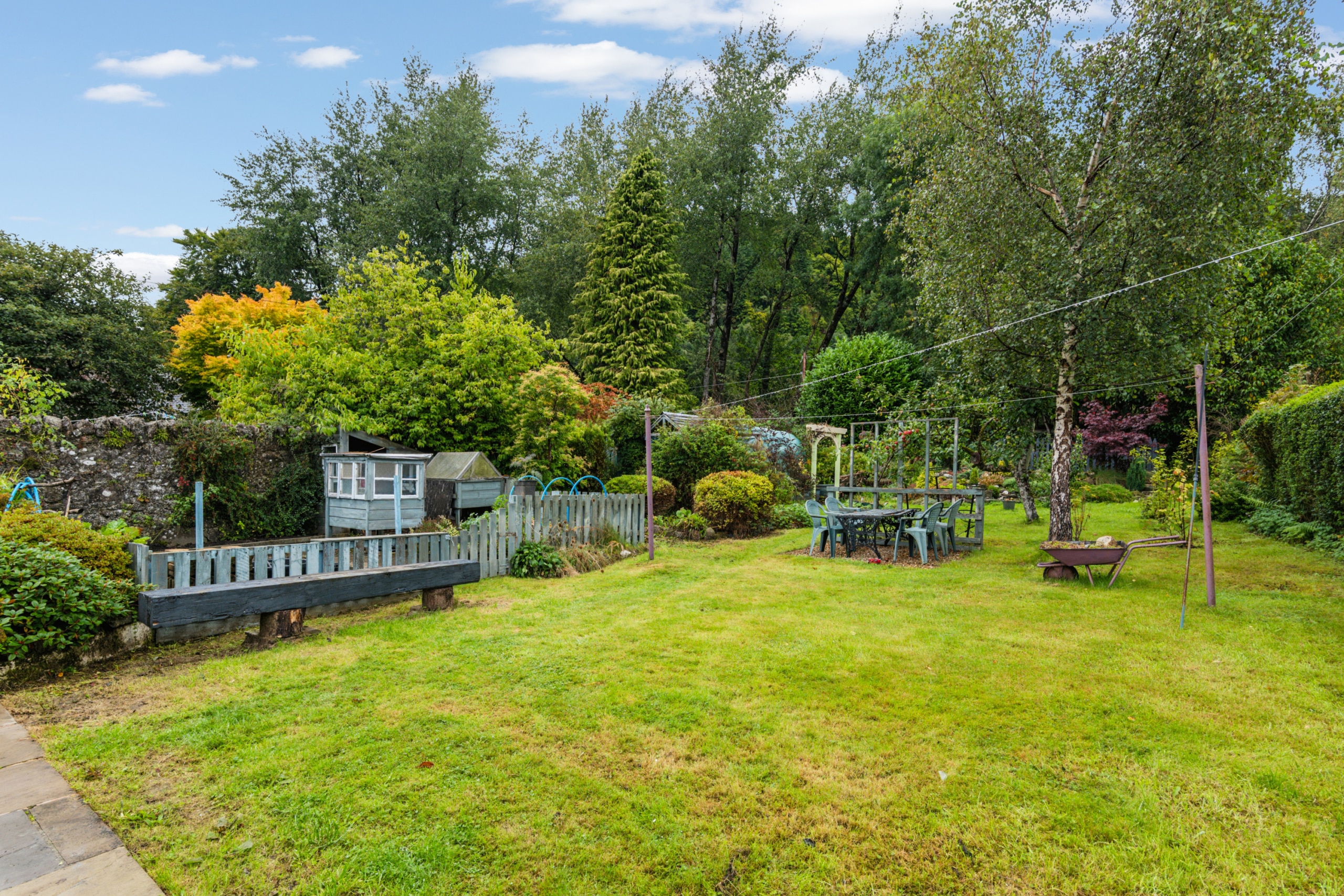 Externally, the property benefits from off-road parking and a beautifully landscaped garden, offering a private haven to enjoy the surrounding Trossachs scenery. The large garden has been cleverly zoned into with several planted areas including a rose garden, paved patios to enjoy all-day sunshine, one has a lovely pergola, an outdoor fireplace with wood burning stove.