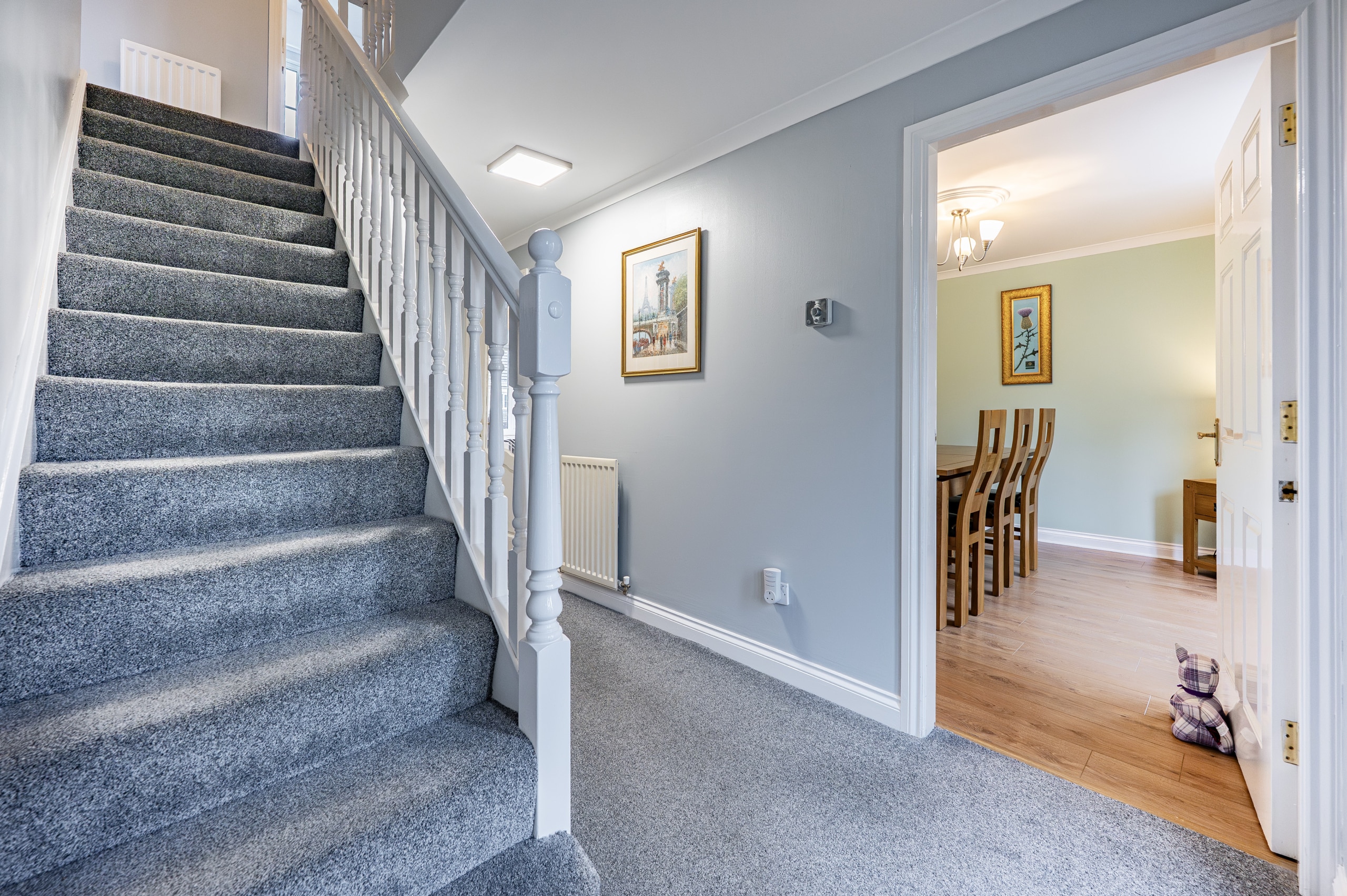 Set among similar high-value homes in the highly sought-after development known as 'The Hawthorns,' this beautifully enhanced detached home offers exceptional family accommodation spread across three impressive levels. Occupying a prime position on a generous, level corner plot, the home is one of only a handful in the development to feature a distinctive Fife stone gable end and traditional garden boundary wall.