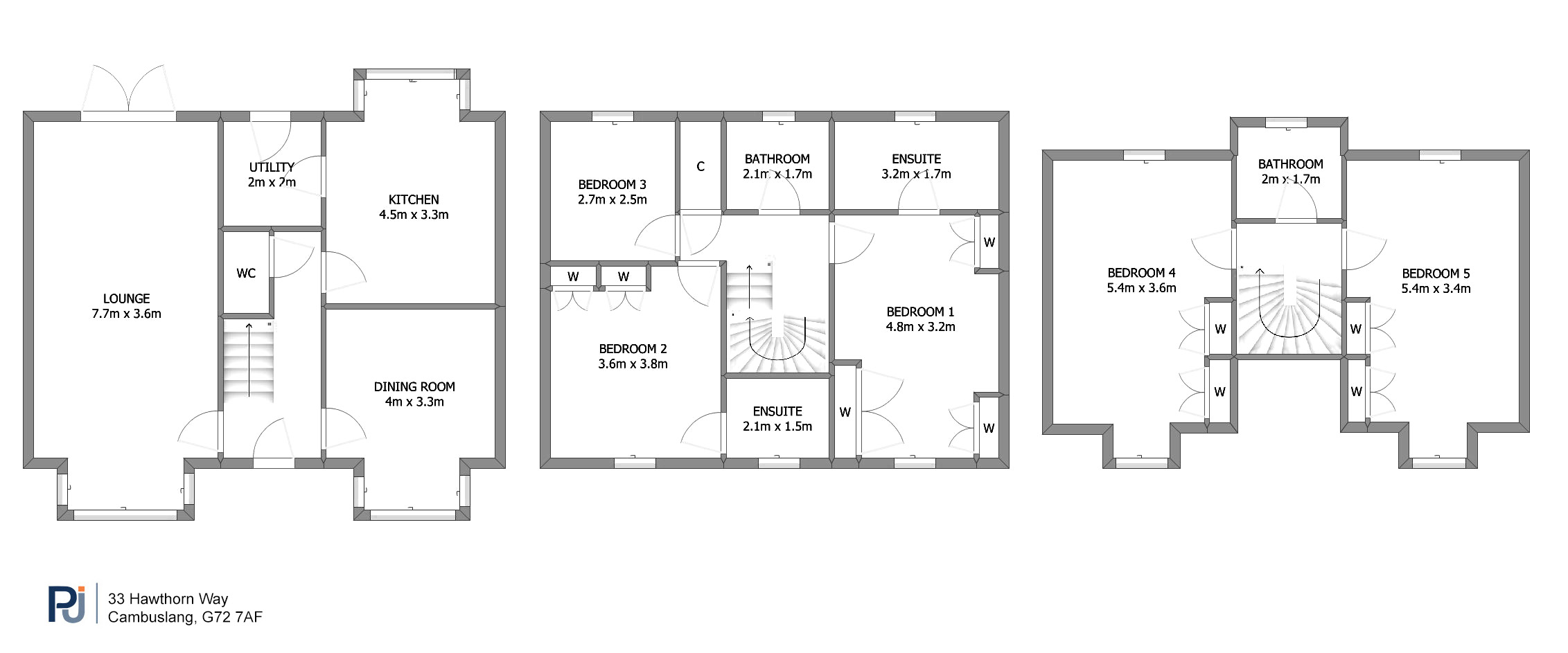 The first-floor hosts three generous bedrooms, two of which enjoy contemporary en-suite shower rooms, along with a well-appointed family bathroom. A further staircase leads to the top floor, where two substantial double bedrooms are complemented by a modern three-piece bathroom.