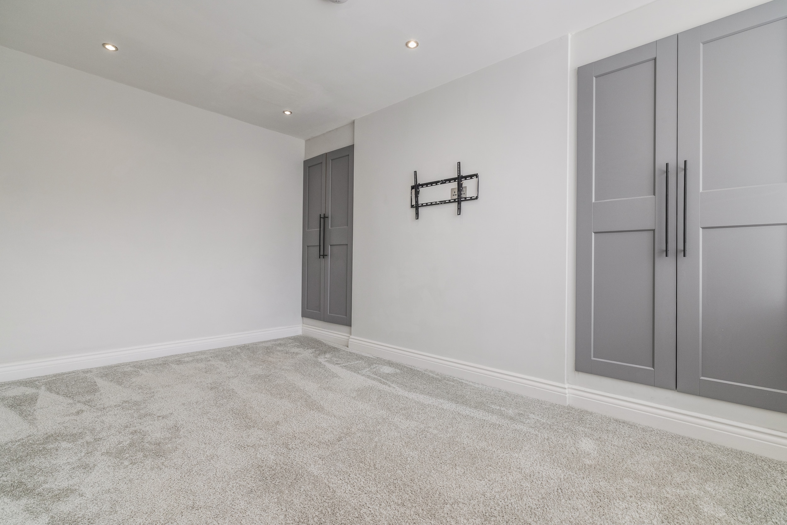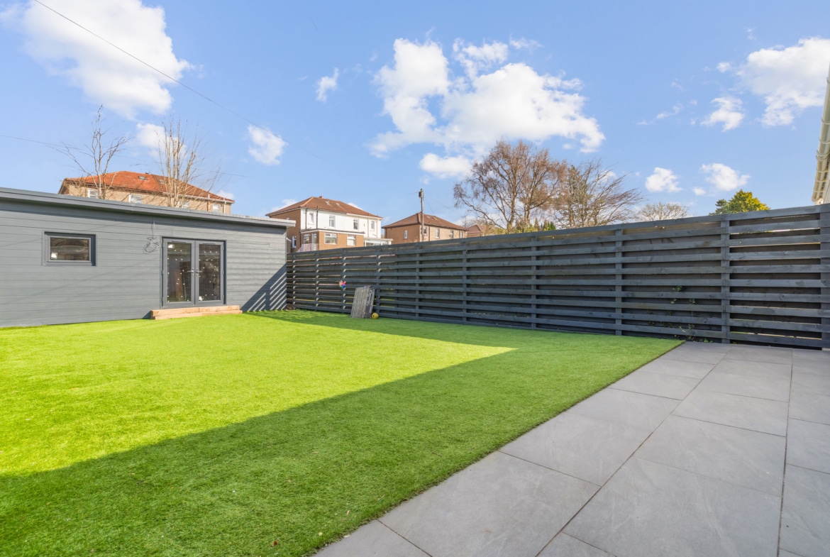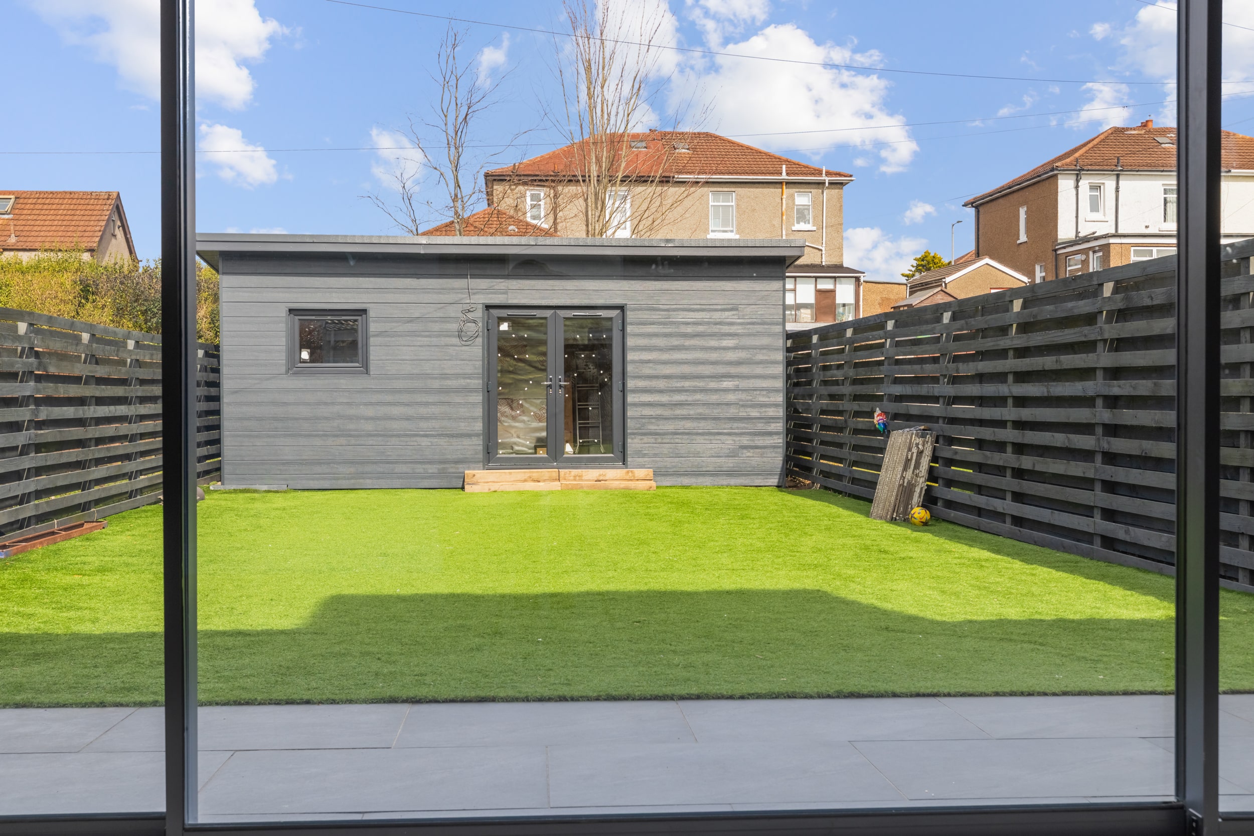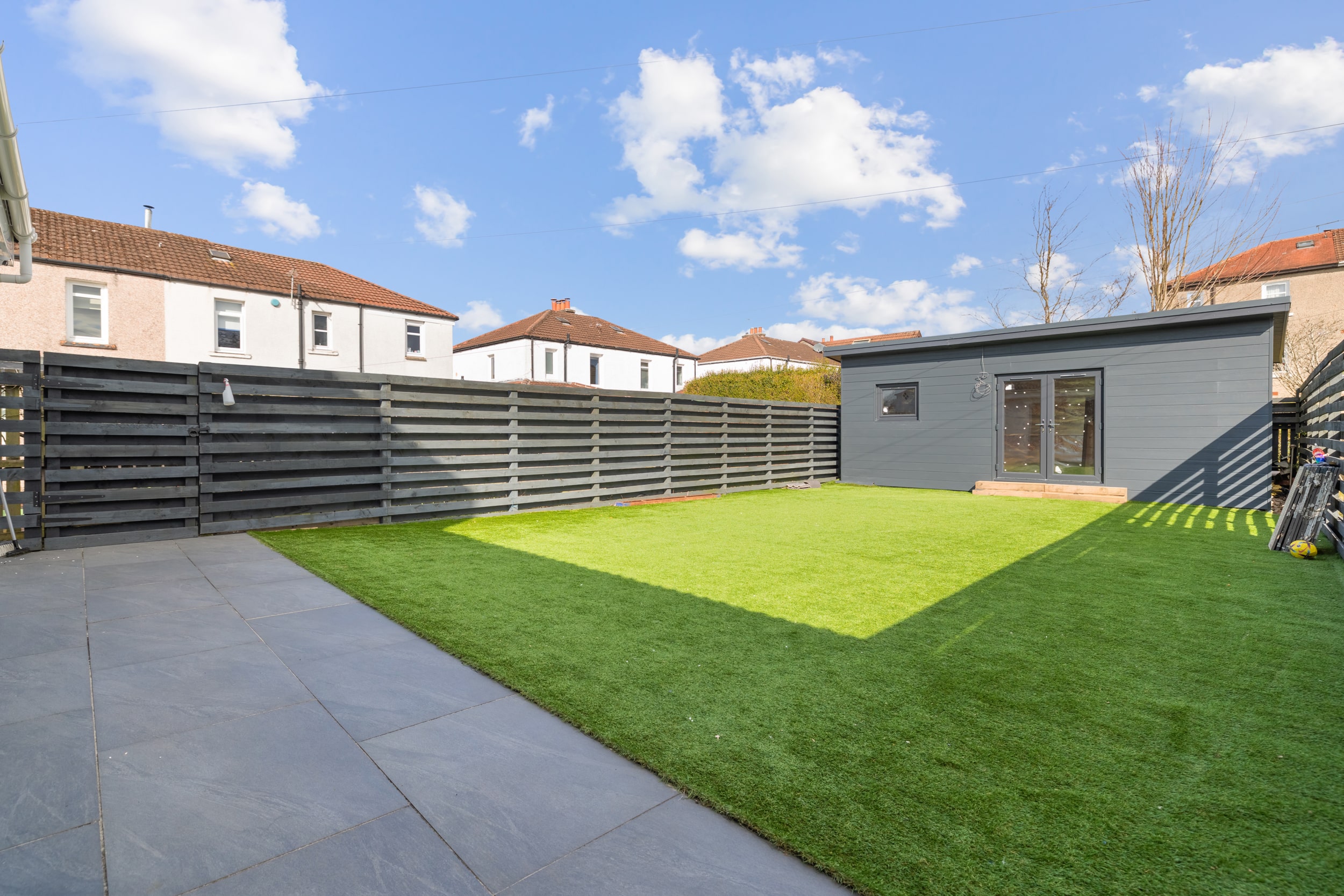 The gardens to the front of the house have been given over to parking in the form of a block driveway. The rear gardens are laid out with a patio extending from the rear of the house and the remainder laid in artificial turf creating a practical and appealing space. There is a large outbuilding at the back of the gardens ready to be finished as an office, gym or home bar.