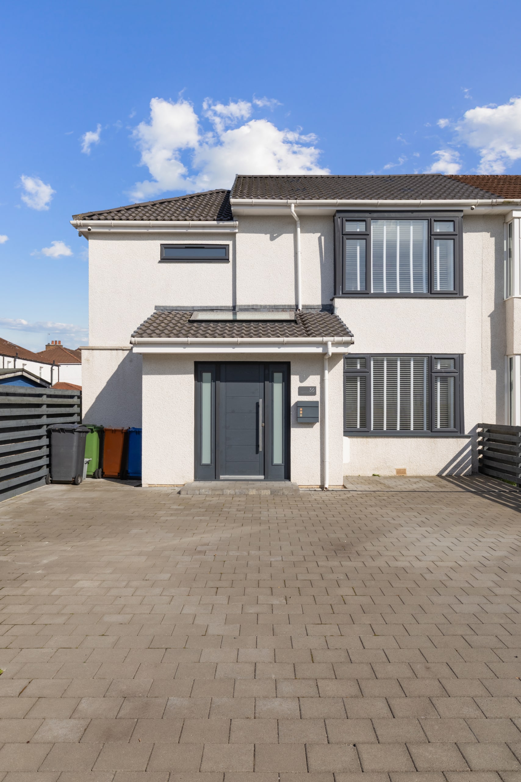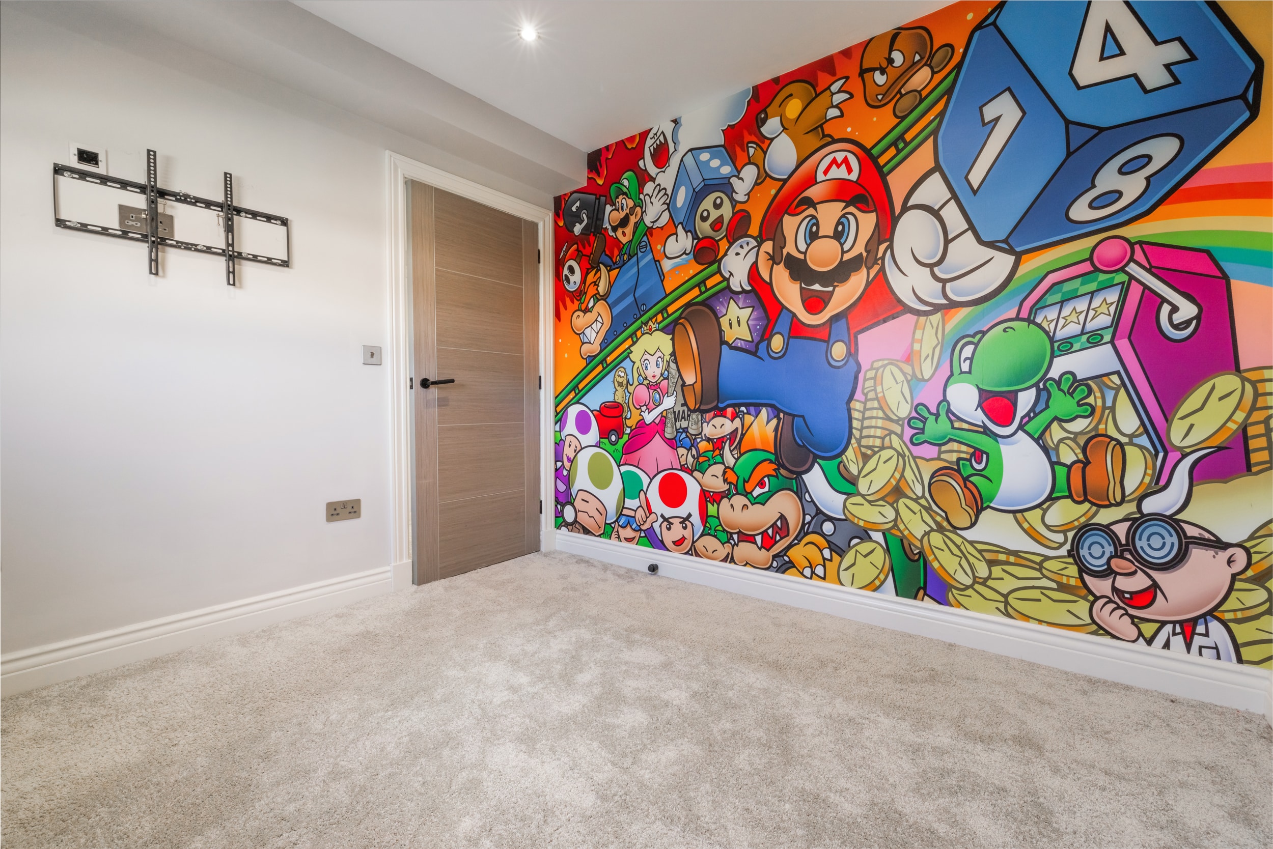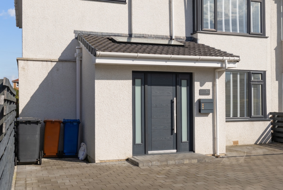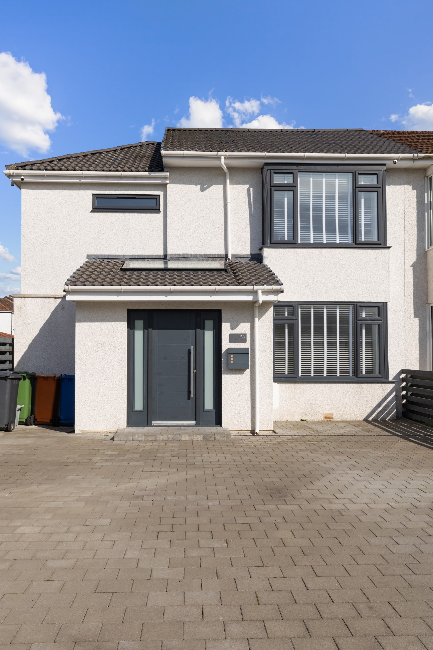 The gardens to the front of the house have been given over to parking in the form of a block driveway. The rear gardens are laid out with a patio extending from the rear of the house and the remainder laid in artificial turf creating a practical and appealing space. There is a large outbuilding at the back of the gardens ready to be finished as an office, gym or home bar.
