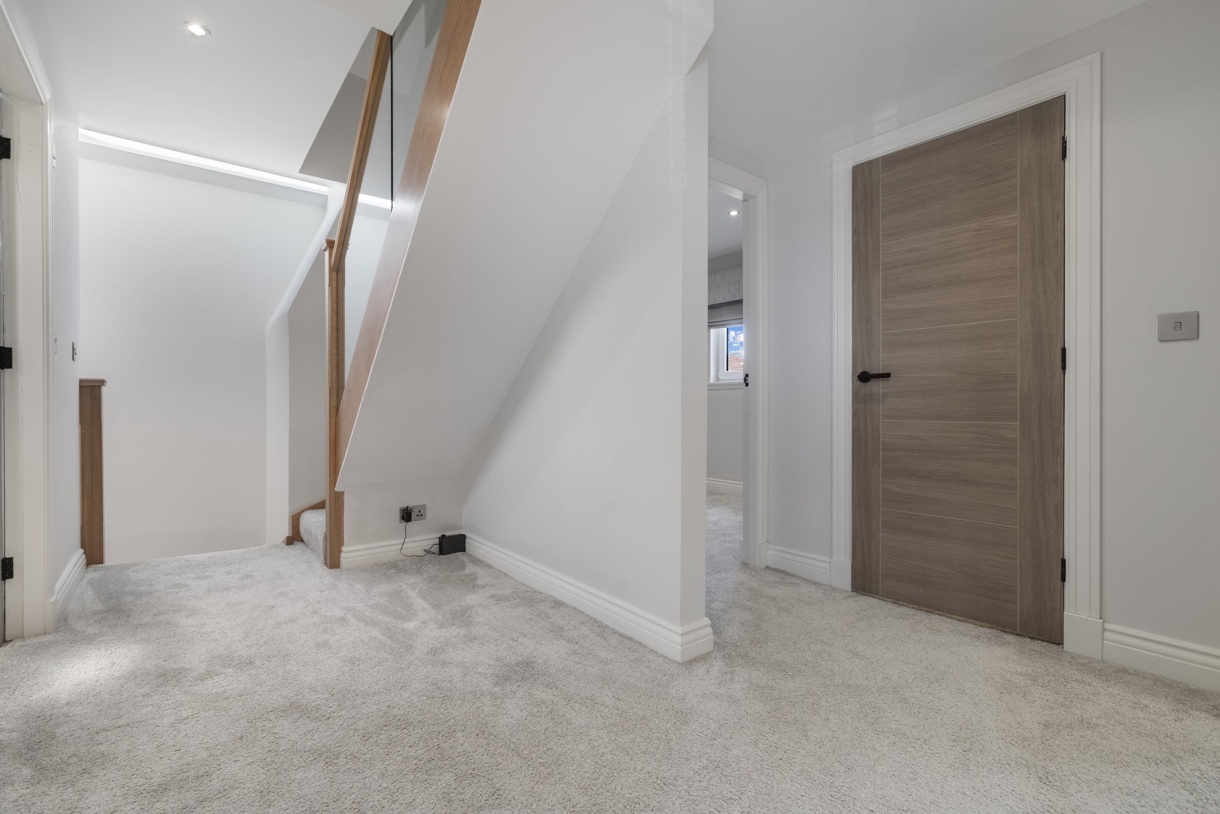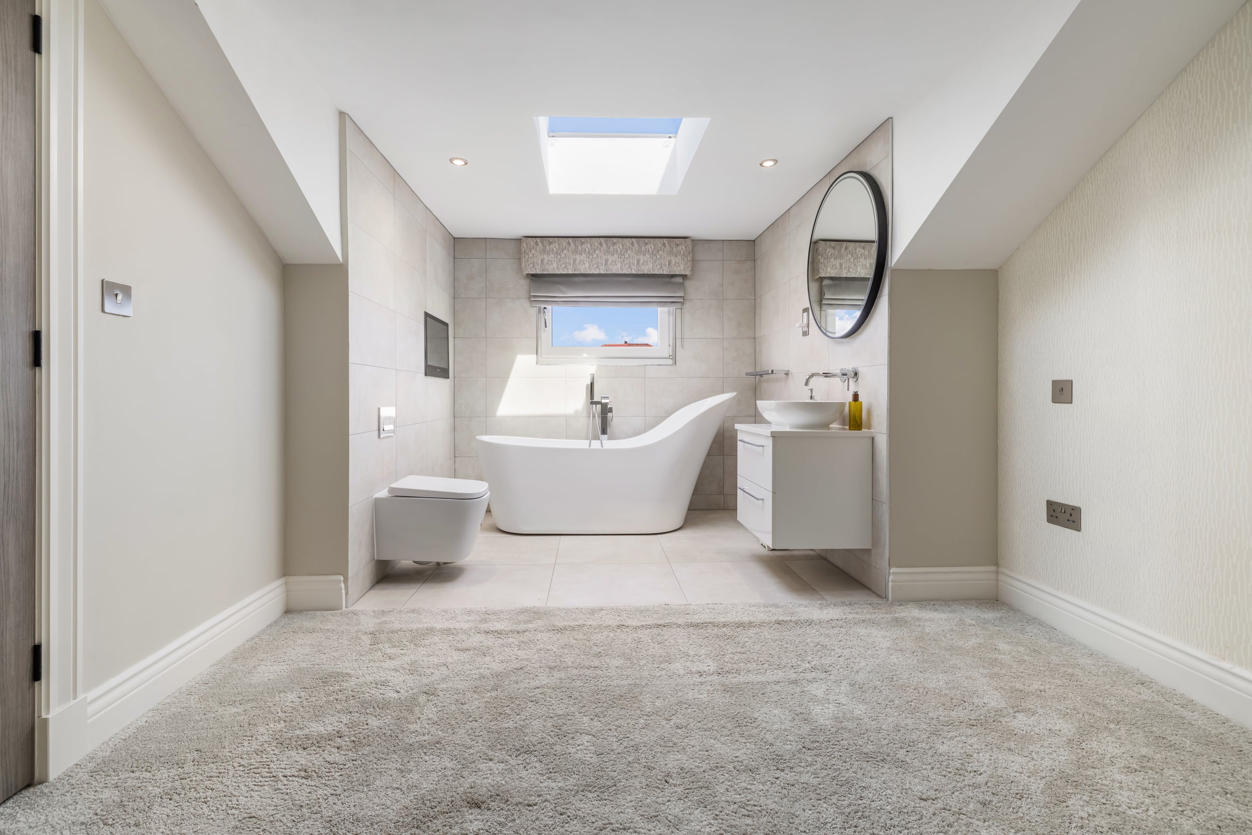 The top floor is reserved for the suitably impressive principal suite. With a fully open plan configuration this space incorporates a generous bedroom and en-suite with free standing bath.