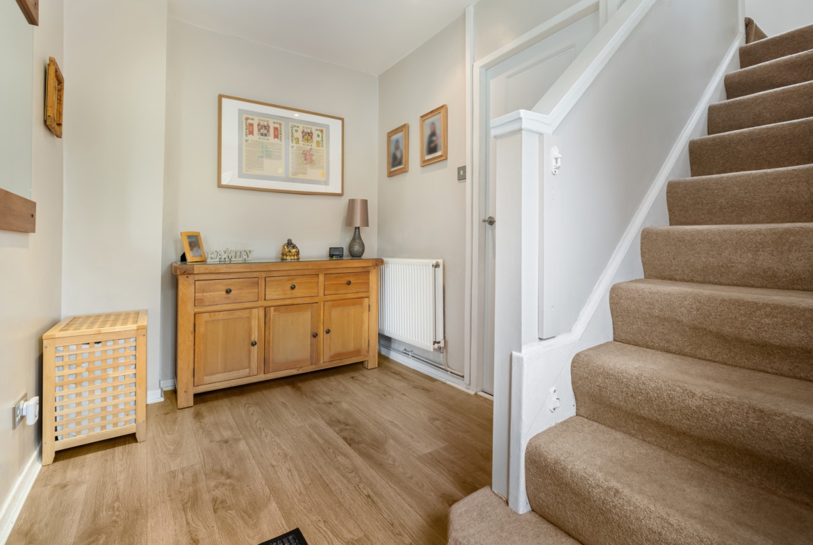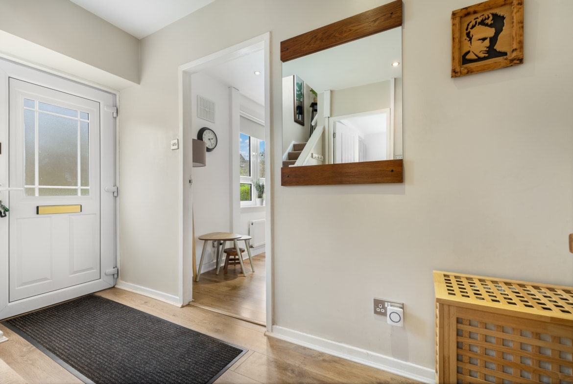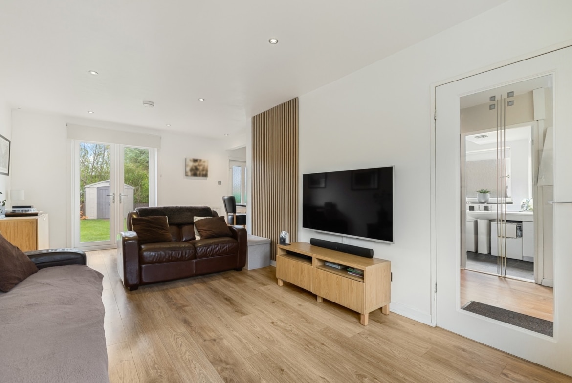 The front door into an entrance hallway with stairs off to the upper landing. The iving accommodation is one large open plan space, the lounge area to the front has fresh modern décor and is a lovely bright space with an open outlook. There is plenty of space for a dining suite at the back of the room, where there are French doors out to the rear gardens. The kitchen is open plan to the dining area with a breakfast bar and extensive range if stylish fitted units. A fully-tiled bathroom with over bath shower completes the ground floor. The first floor offers three generous double bedrooms, two of which benefit from in-built wardrobes.