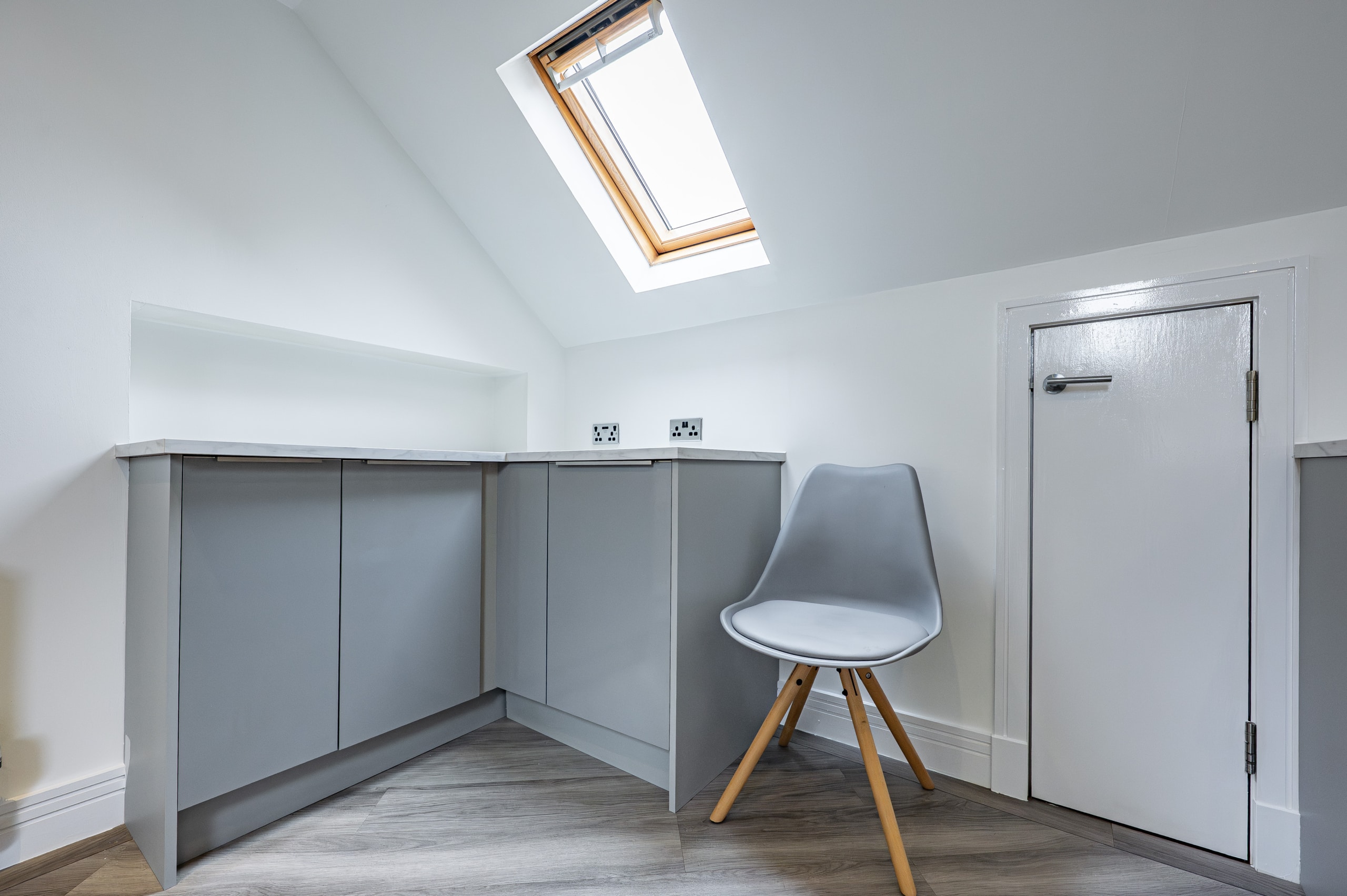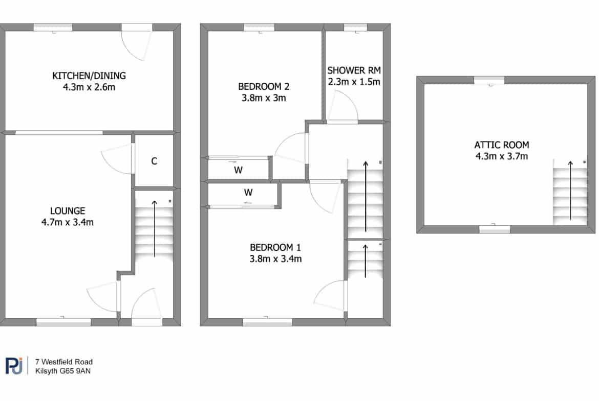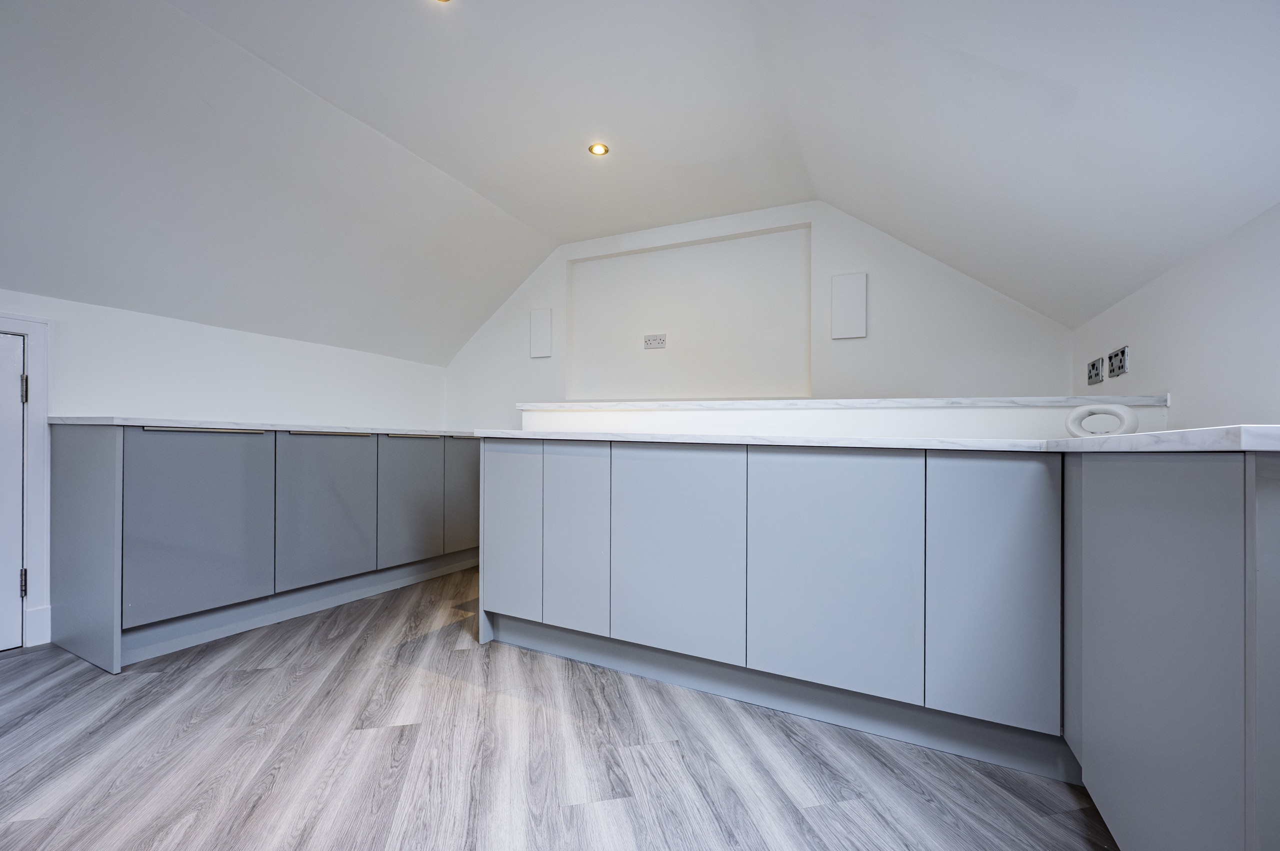 The property on offer comprises entrance hallway with stairway to upper level. The front facing lounge is a generously proportioned room with fresh neutral décor which continues throughout the house. The lounge also benefits from a large window which creates a naturally bright environment. The kitchen is to the rear of the property and is again of excellent proportions. The kitchen is modern in design and fitted with a range of base and wall mounted units with contrasting work surfaces and integrated appliances. There is an open plan dining area within the kitchen. On the upper level there are two double bedrooms. There is also a contemporary fully tiled family shower room on this level. Fixed stairs lead to a large floored loft space which is presented to the same high standard as the rest of the house.