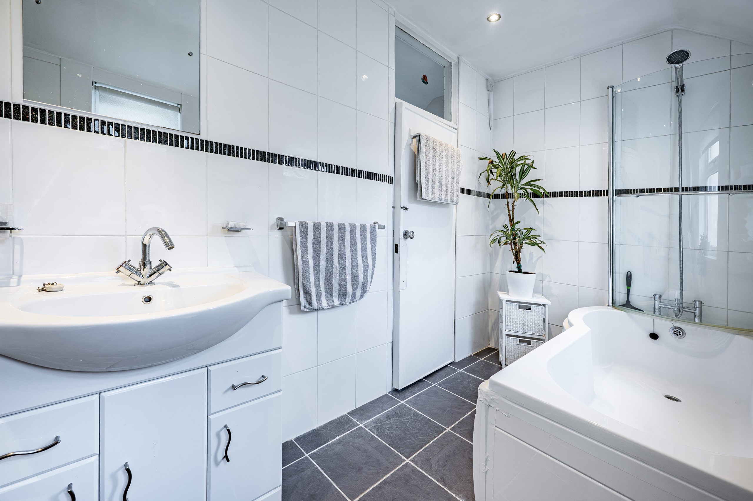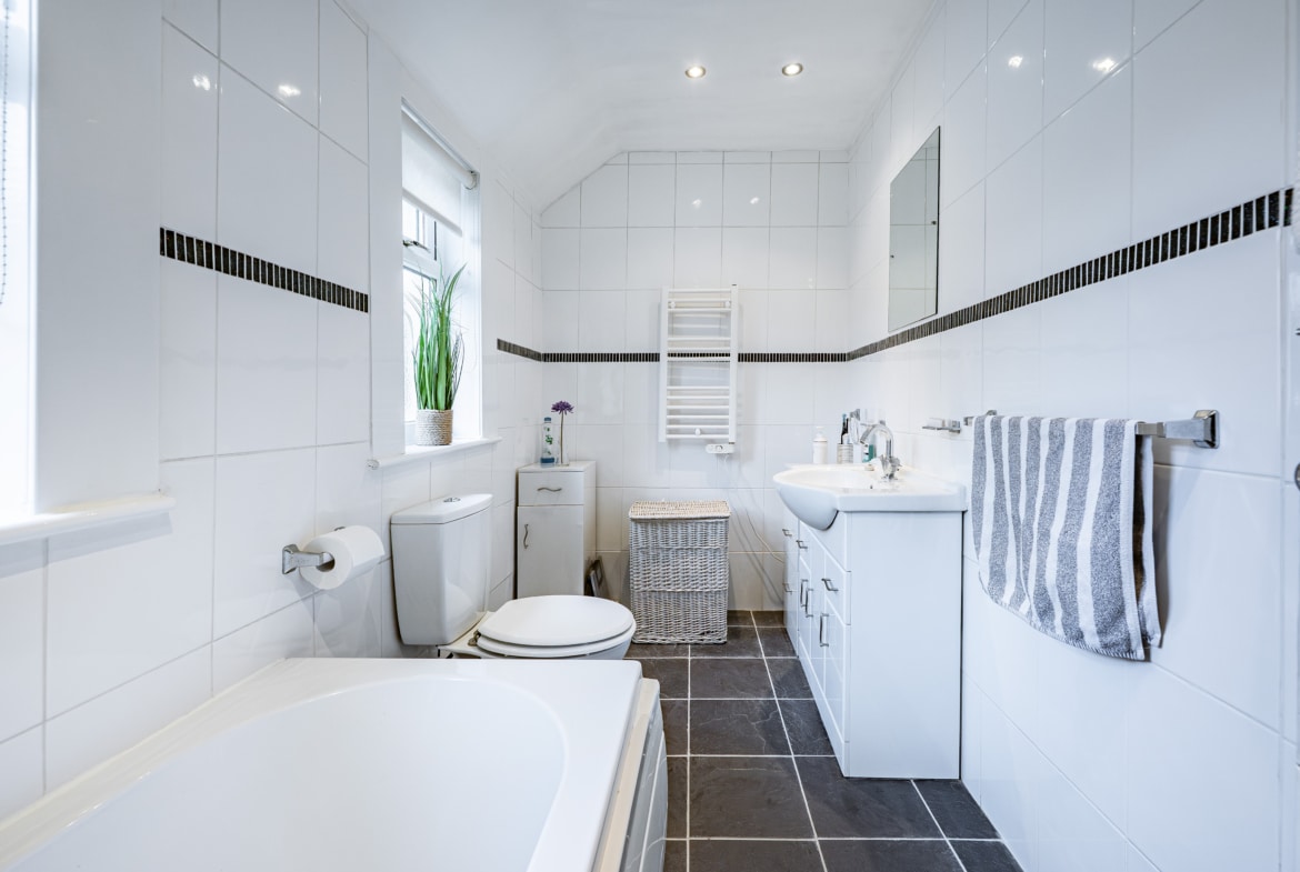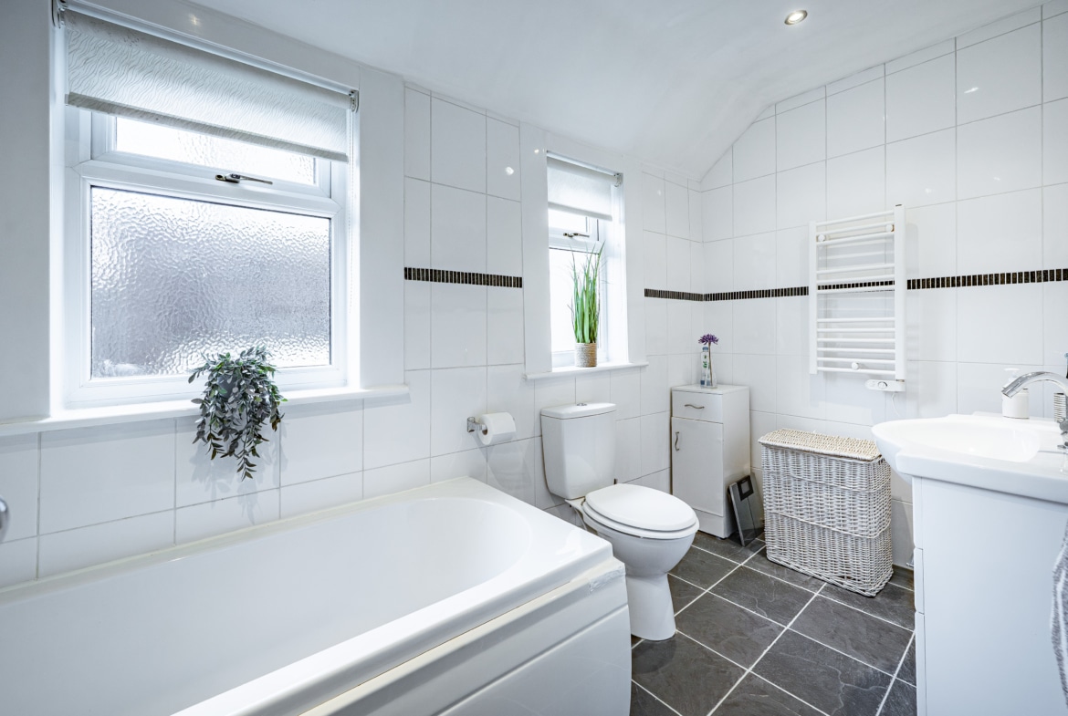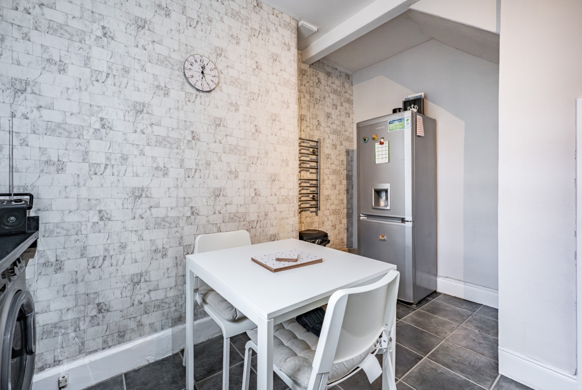 The accommodation begins with an entrance vestibule leading into a welcoming reception hallway, featuring a centrally positioned staircase to the upper level and a door providing direct access to the rear garden. The bright, well-proportioned front-facing lounge is enhanced by detailed cornicing, a decorative ceiling rose and an original fireplace, adding character and charm. To the rear, the kitchen offers ample space for a table and chairs and includes useful understairs storage. It is fitted with a range of base and wall-mounted units, integrated electric oven and hob, and space for freestanding appliances. A large, well-appointed modern three-piece bathroom completes the ground floor accommodation.