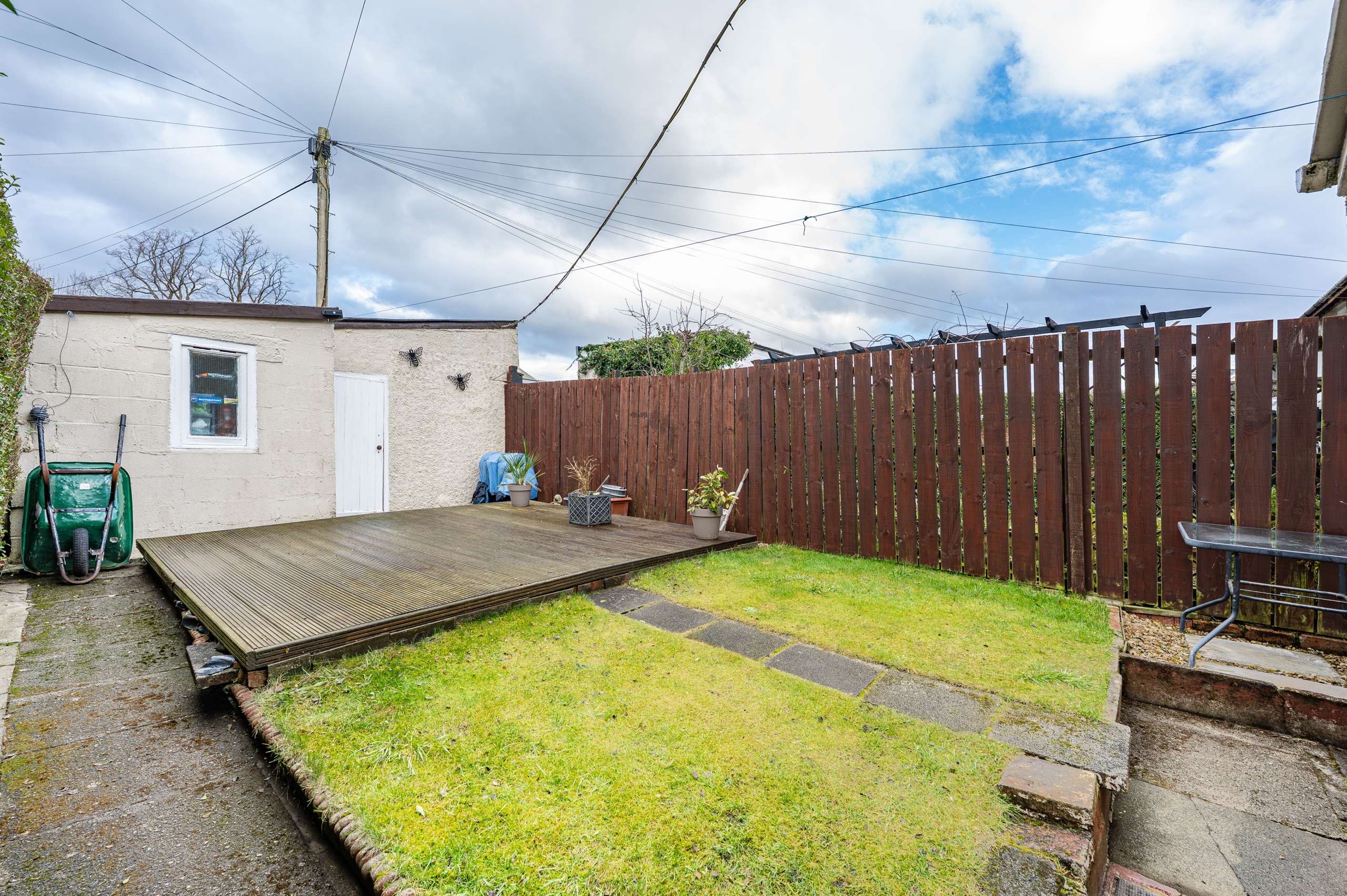 Externally, the front garden is designed for low maintenance, featuring stone chippings and a privet hedge which continues along the side of the property and encloses the rear garden, complemented by fencing to the adjacent boundary. The rear garden is particularly generous, offering two lawned areas and a large, decked section, ideal for outdoor dining and entertaining. The sizeable garage provides excellent additional storage and practicality.