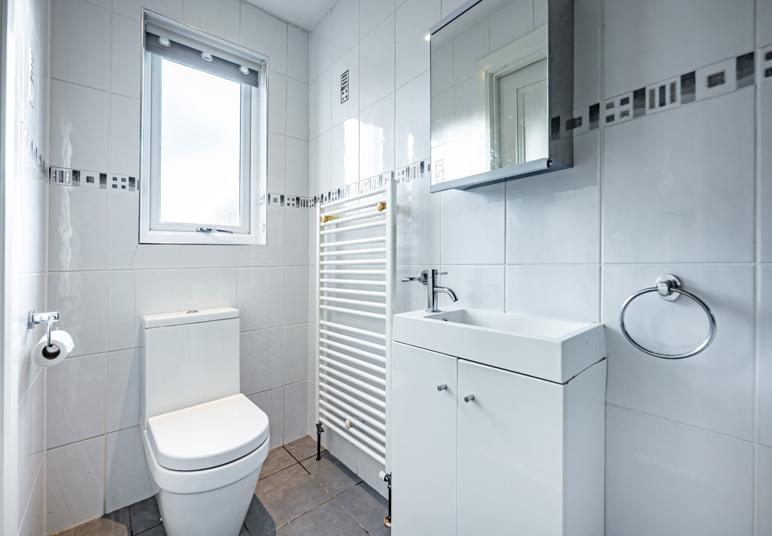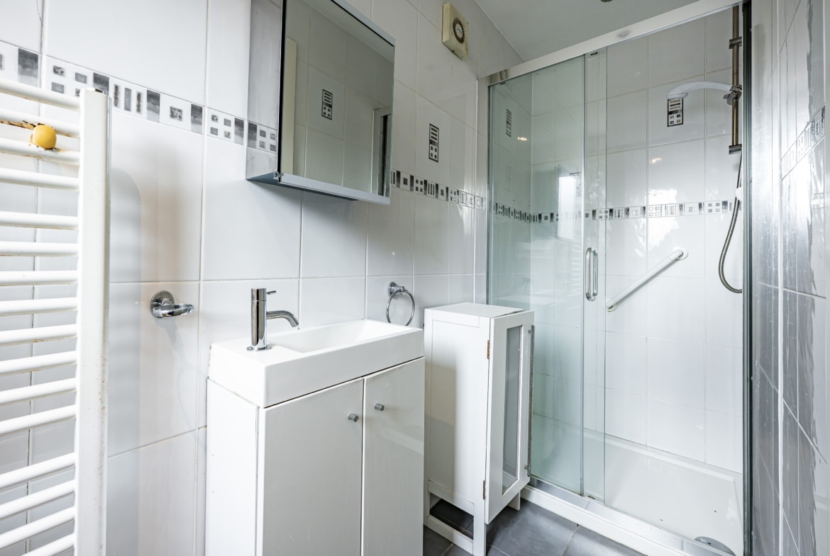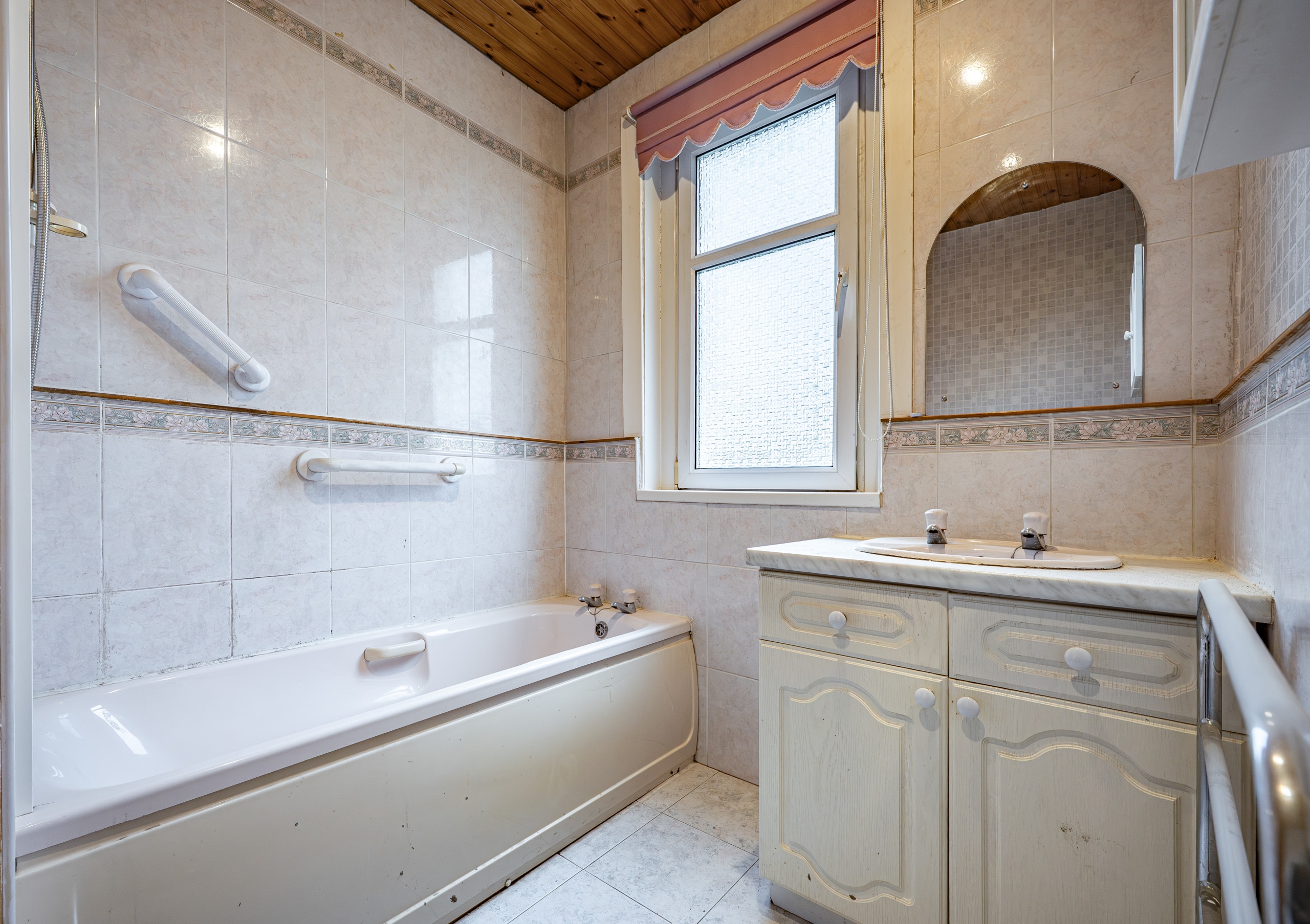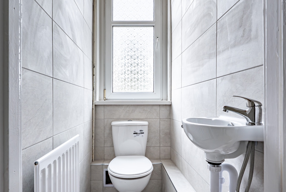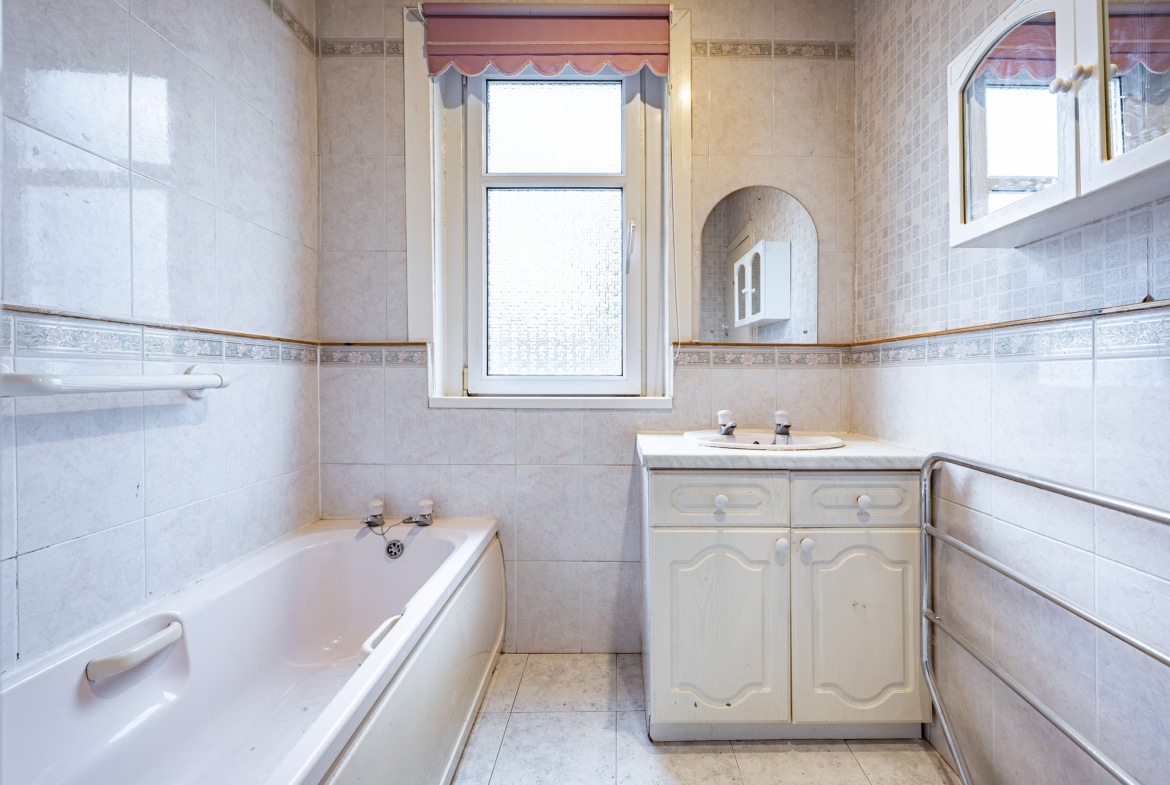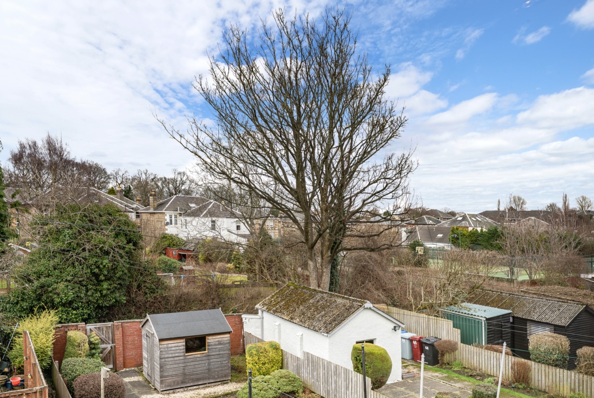 The first floor comprises three generous double bedrooms, with the principal bedroom benefiting from a broad bay window to the front and the second bedroom enjoying pleasant views across the neighbouring lawns of Burnside Tennis Club. A separate toilet compartment and a family bathroom serve this level.