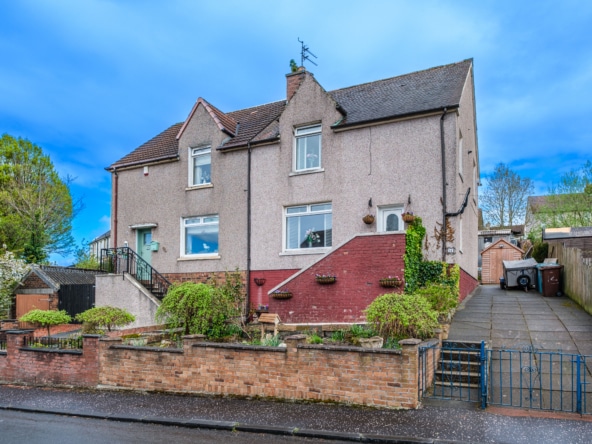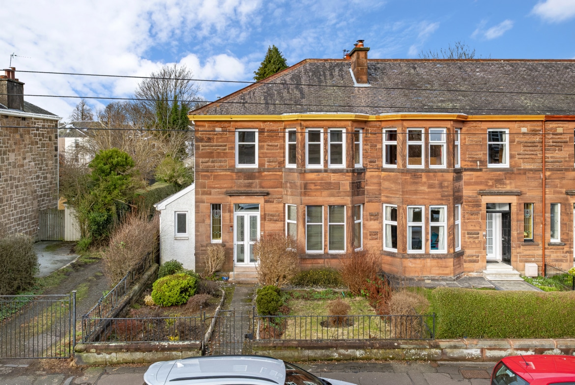 **CLOSING DATE FOR OFFERS – TUESDAY 24TH FEBRUARY @ NOON ** A rare opportunity to acquire this substantial stone-fronted end-terraced villa, set within one of Burnside’s most sought-after addresses and occupying a generous garden plot. The property is offered to the market for the first time in over four decades and represents a superb family home, combining traditional character with versatile accommodation.
