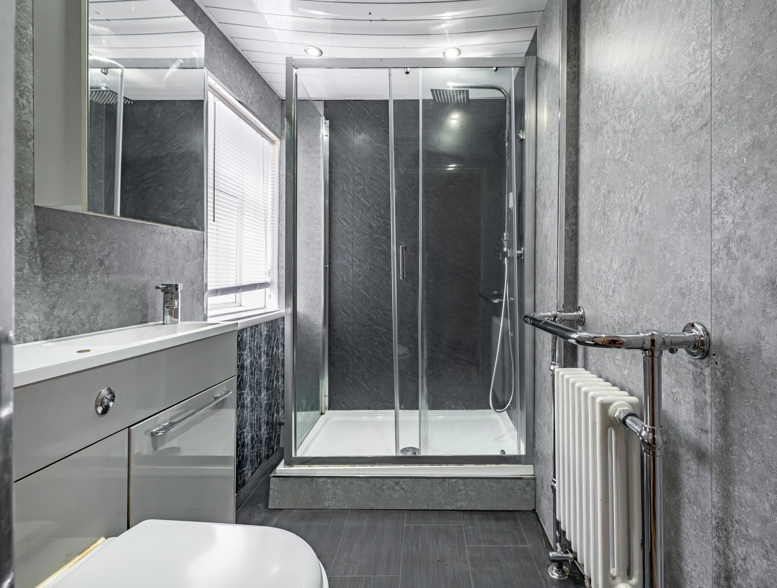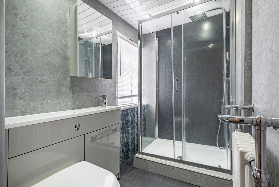 To the front of the property, there are two well-proportioned double bedrooms, including an impressive principal bedroom featuring a broad three-section bay window along with a convenient storage cupboard. The accommodation is further enhanced by a stylish, modern re-fitted shower room.