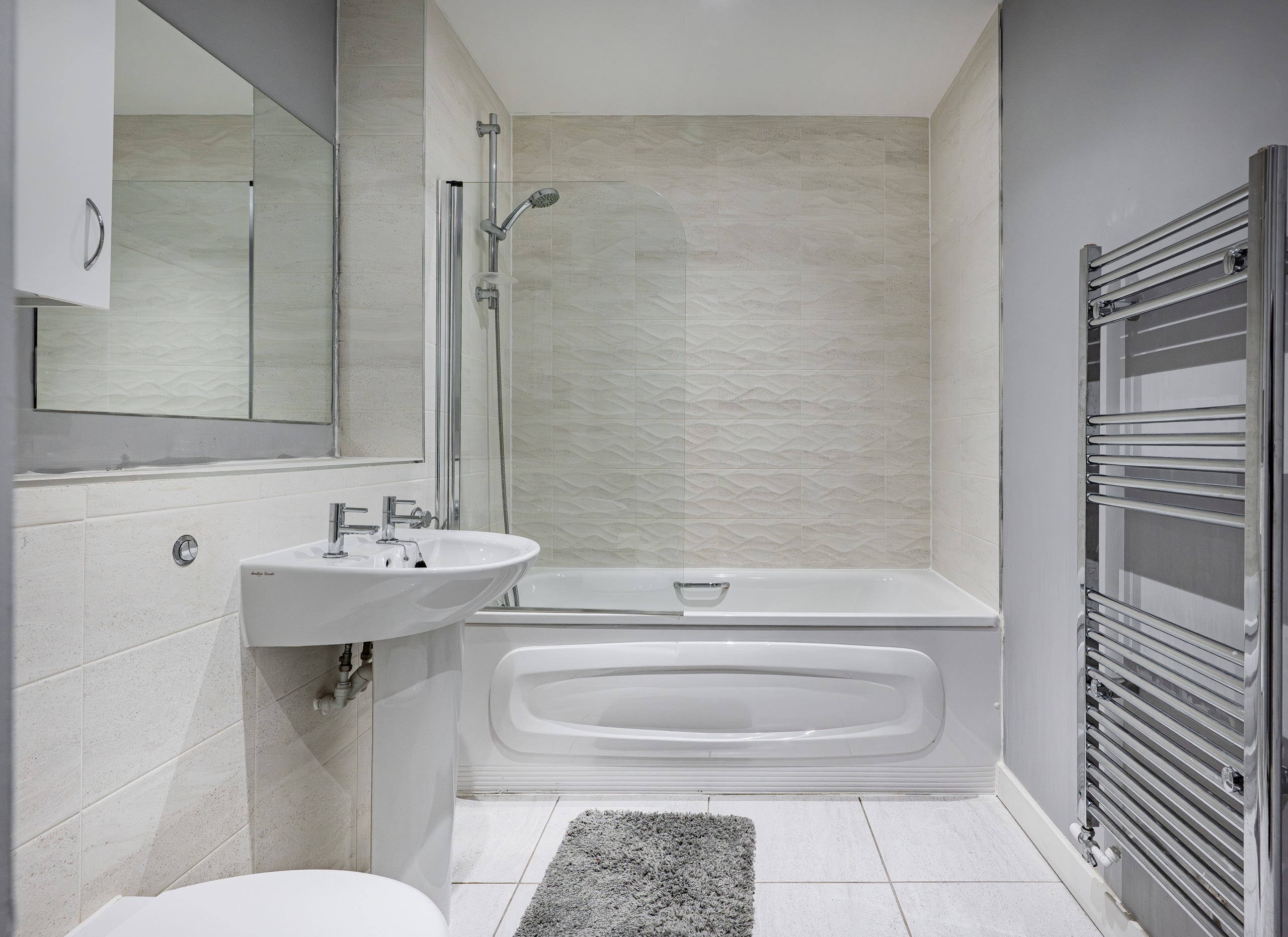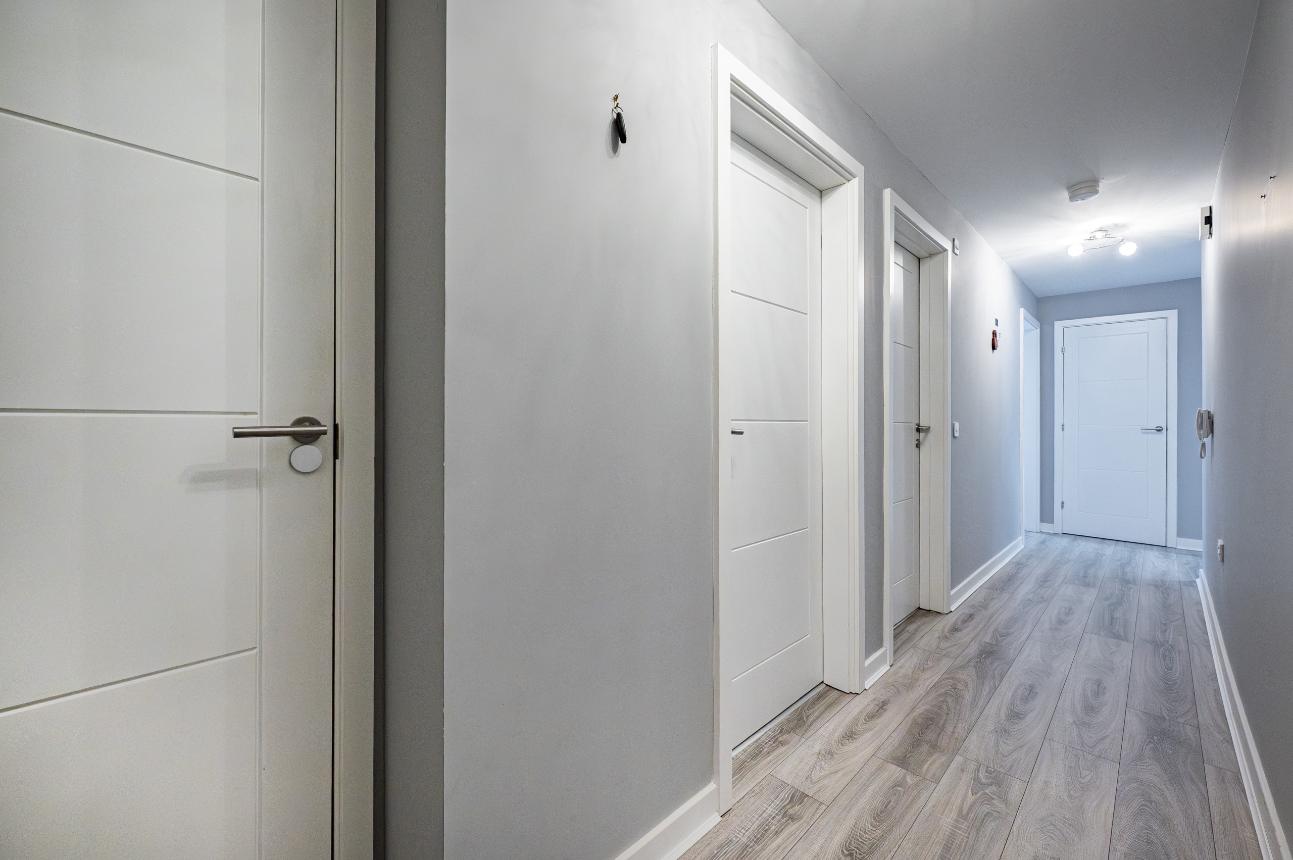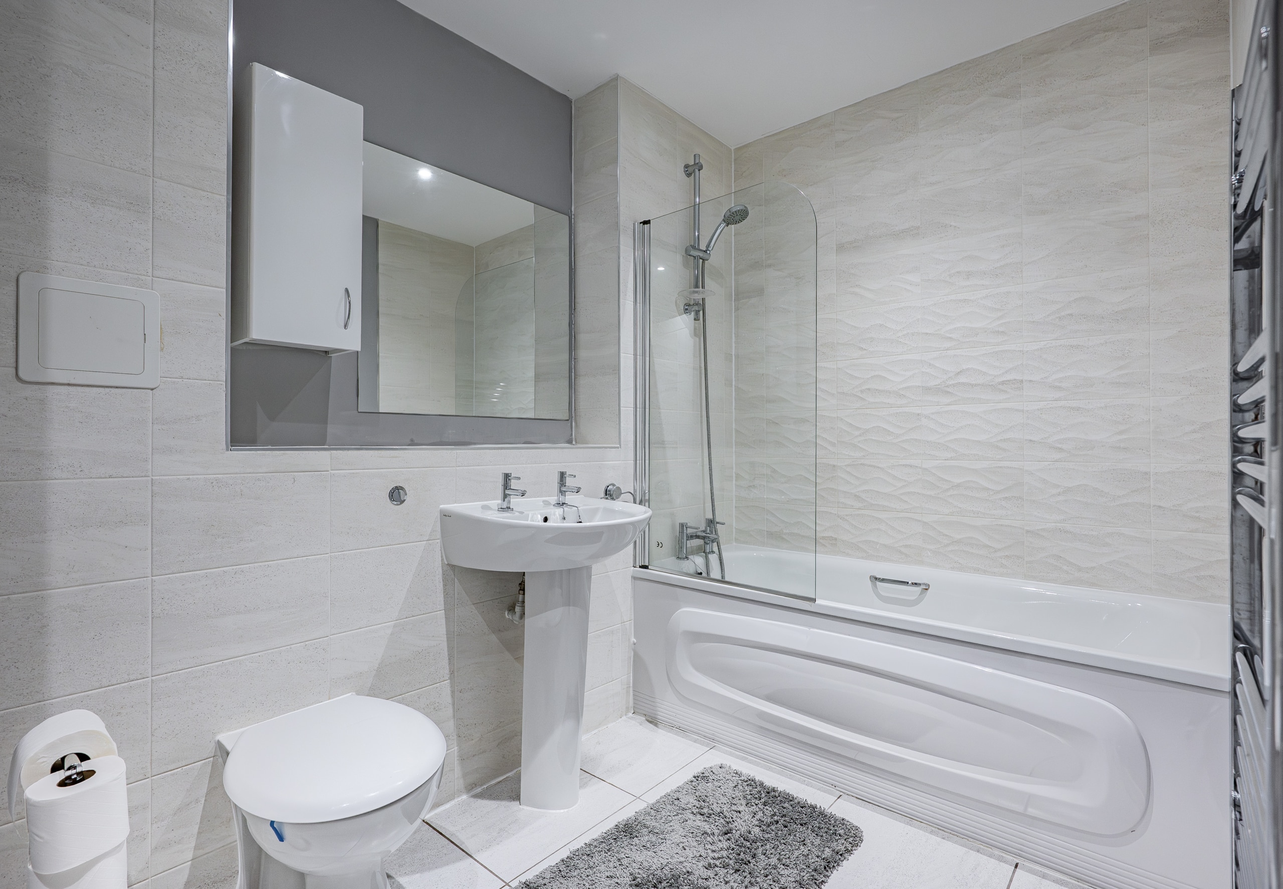 The door to the flat opens to reveal a welcoming reception hallway with access off to all apartments. The hallway has a large storage cupboard which benefits from plumbing for a washing machine.