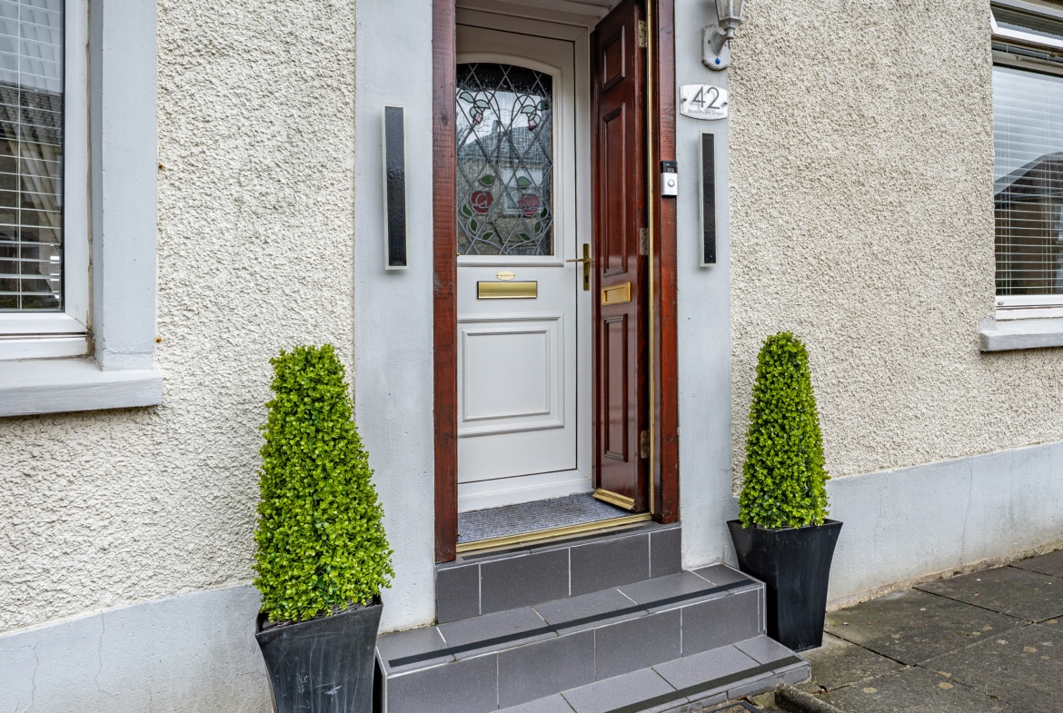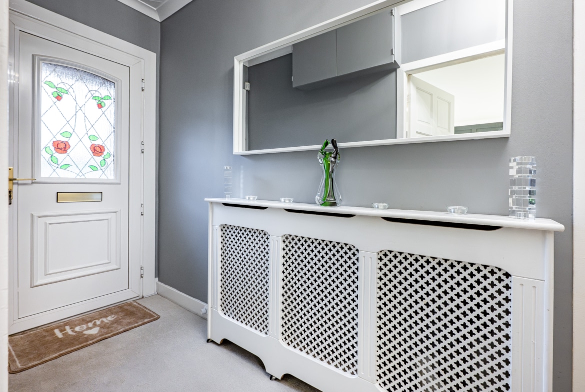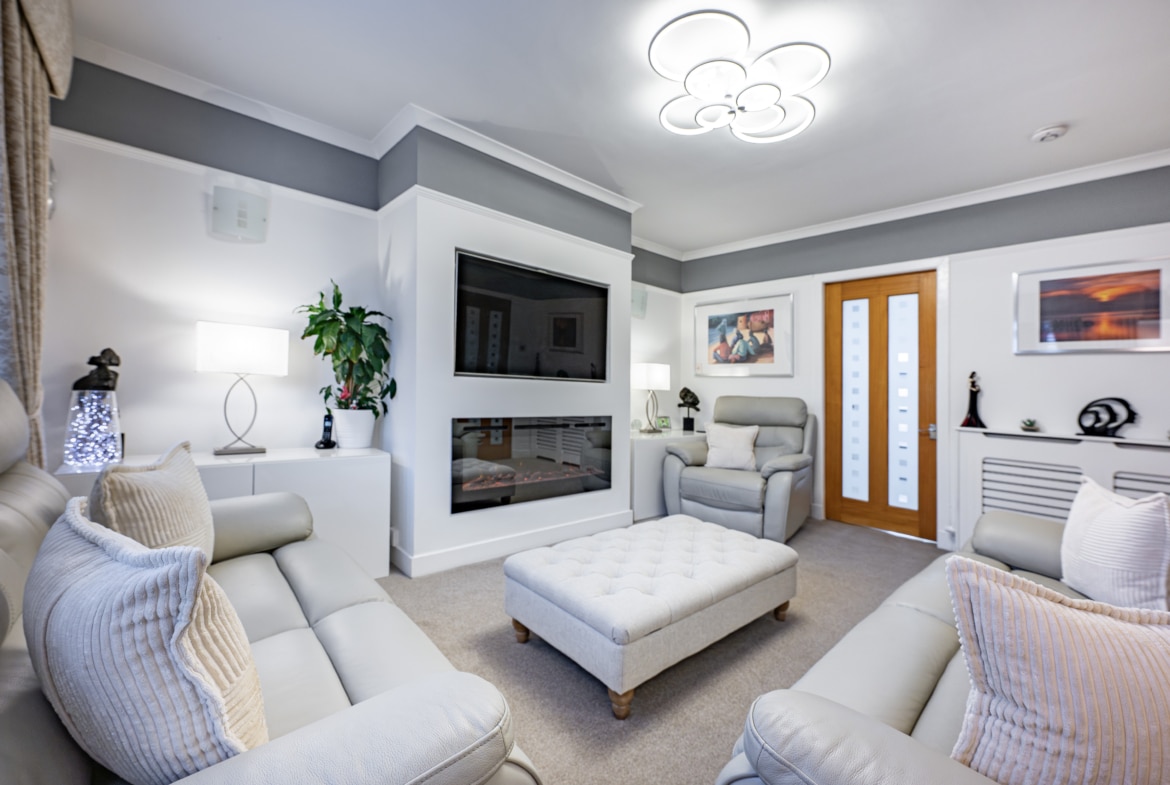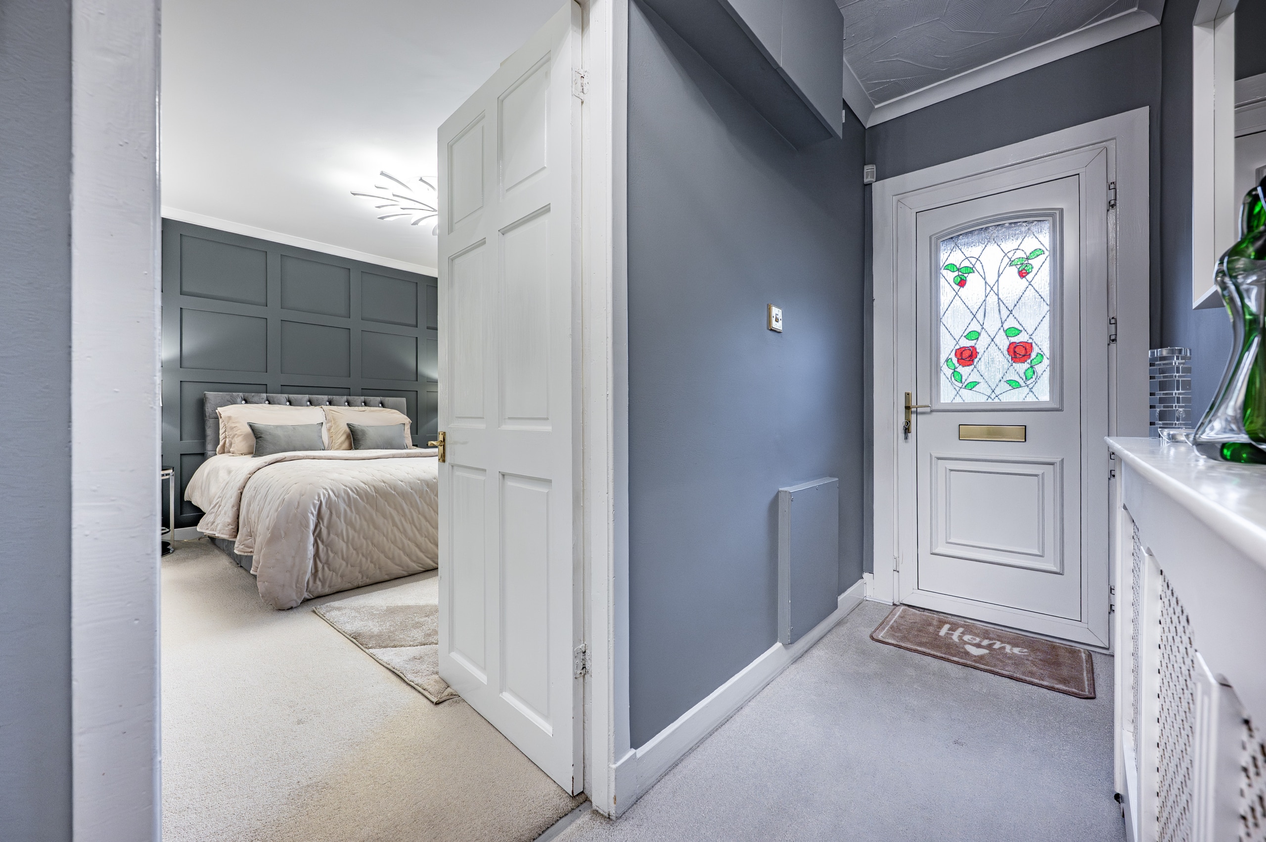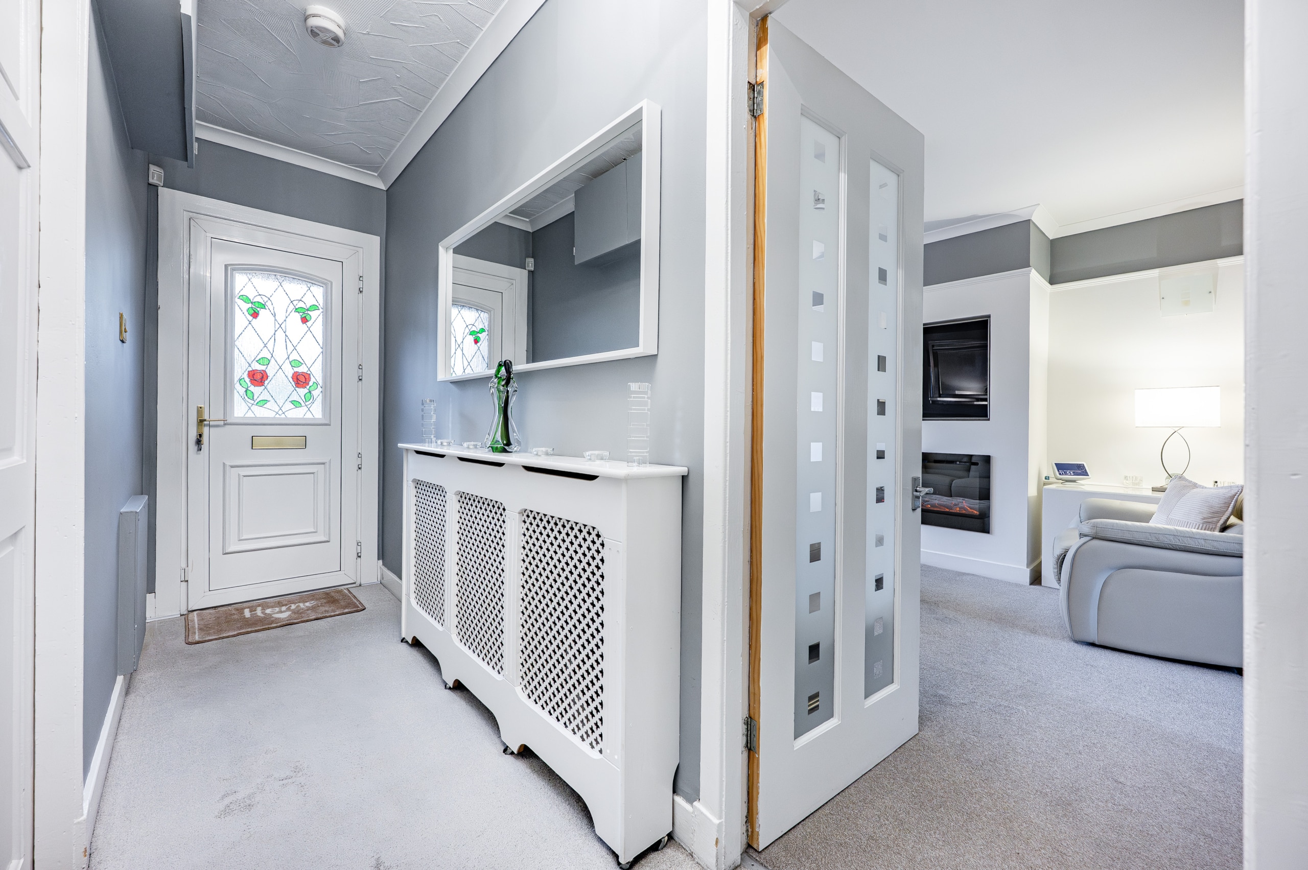 The front door opens into a broad hallway with excellent provision for storage. The lounge is a large bright and welcoming room with a broad bay window, focal point fireplace and fresh modern decor. The kitchen is accessed from the back of the lounge and is well-equipped with a wide range of fitted units. A door from the kitchen leads out to the rear gardens. There are two stylishly presented double bedrooms, both bedrooms benefit from fitted wardrobes. A contemporary, fully-tiled bathroom with over bath shower completes the accommodation on offer.