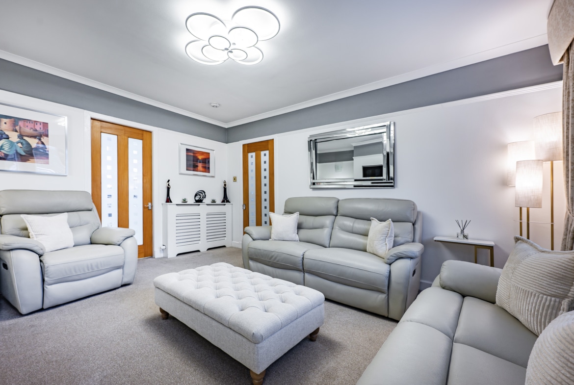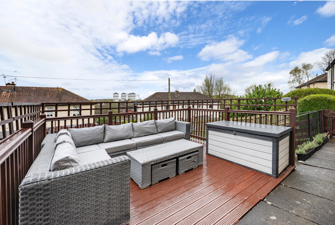 There are good sized gardens to the front and rear of the property. The grounds to the front offer a driveway for off street parking. The rear gardens have a deck for outdoor seating with the remainder laid to lawn.