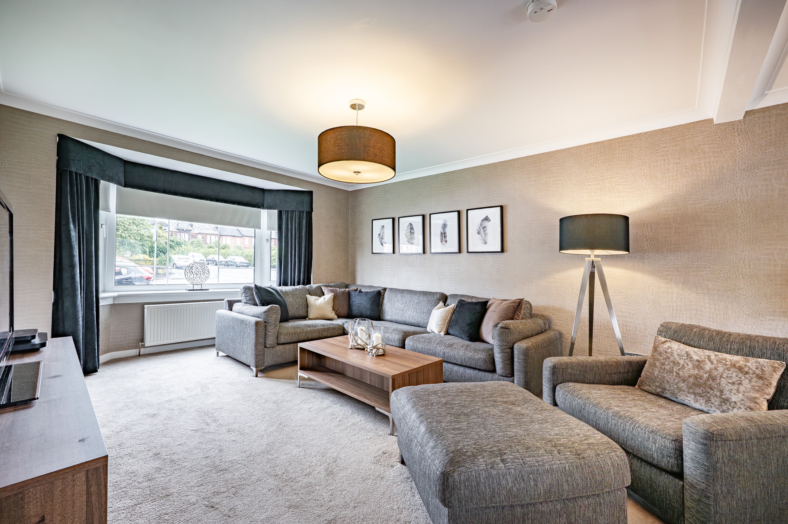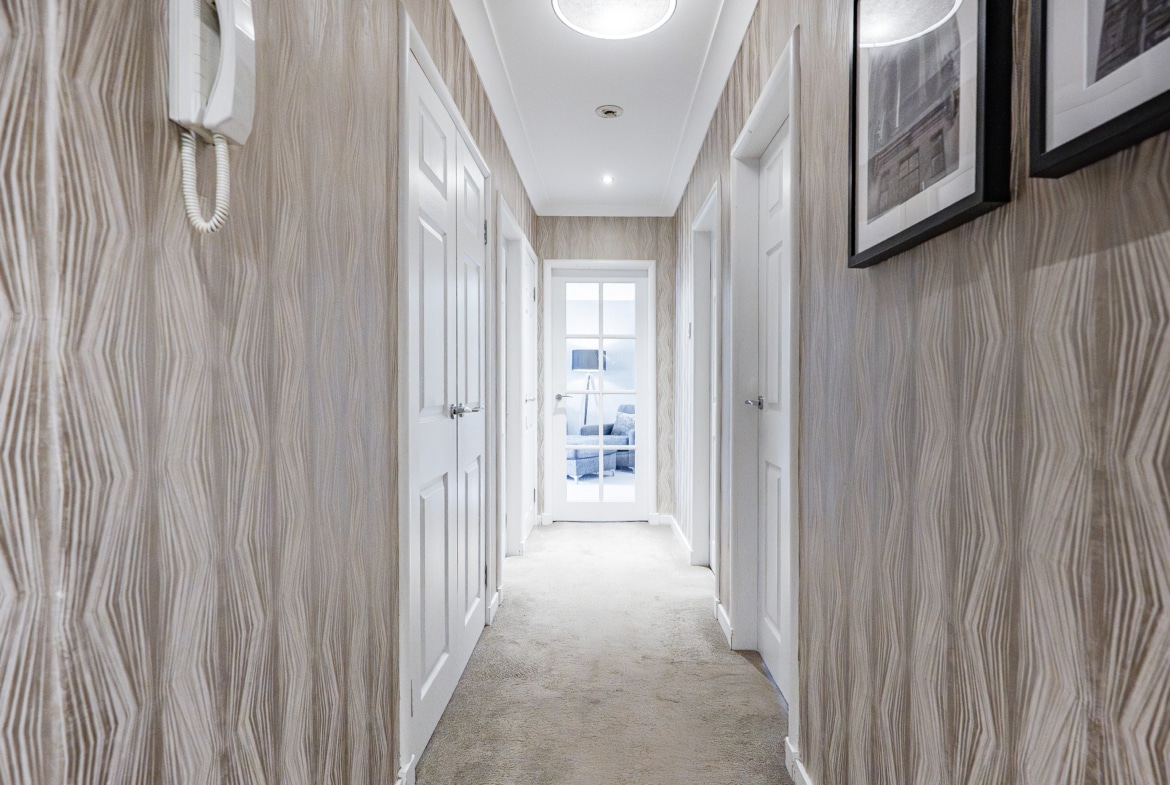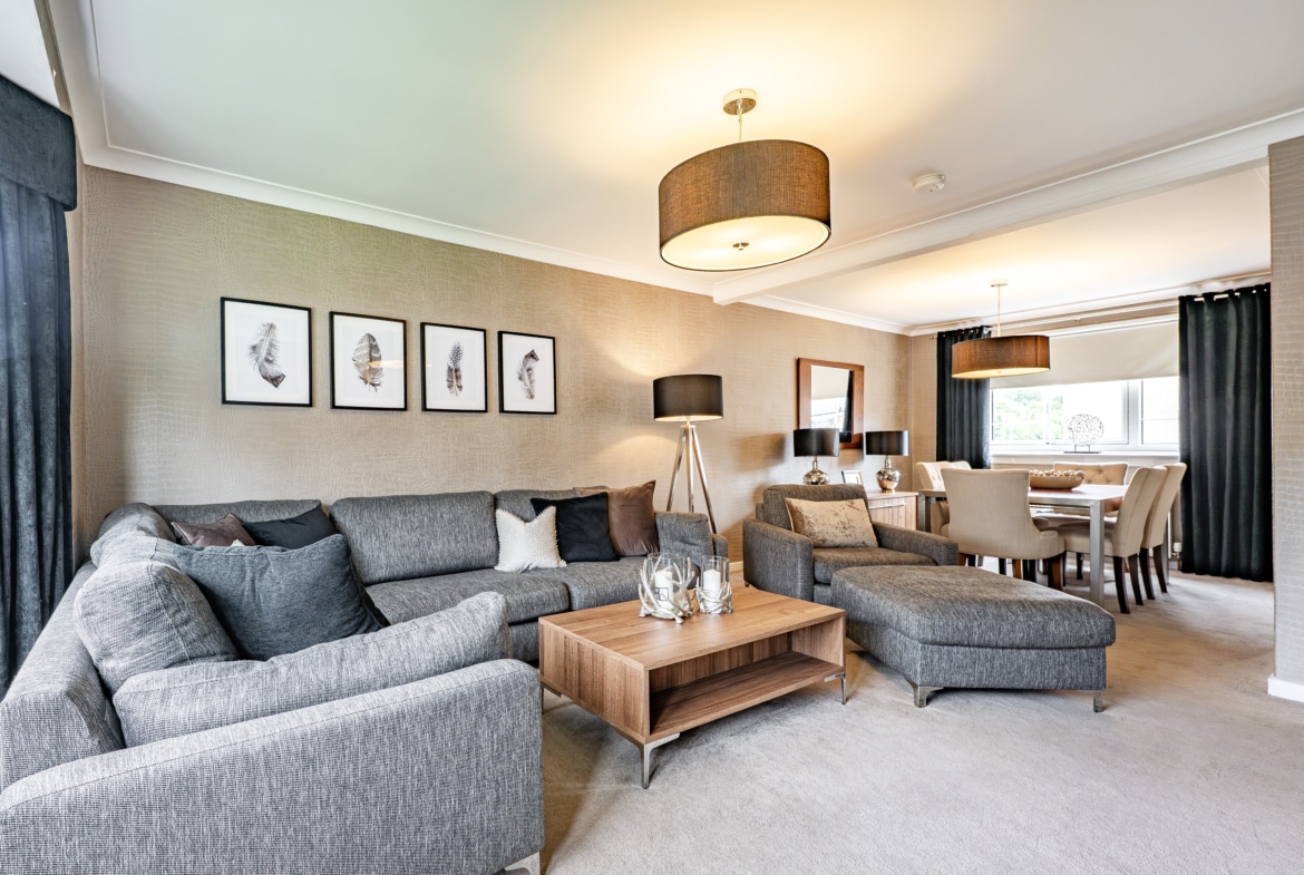 Boasting a high calibre of finish, the stylish interior extends to shared entrance with security-controlled system, immediately impressive and welcoming reception hallway, providing access to all main apartments and with convenient storage cupboards positioned off. One of the principal features of this property is sure to be the outstanding formal lounge, incorporating generous proportions, display alcove and pleasant front facing bay window formation allowing for natural light and a pleasant open outlook. There is an attractive open plan dining area to side with ample space for a dining table and chairs. The property offers a bespoke modern fitted two-tone kitchen. This incorporates a range of base and wall mounted storage units, complementary work-top surfaces, co-ordinated splashback and a range of integrated appliances.
