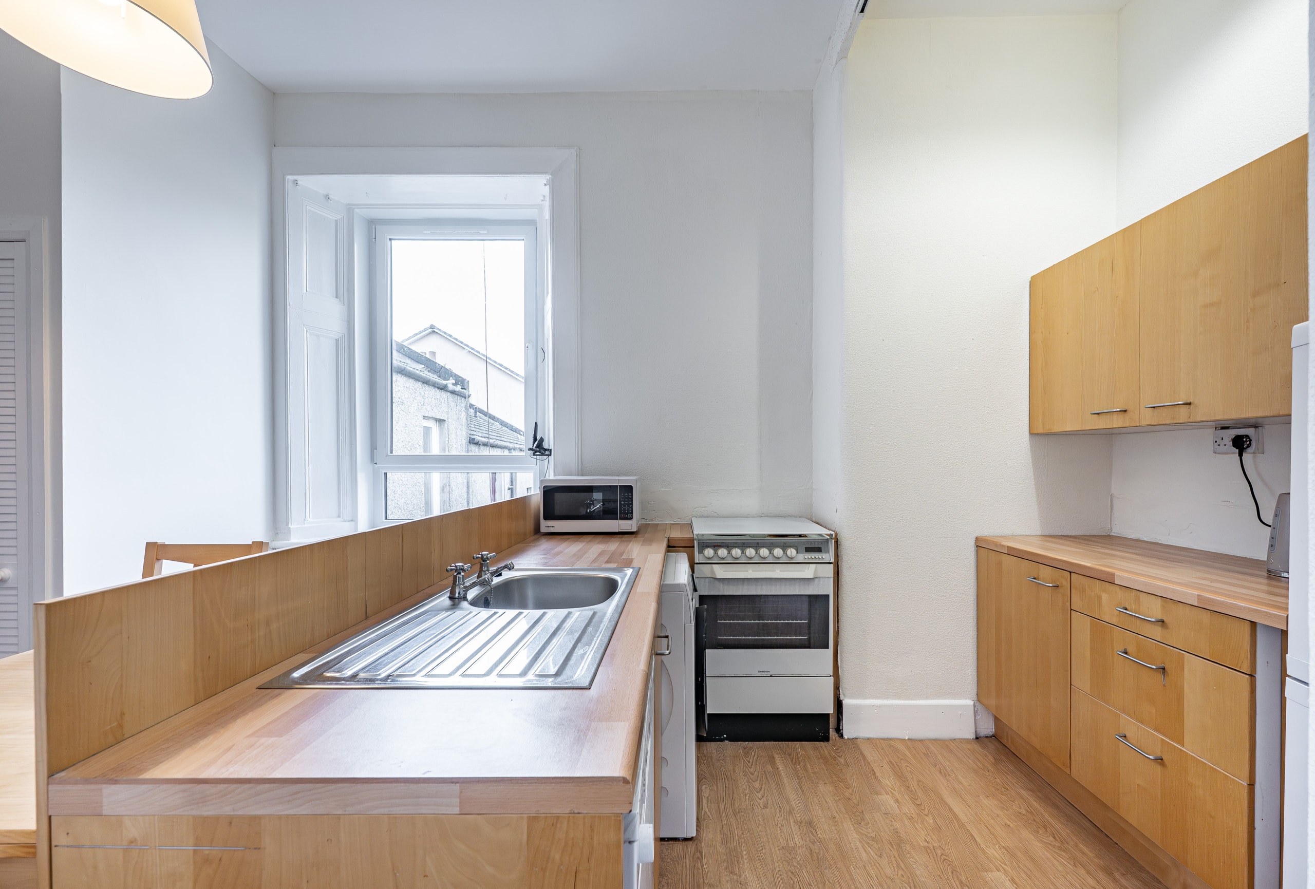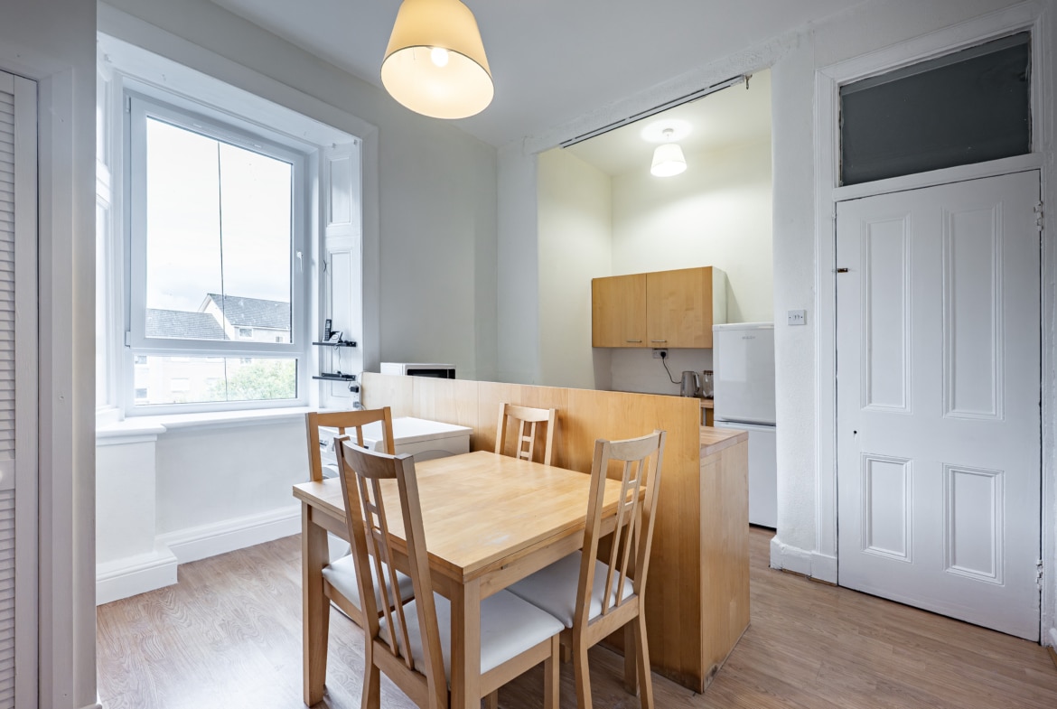 Situated in the heart of Dennistoun, just over a mile from Glasgow City Centre, this immaculately presented and much-improved top-floor tenement flat offers an impressive full one-bedroom layout complemented by a spacious dining kitchen. With principal aspects to the east and west, the property enjoys an abundance of natural light throughout the day and boasts open views to both the front and rear.