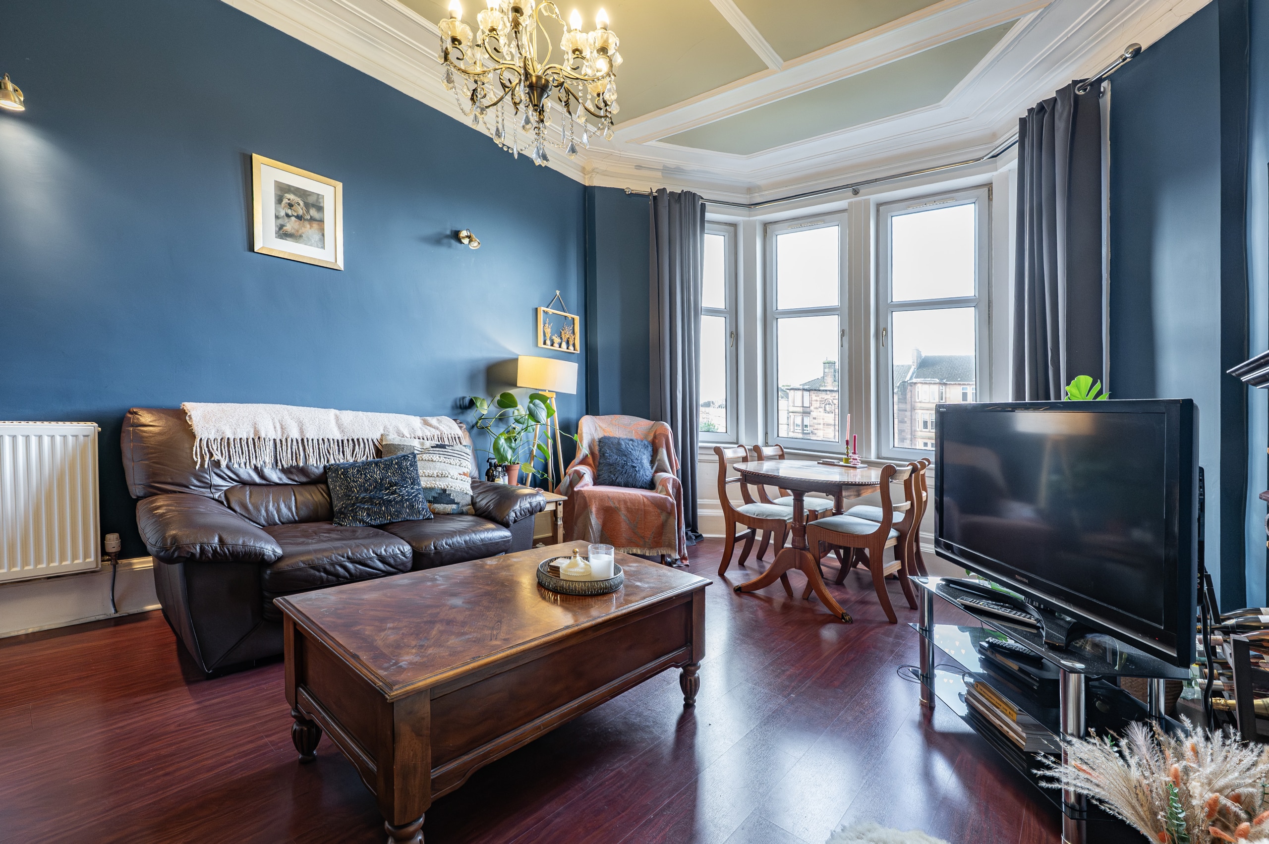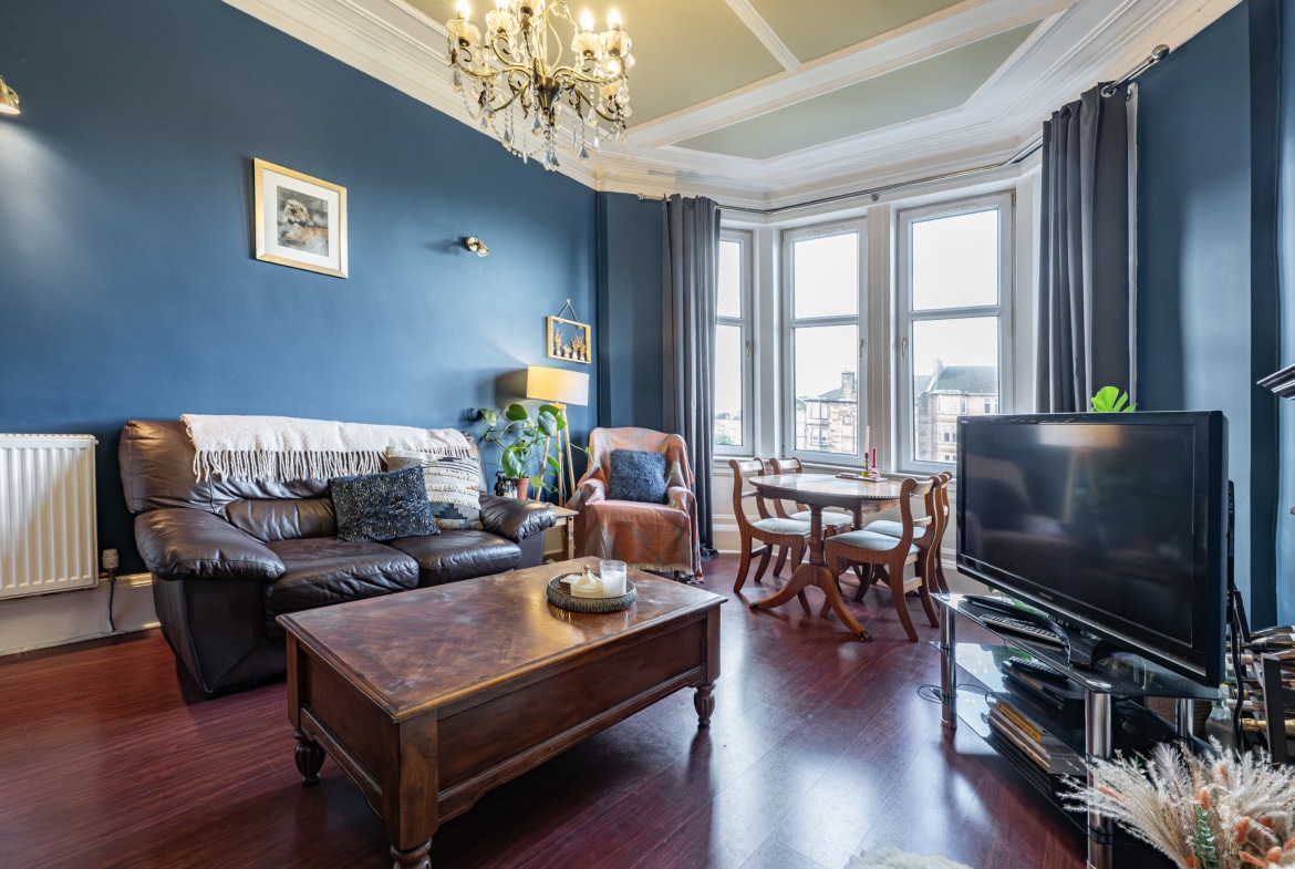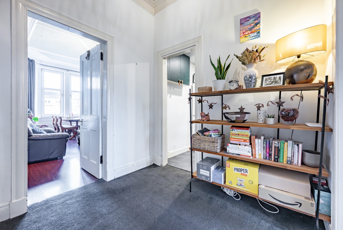 Occupying a premier second-floor position with an east/west orientation, this fantastic period flat is bathed in natural light throughout the day and enjoys open aspects to both the front and rear, with the front overlooking the greens of St Rollox Bowling Club. Set within a well-maintained red sandstone tenement building in the highly regarded Kennyhill Square, the flat sits just a short distance from Alexandra Parade and Train Station, with access to Alexandra Park at the end of the street. Retaining a wealth of period features, the flat is presented in excellent order and will not fail to impress upon inspection.
