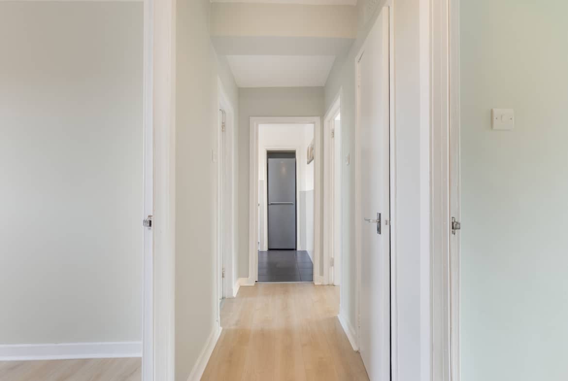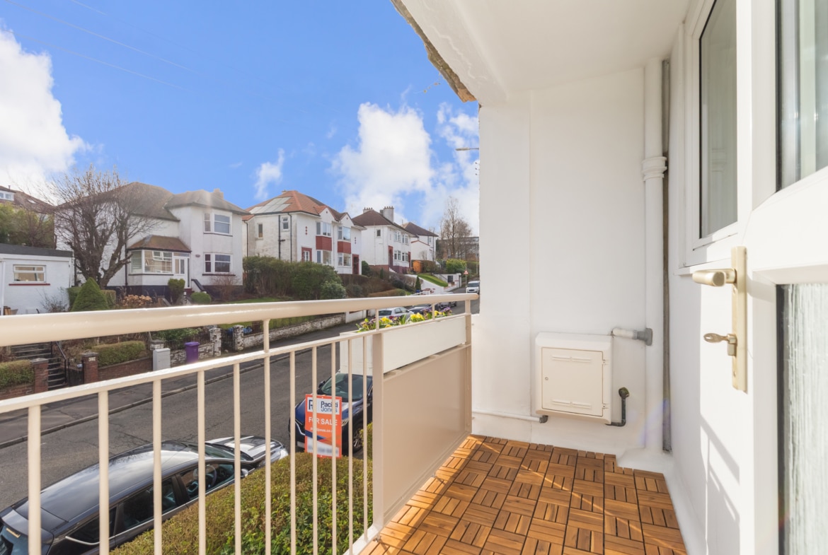 The property is entered via a well-maintained communal close with access to a private cellar located off the communal landing, providing valuable additional storage. Internally, the accommodation is decorated in fresh, neutral tones throughout, creating a calm and contemporary feel that will appeal to a wide range of purchasers. The welcoming reception hallway leads to a generously proportioned lounge, flooded with natural light thanks to its elevated first floor position. A bright balcony accessed directly from the lounge provides an ideal spot for relaxation, with open aspects enhancing the sense of space and light. The kitchen is well laid out and functional, offering ample worktop and storage space. There are two well-sized bedrooms, both comfortably accommodating double beds and free-standing furniture, making the property highly flexible for a variety of living arrangements, including home working if required. The bathroom is well presented and in keeping with the overall neutral aesthetic of the home.