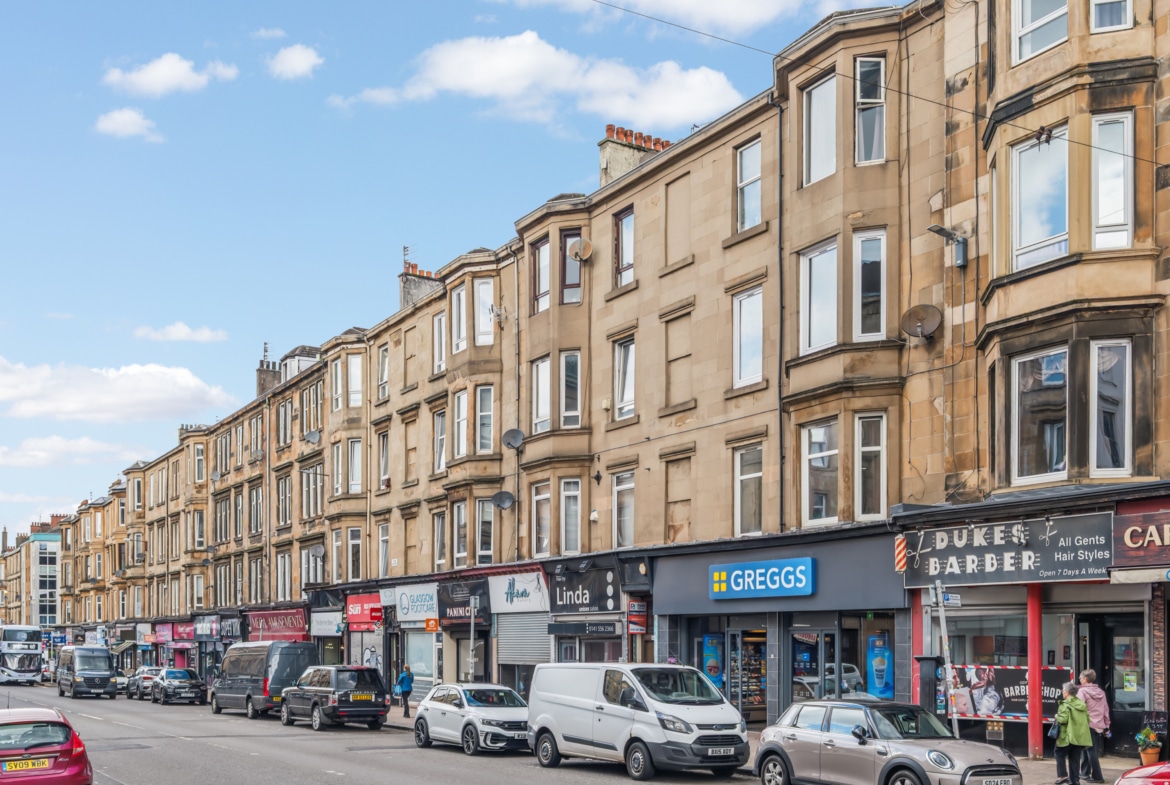 Extremely central and beyond convenient, this exceptional second-floor tenement flat is located just over two miles east of Glasgow City Centre. Substantial in scale, the property features soaring ceiling heights and a wealth of original period features that make an immediate impression.