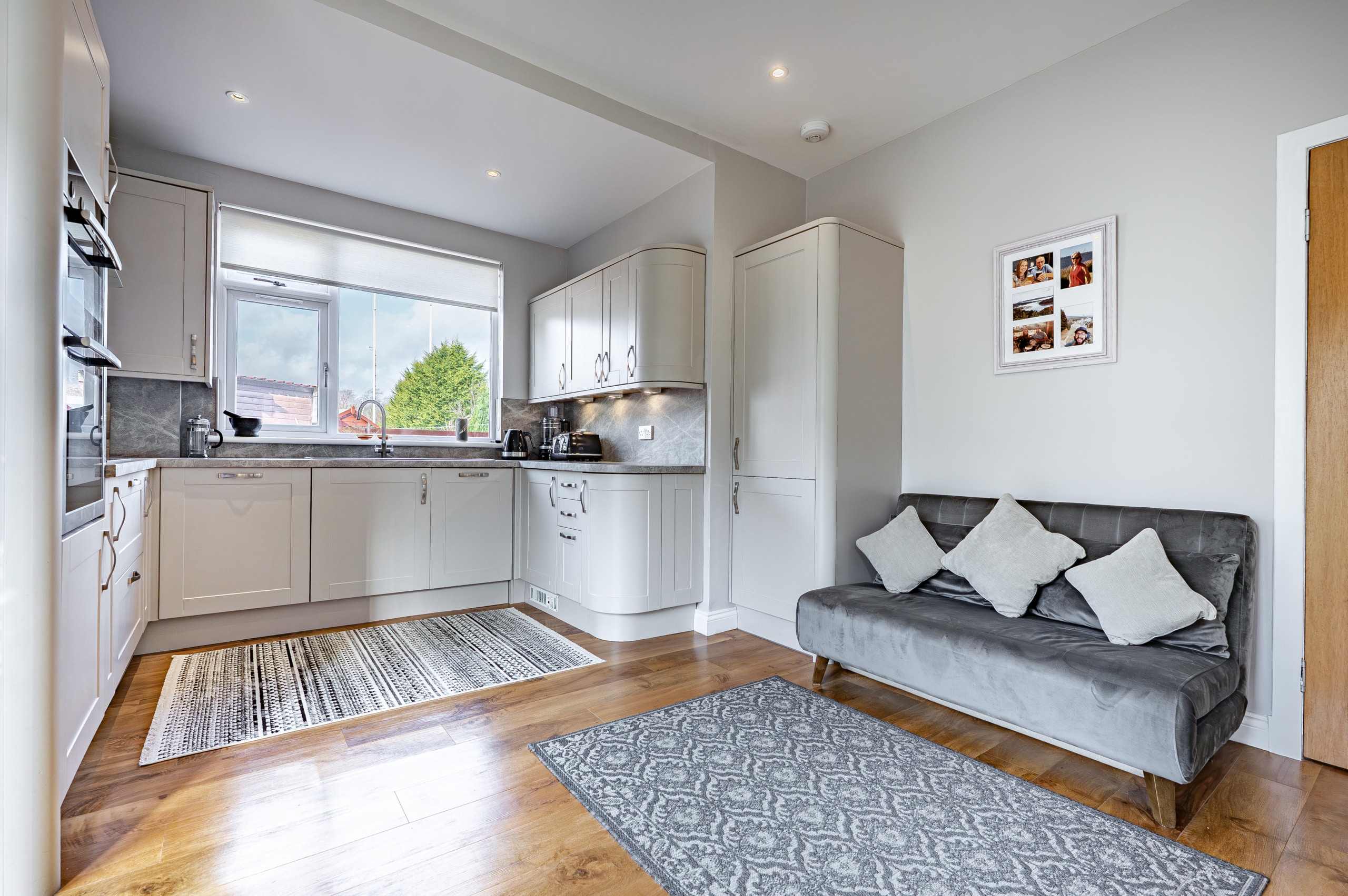 In recent years, the home has been thoughtfully enhanced and cleverly reconfigured to the rear, creating an impressive, light-filled open-plan living space that forms the true hub of the home. This superb area seamlessly incorporates sitting, dining, kitchen and home-working zones, with French doors providing direct access to the landscaped south-facing garden. The professionally fitted kitchen is complete with a full complement of integrated appliances, while a stylishly appointed shower room adds further appeal. Replacement floor coverings throughout, tasteful décor, double glazing (partially renewed), and gas-fired central heating ensure comfort and efficiency all year round. Early internal inspection is highly recommended to fully appreciate the quality and specification on offer.