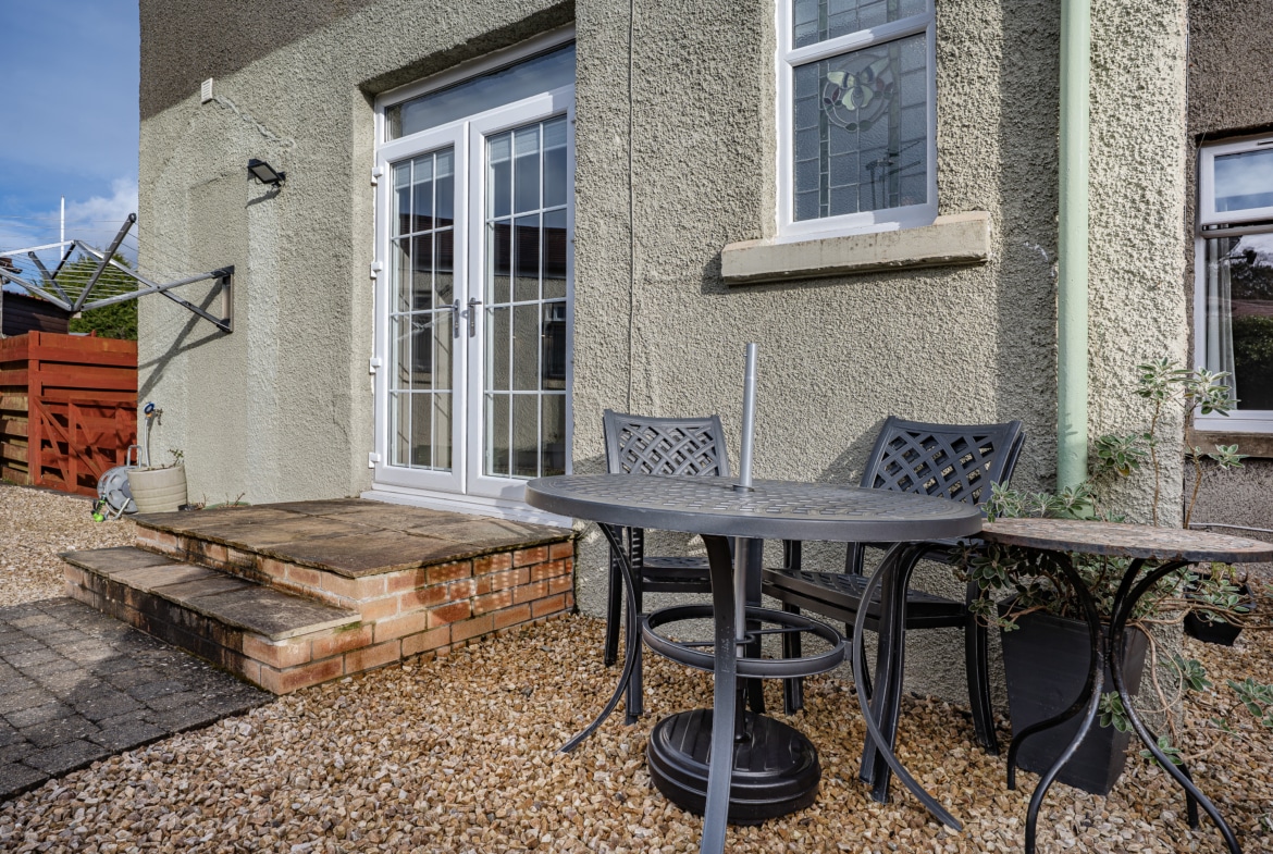 Externally, a bloc-paved driveway provides off-street parking for two vehicles. The sun-filled rear garden is a particular highlight, having been thoughtfully landscaped for ease of maintenance while remaining visually attractive. The level garden incorporates a shaped lawn, stone-chipped sections, and a patio area ideally suited to outdoor entertaining and al fresco dining.