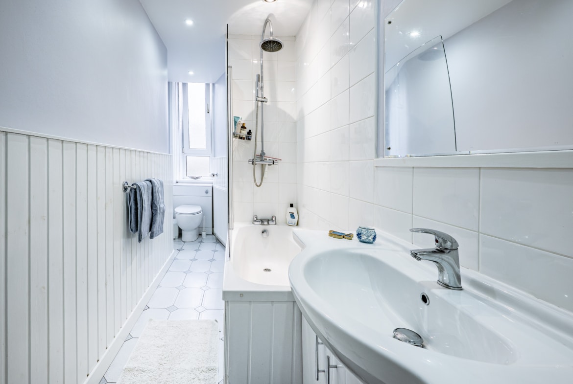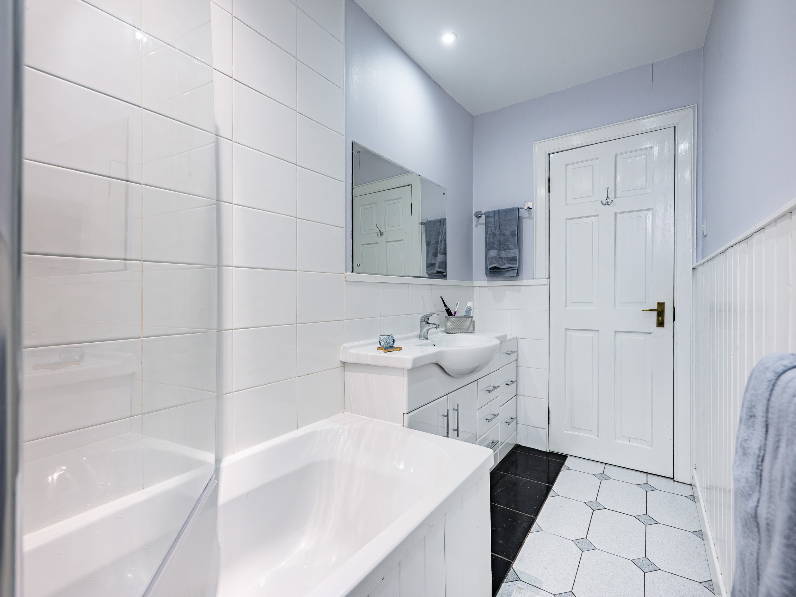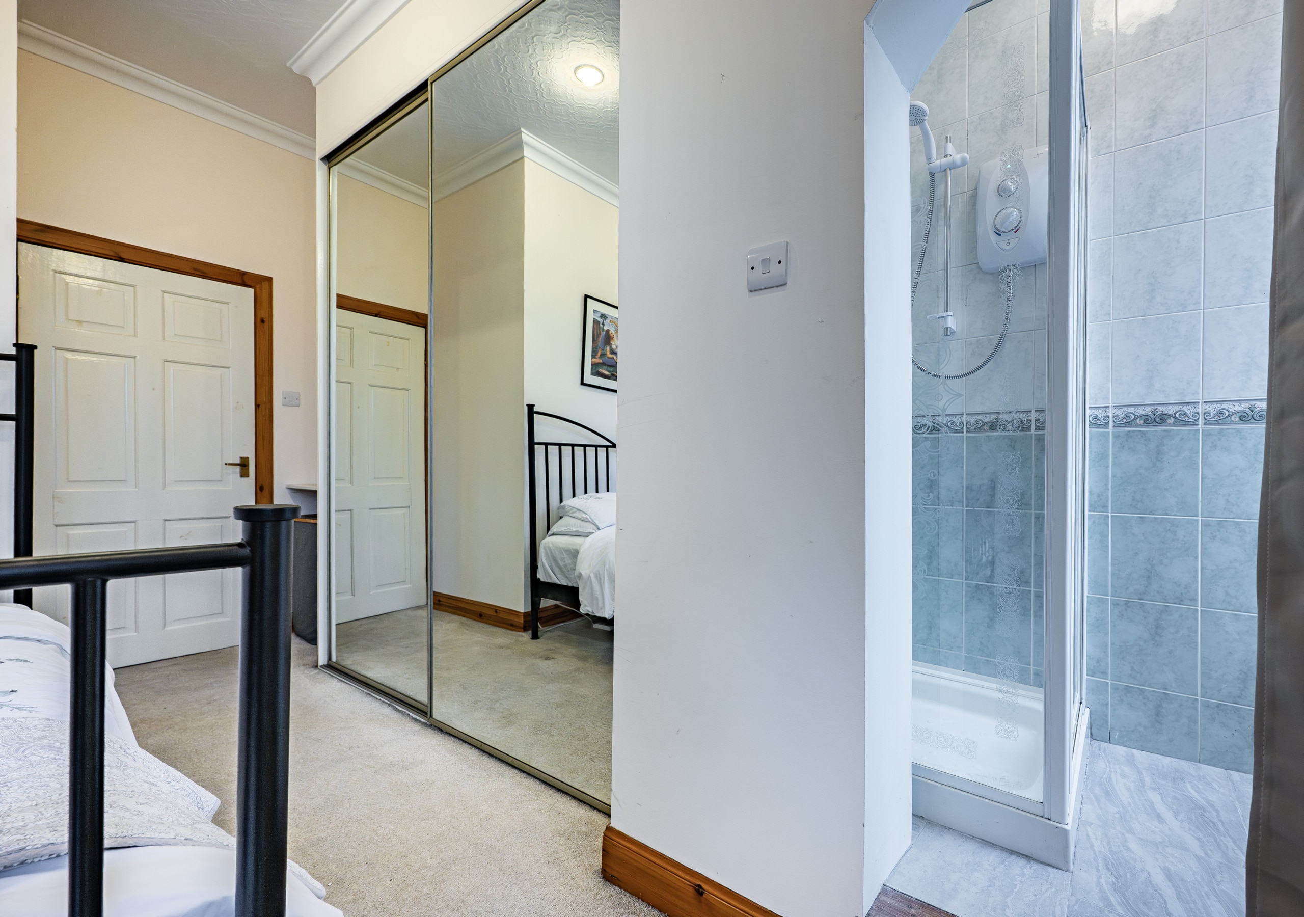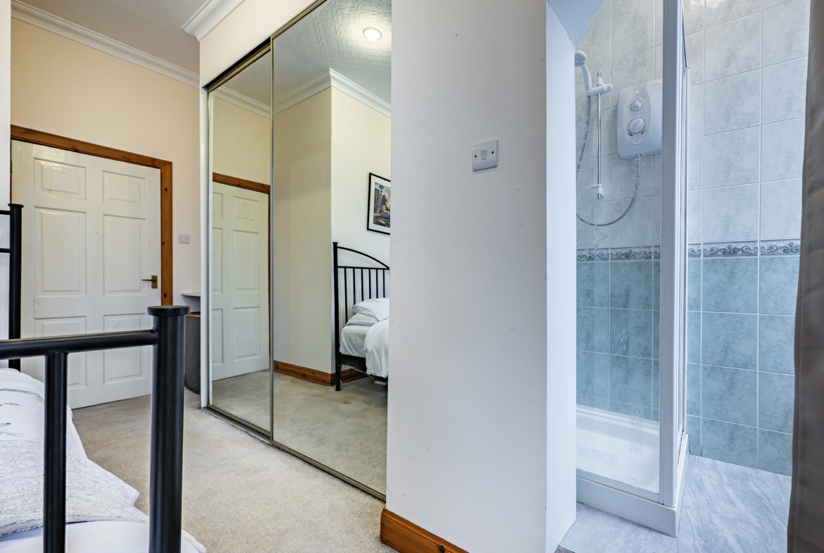 There are two generously sized double bedrooms, with the principal bedroom positioned to the rear and benefiting from fitted wardrobes and a modern en suite shower room. The main galley style bathroom is fitted with a modern three-piece suite.