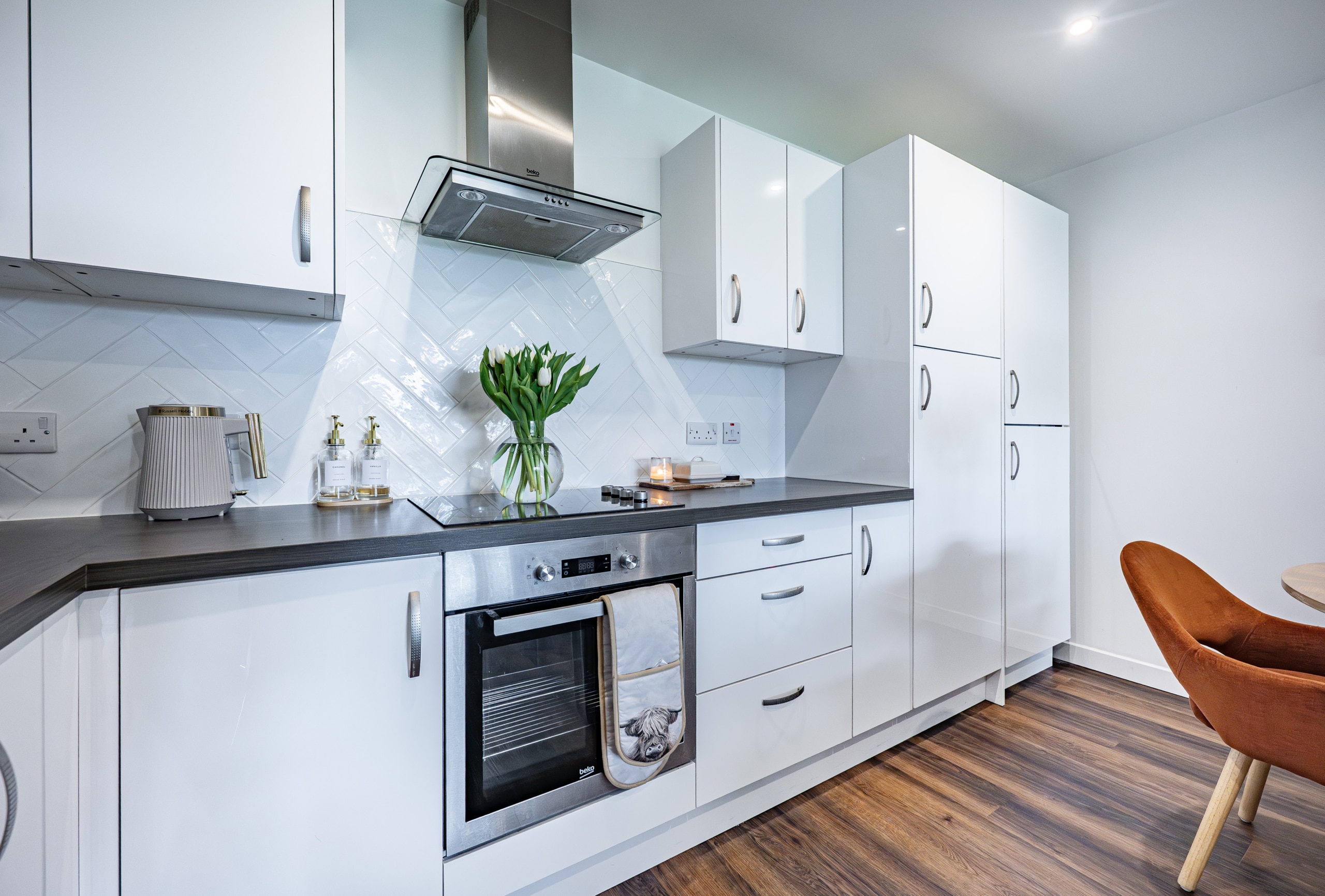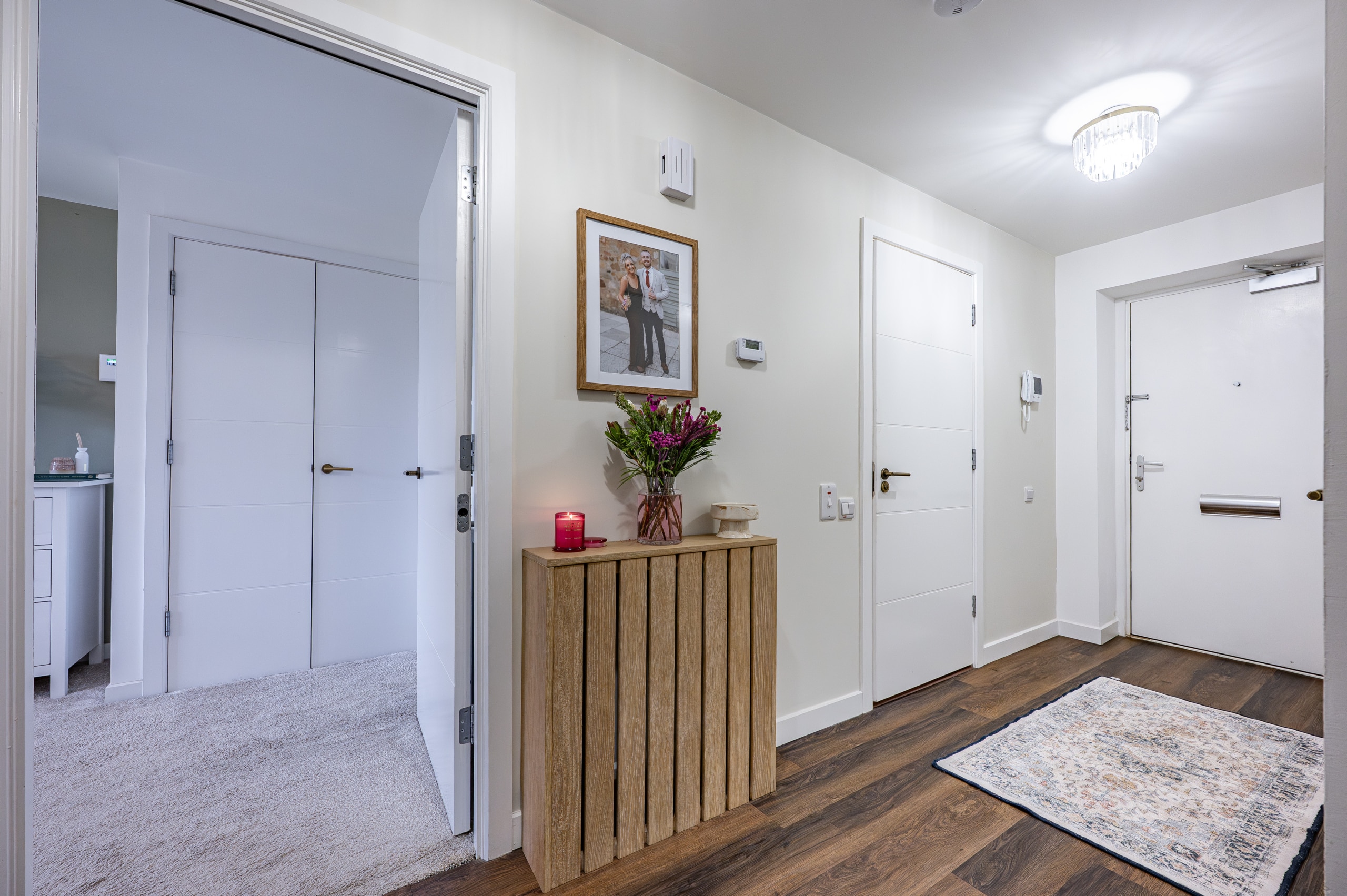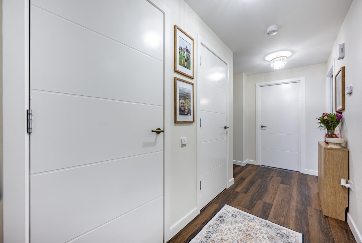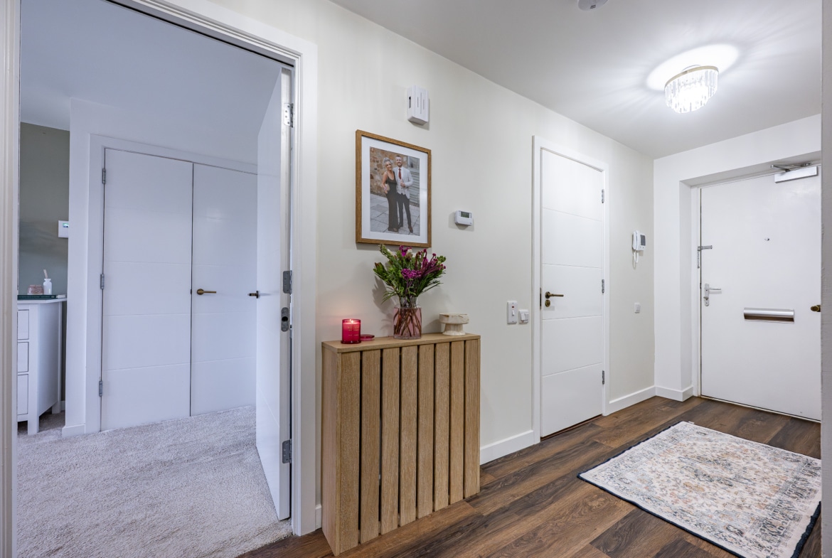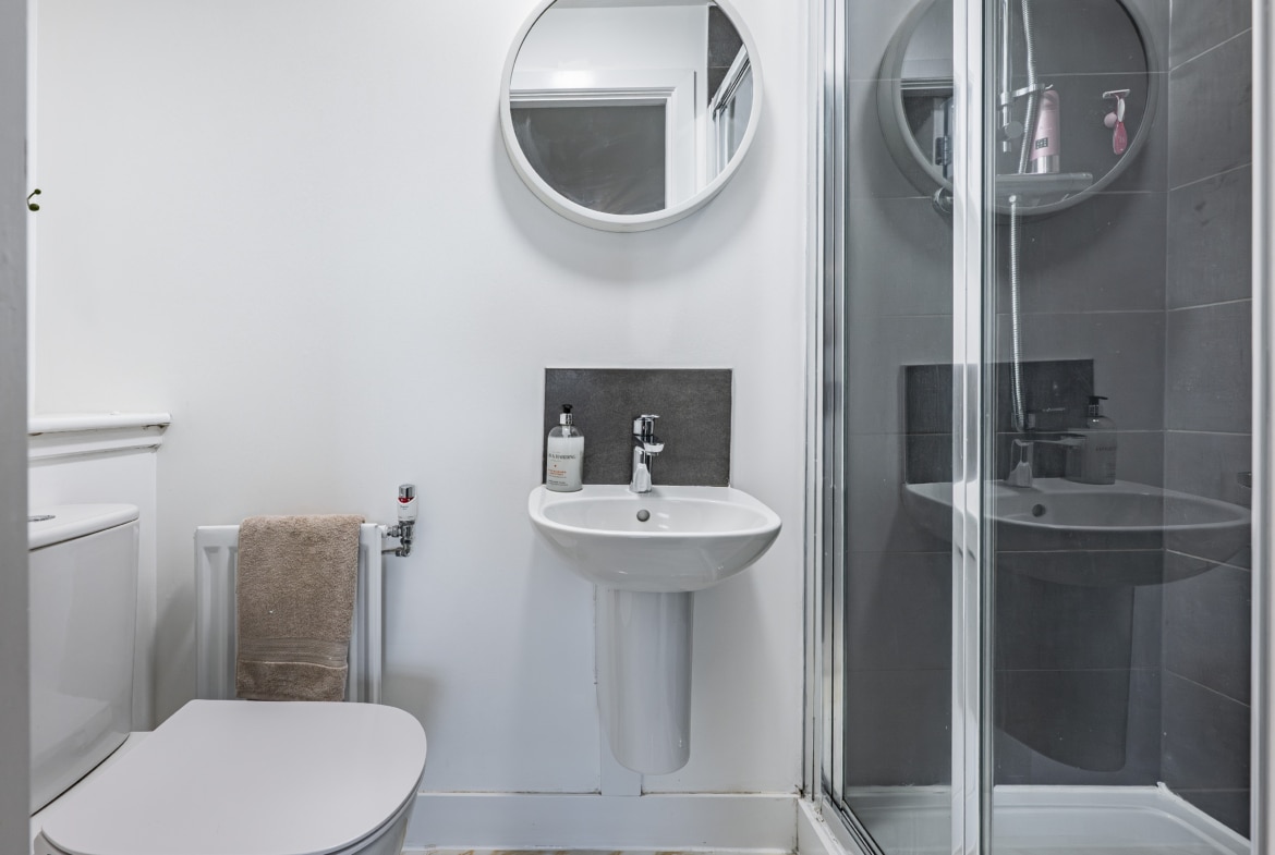 The flat is presented in excellent condition, with early viewing highly recommended to fully appreciate the standard of accommodation on offer. Quality flooring and neutral décor run throughout, creating a bright and stylish living environment. The property benefits from a contemporary fitted kitchen, a well-appointed bathroom and a modern en-suite shower room. Comfort and energy efficiency are enhanced by double glazing and a gas-fired central heating system. Security and convenience are ensured with a secure door entry system and lift and stair access to all floors. Externally, residents can enjoy a beautifully maintained communal garden adjacent to the building, while the property also benefits from a designated parking space.