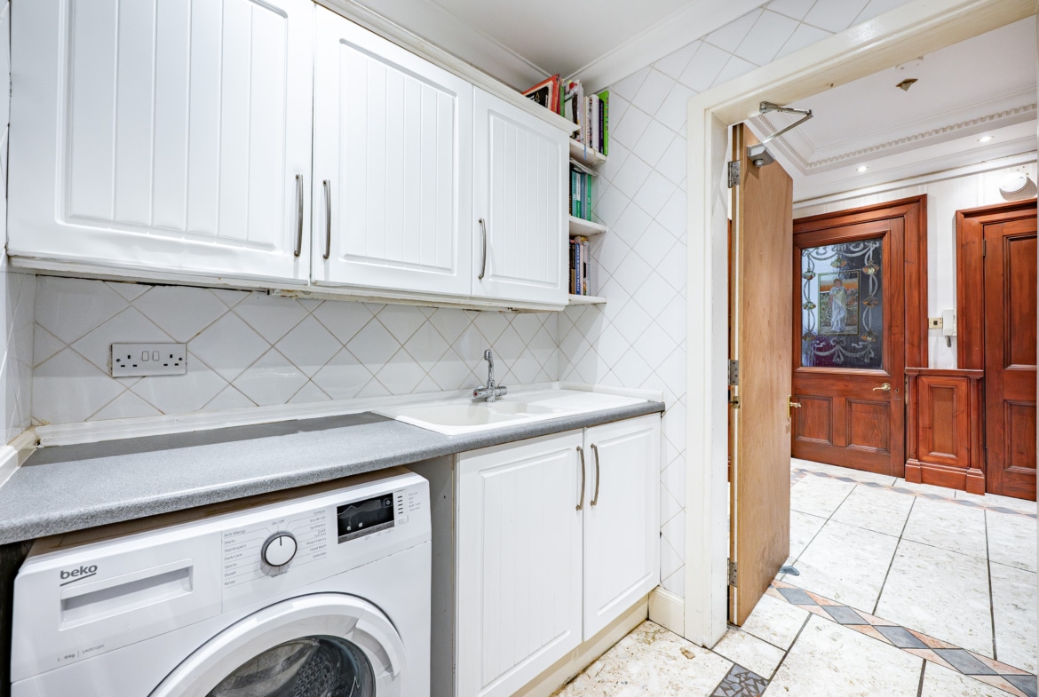 Inside, the flat blends original period character with thoughtful upgrades and is presented in immaculate order. Notable features include bespoke joinery, a stylish marble-effect floor in the hallway, kitchen and bathroom, double glazing, and efficient gas-fired central heating. The building itself benefits from a secure door entry system, a well-kept communal stairwell, and a neatly maintained residents’ garden to the rear.