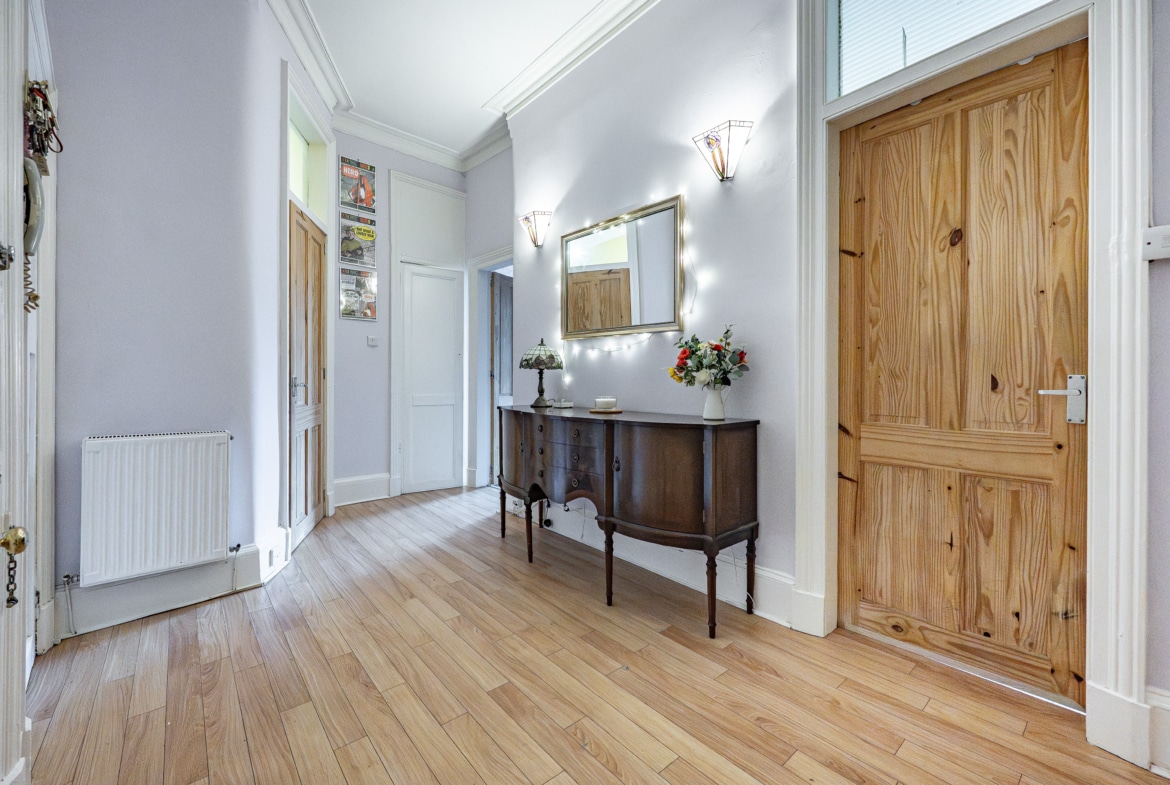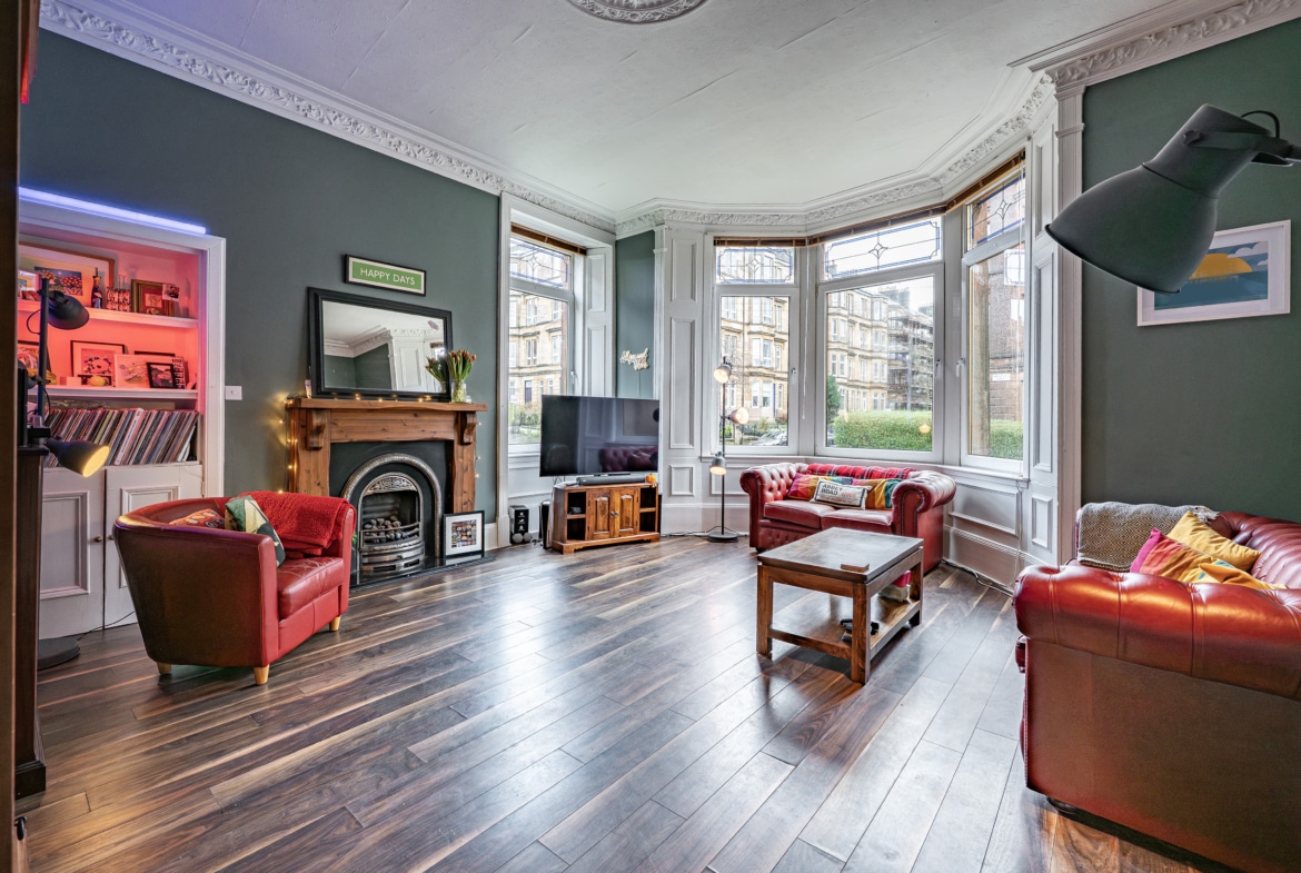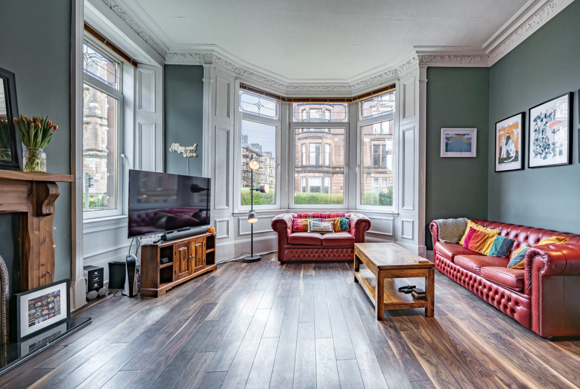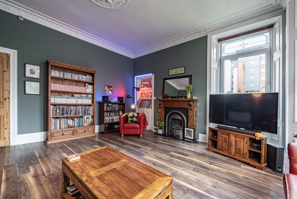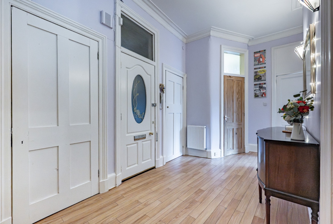 Occupying a prominent position at the corner of Finlay Drive and Whitehill Street, this truly impressive and substantial two-bedroom flat benefits from expansive private gardens to the front and side. The property retains a wealth of fine period features and is presented to the market in pristine, walk-in condition.