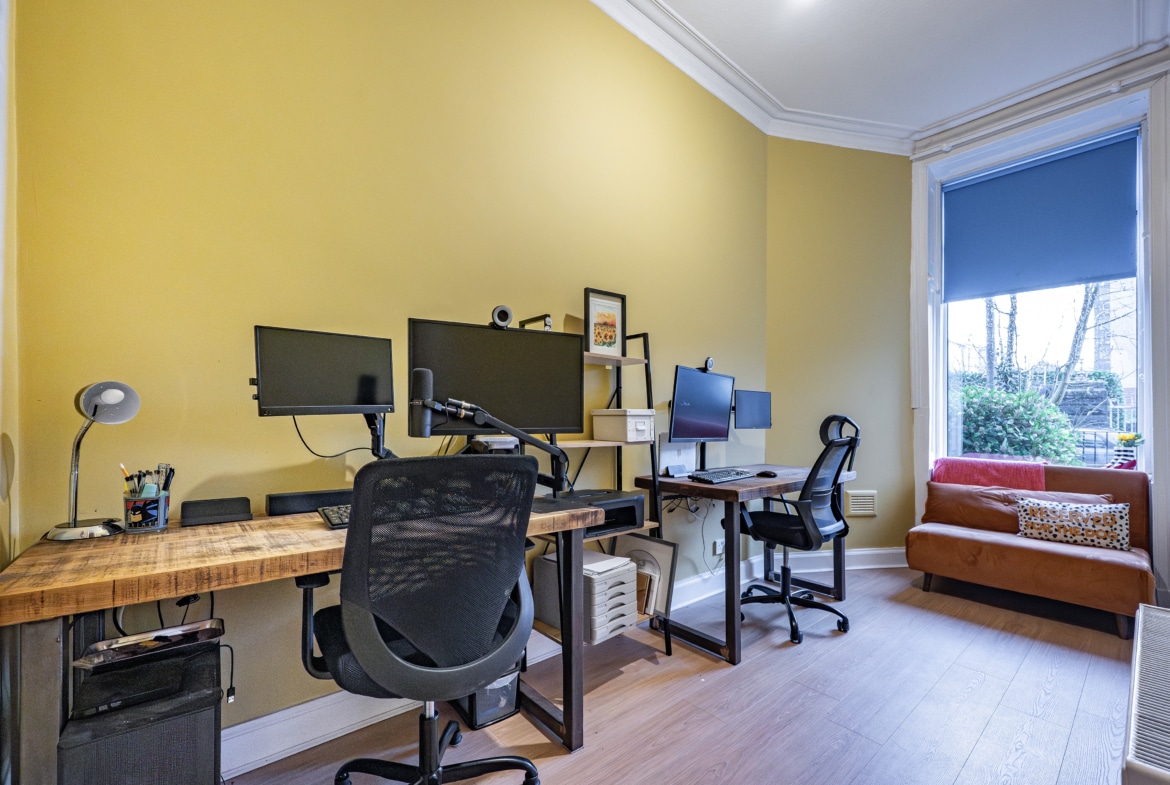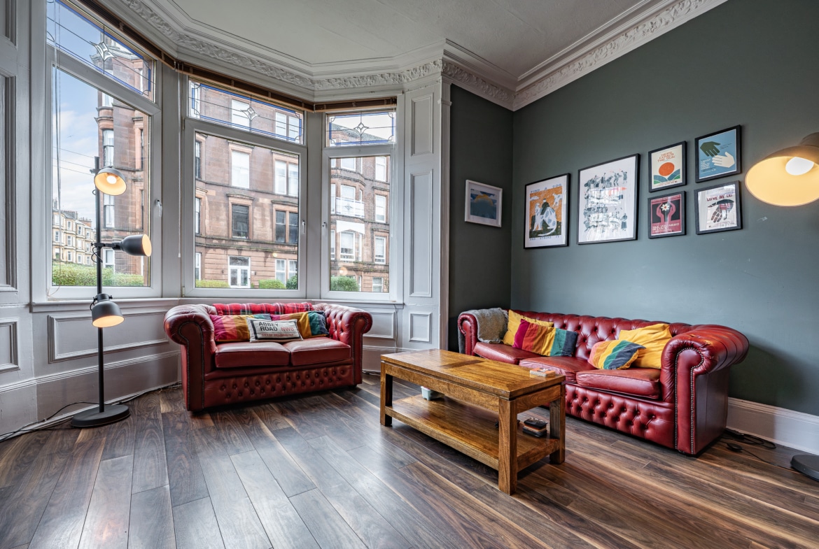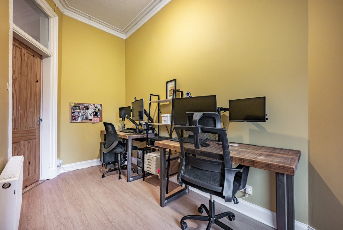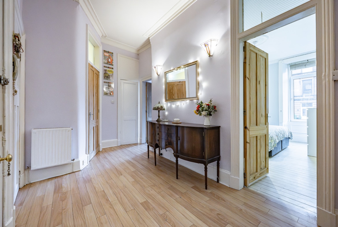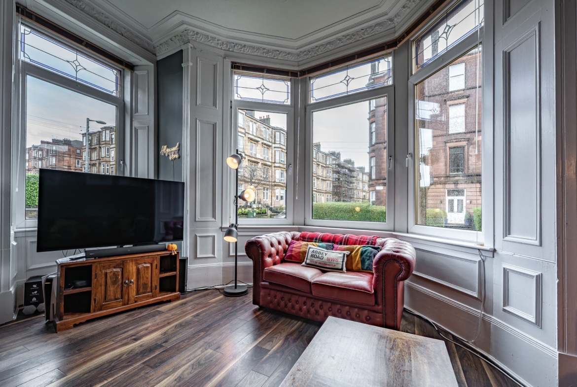 Occupying a prominent position at the corner of Finlay Drive and Whitehill Street, this truly impressive and substantial two-bedroom flat benefits from expansive private gardens to the front and side. The property retains a wealth of fine period features and is presented to the market in pristine, walk-in condition.