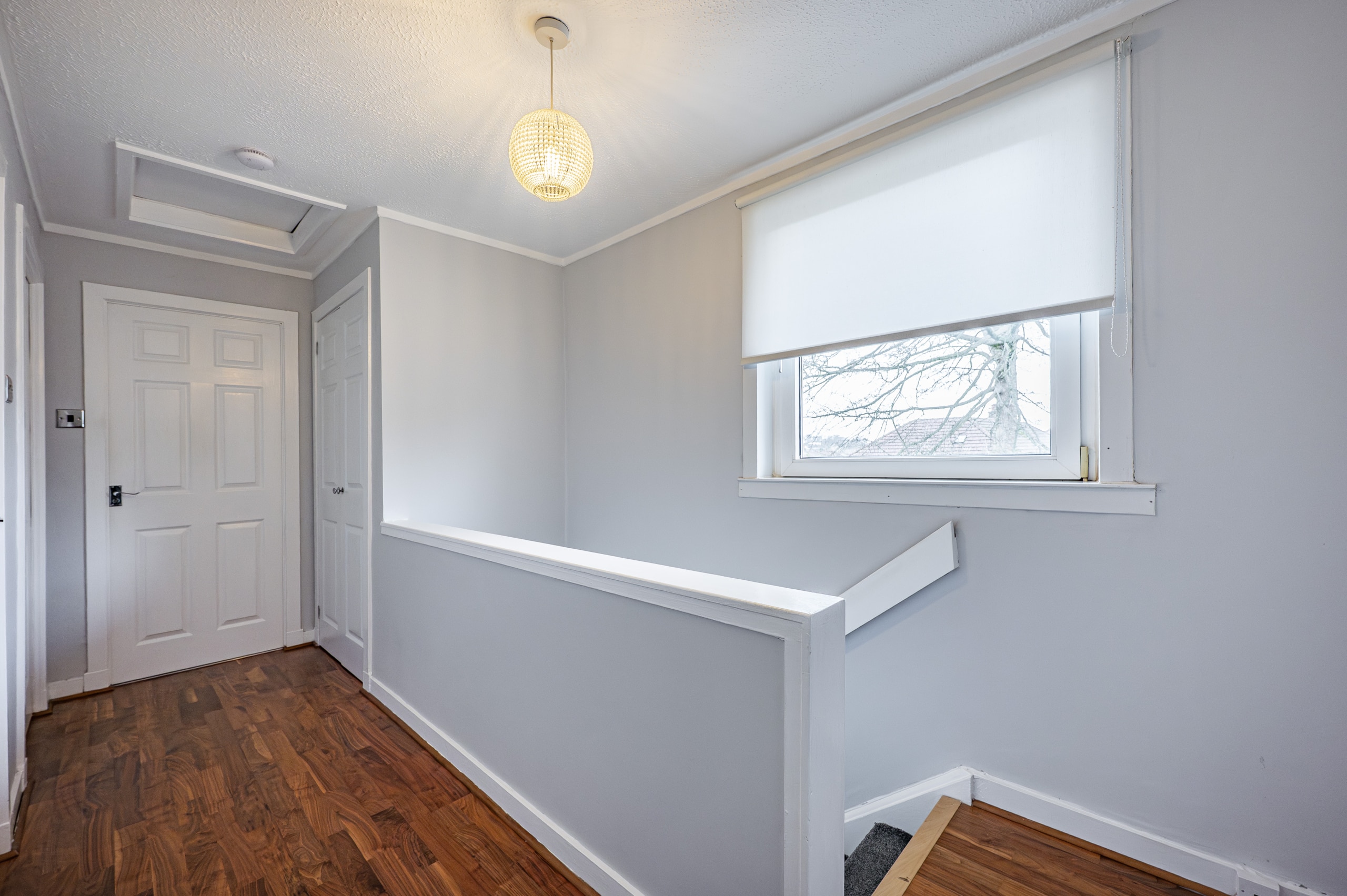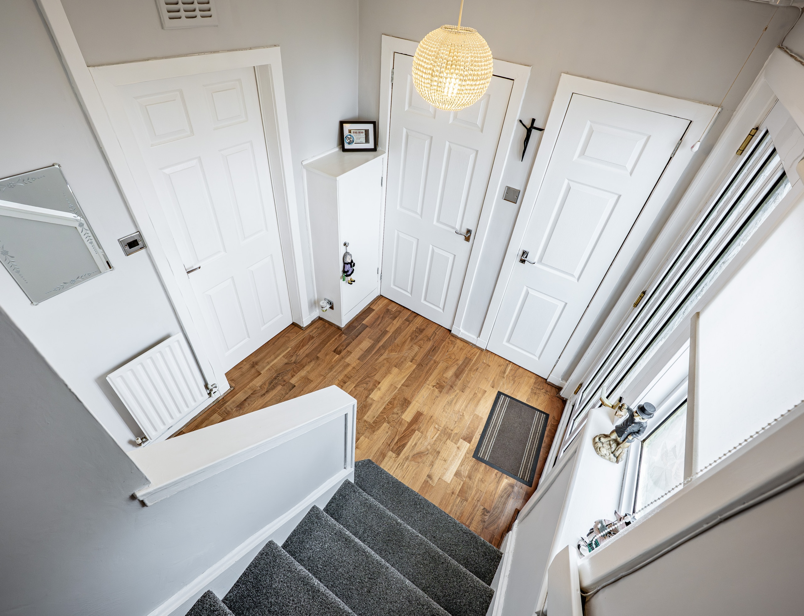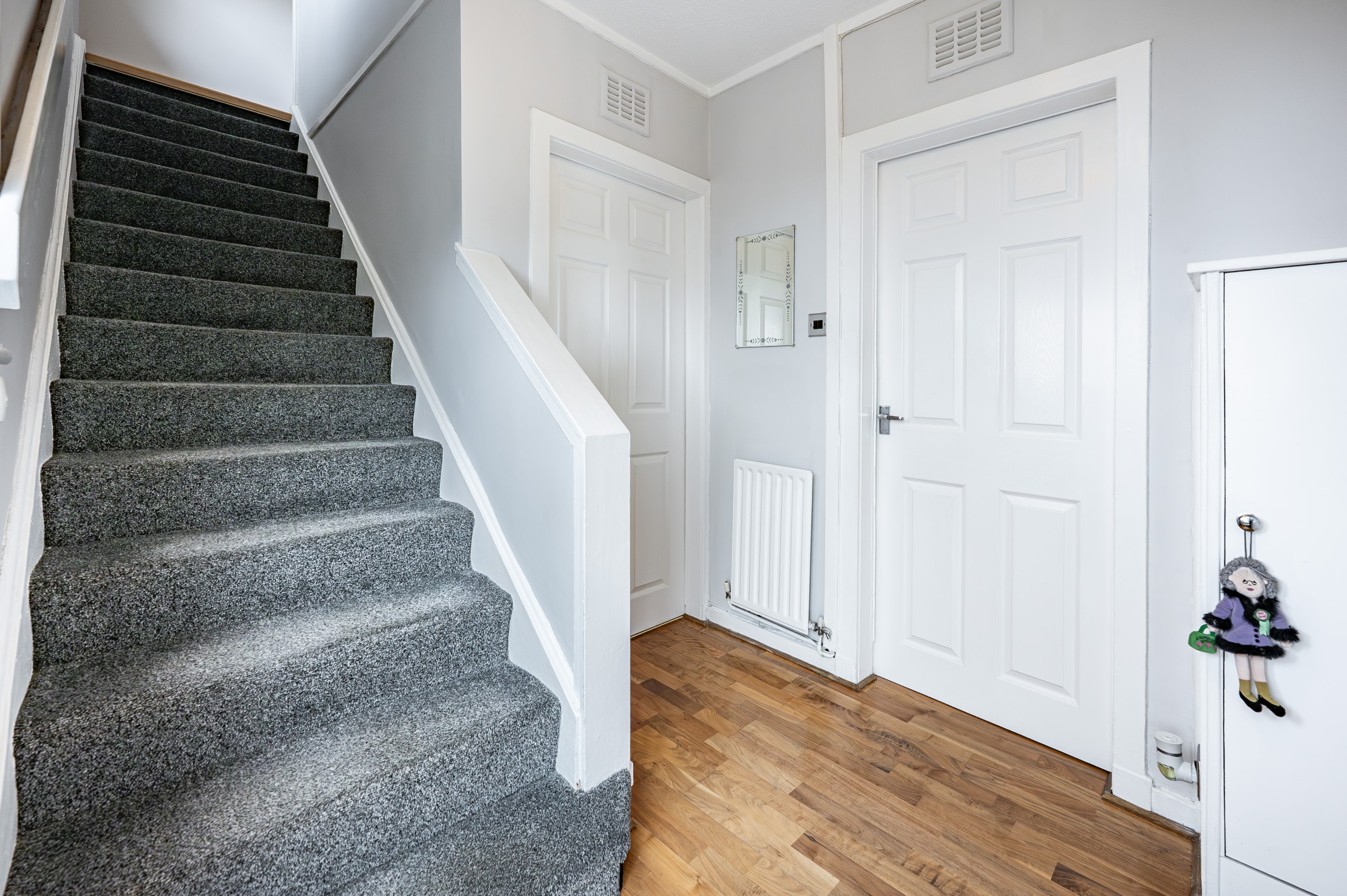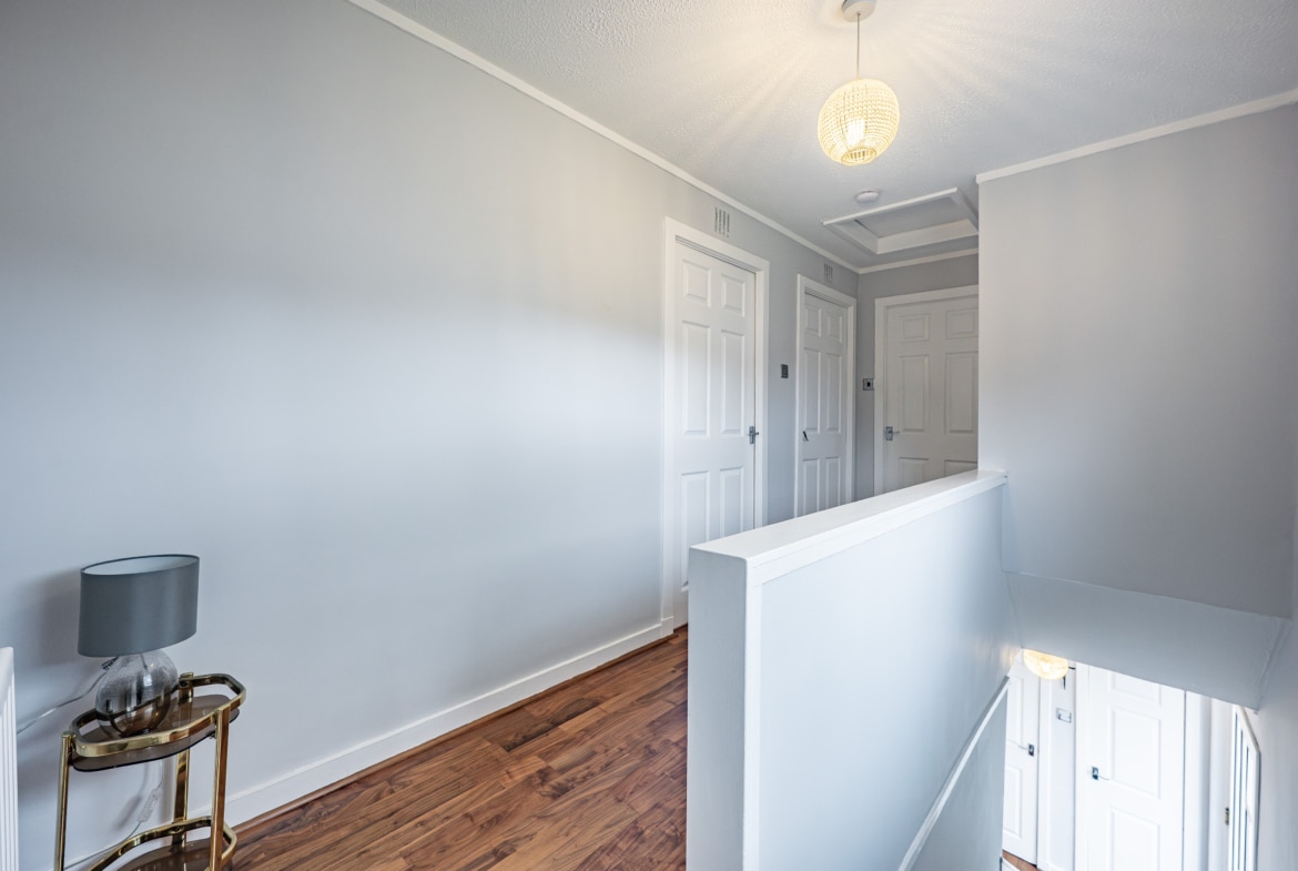 On the upper level, the landing has a fitted linen cupboard and provides access to two generously sized double bedrooms, both of which feature fitted wardrobes, and a well-appointed three-piece bathroom completes the accommodation.