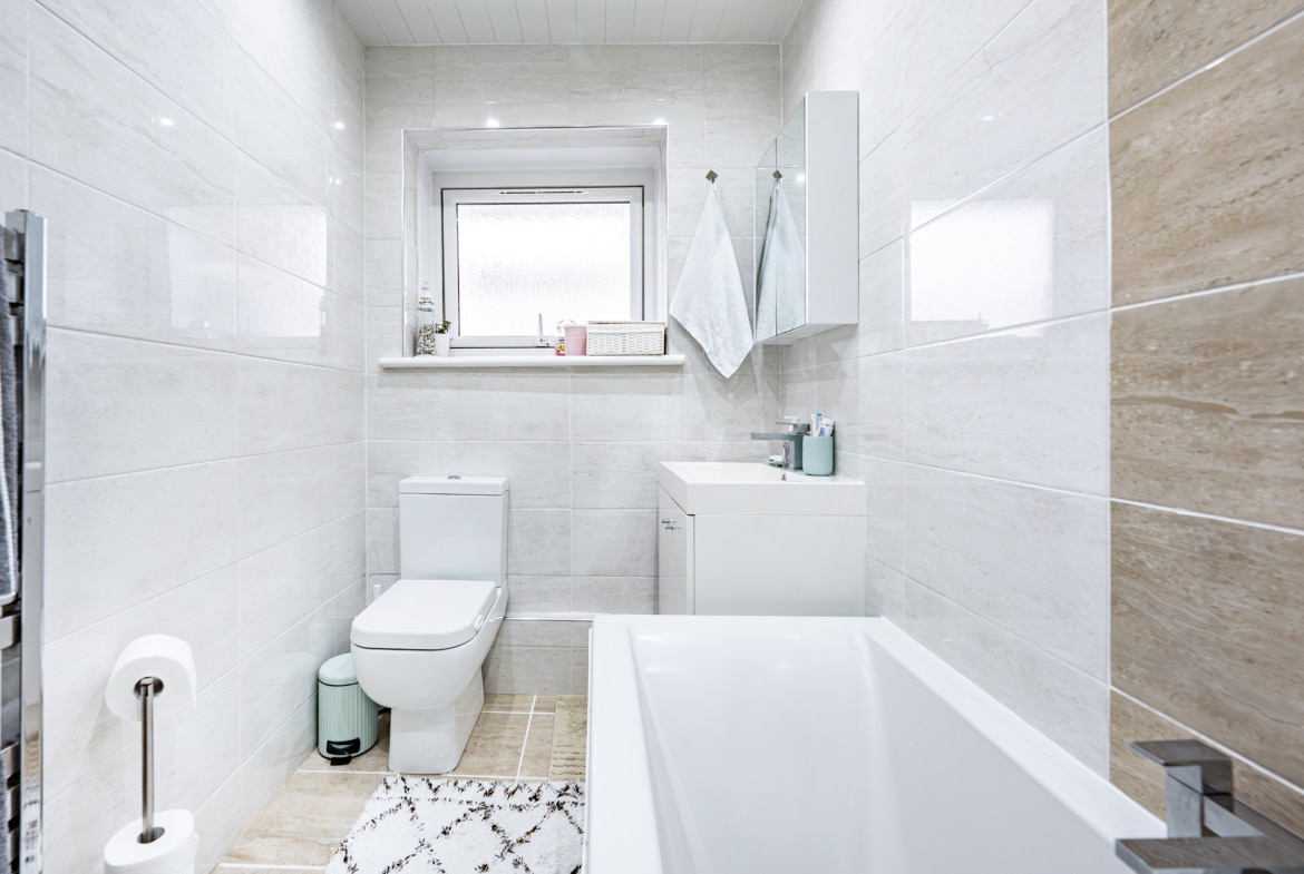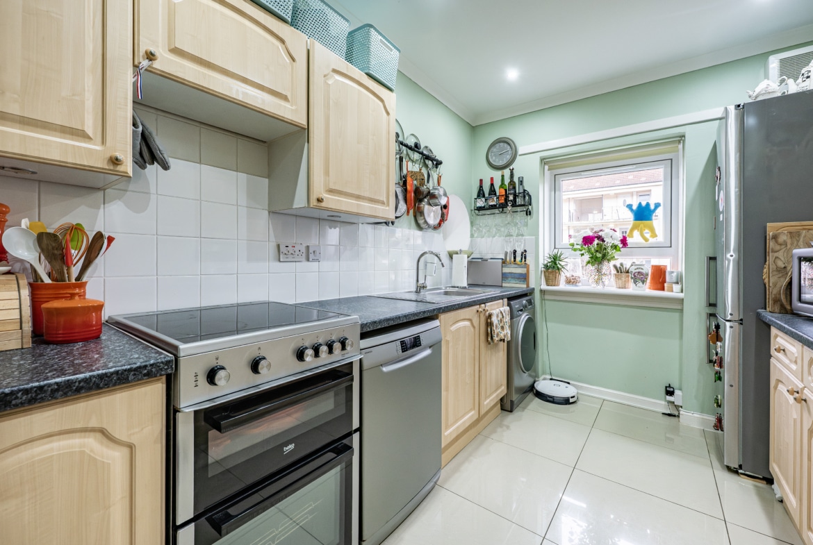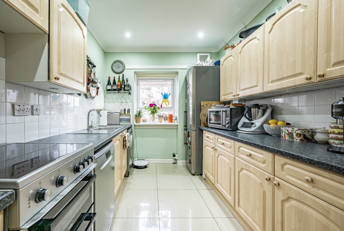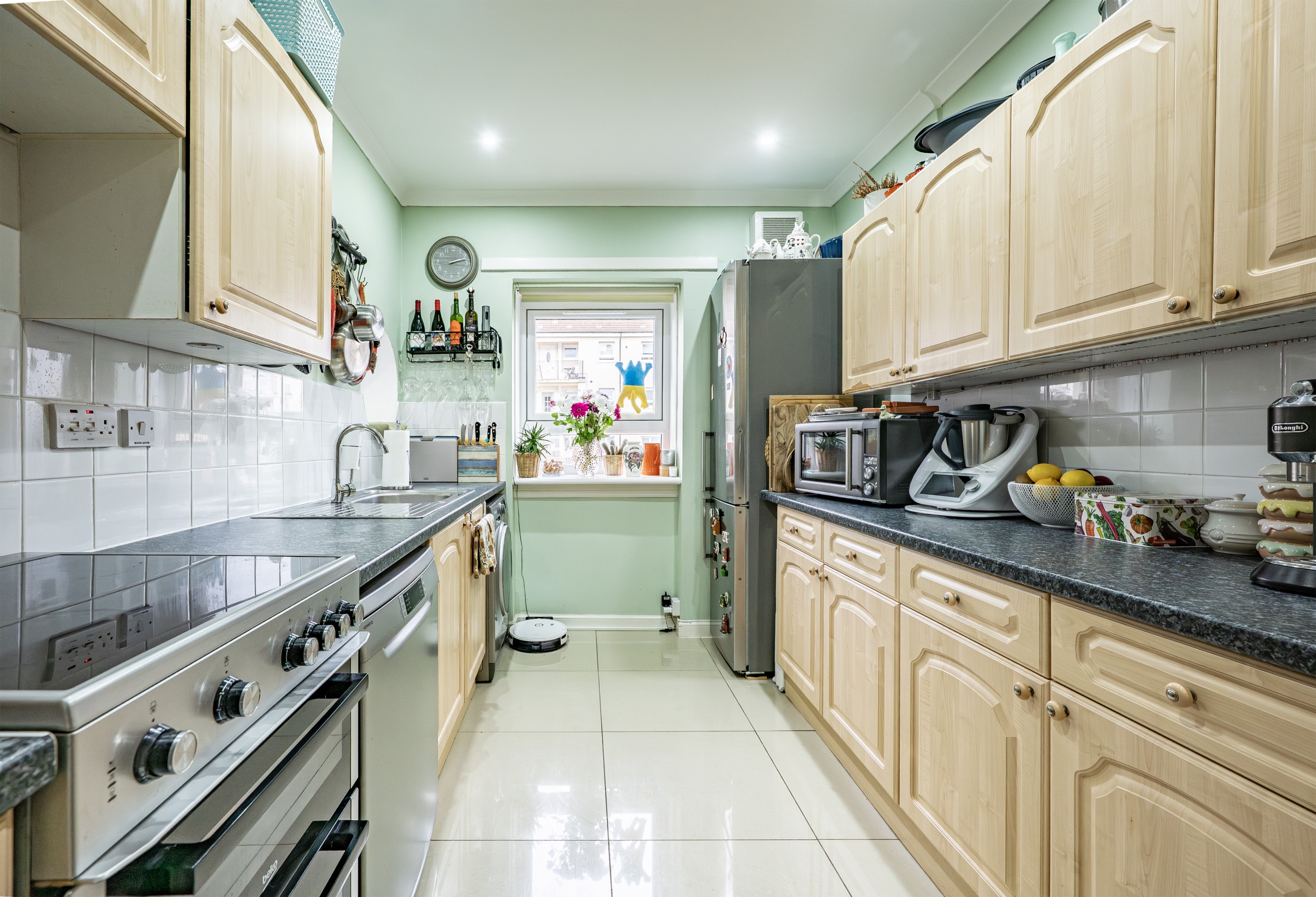 The adjacent kitchen has been fitted with a range of base and wall-mounted units and offers ample space for freestanding appliances. To the rear of the property are three well-proportioned bedrooms, all benefiting from fitted wardrobes or built-in storage. The accommodation is completed by a beautifully appointed bathroom.