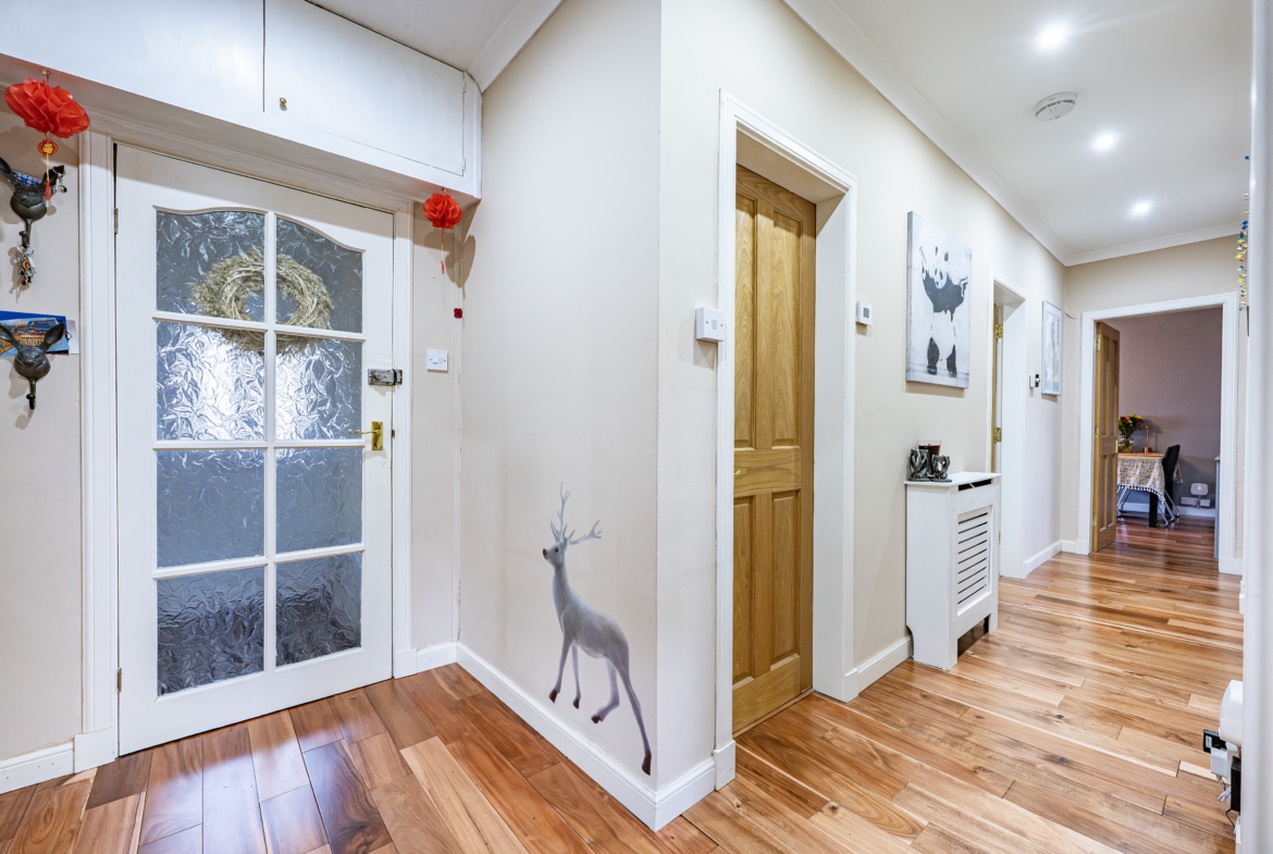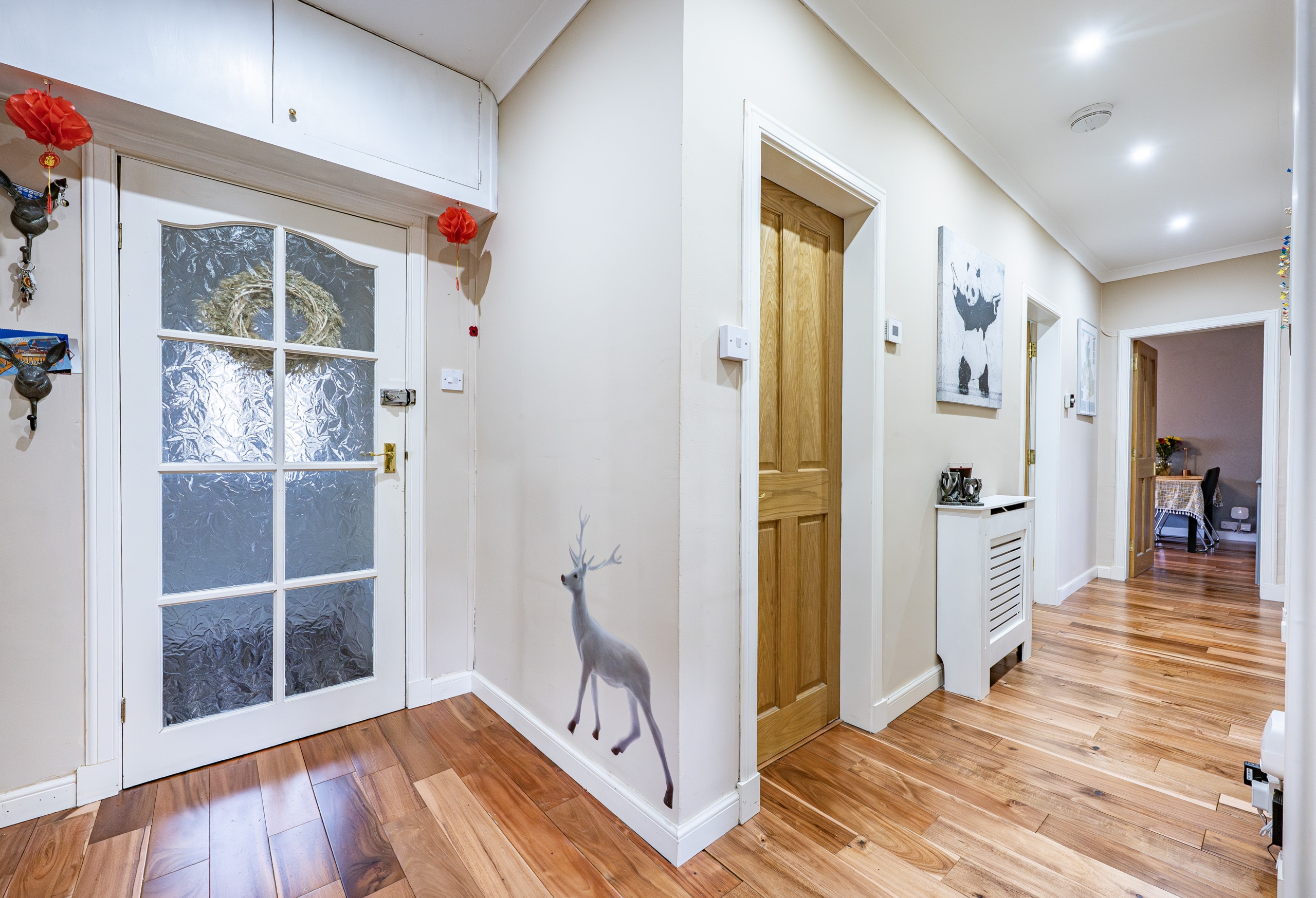 The accommodation in full comprises a private entrance vestibule with a useful storage cupboard, leading into a spacious and welcoming L-shaped reception hallway providing excellent in-built storage and access to all principal apartments. To the front of the property is a lounge/dining room, featuring a modern fireplace with inset electric fire forming an attractive focal point.